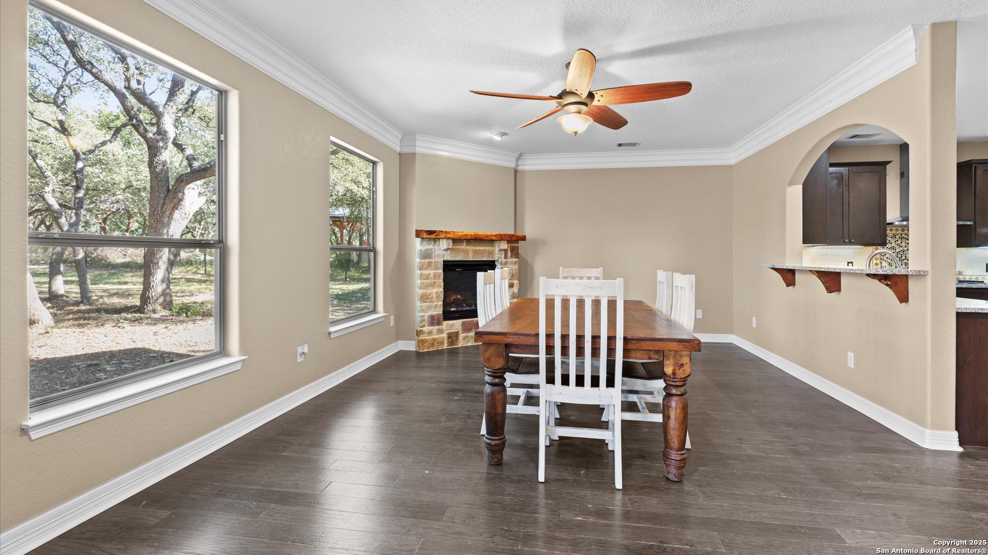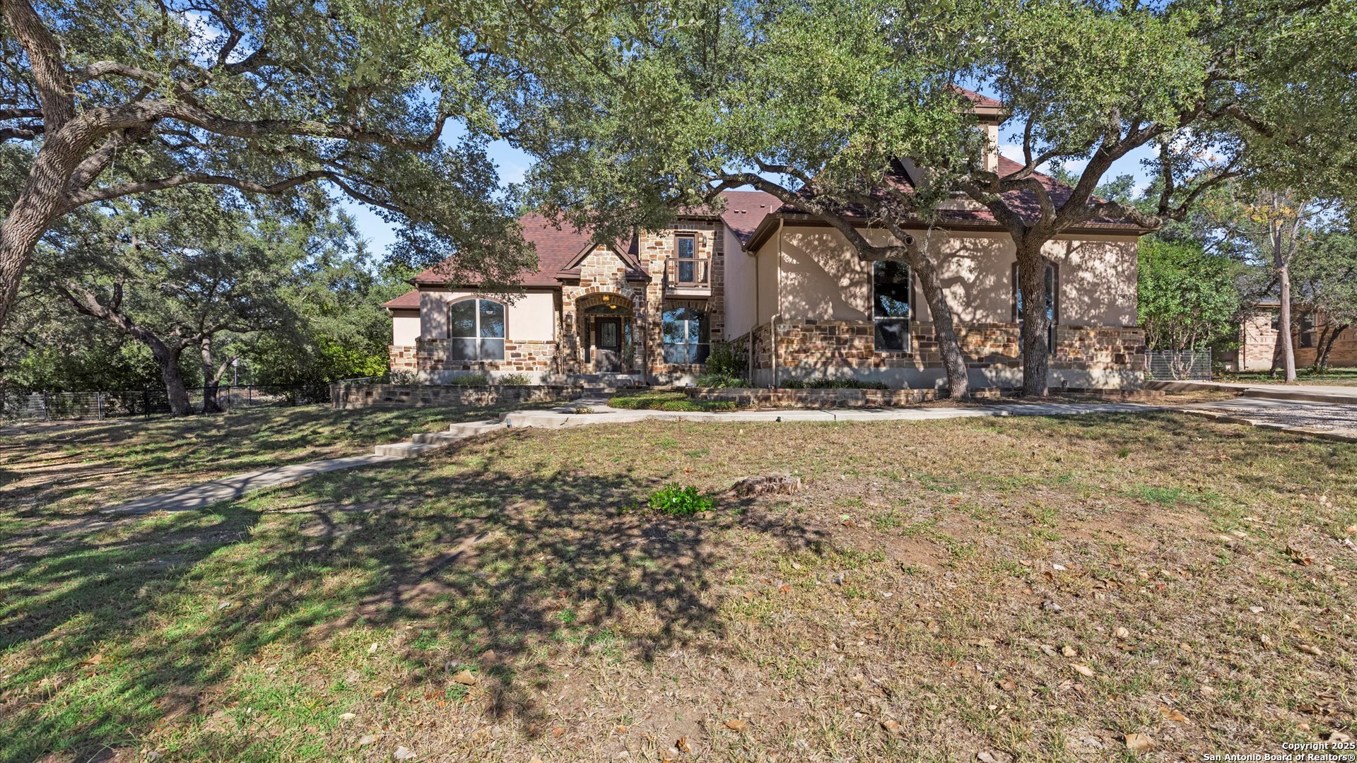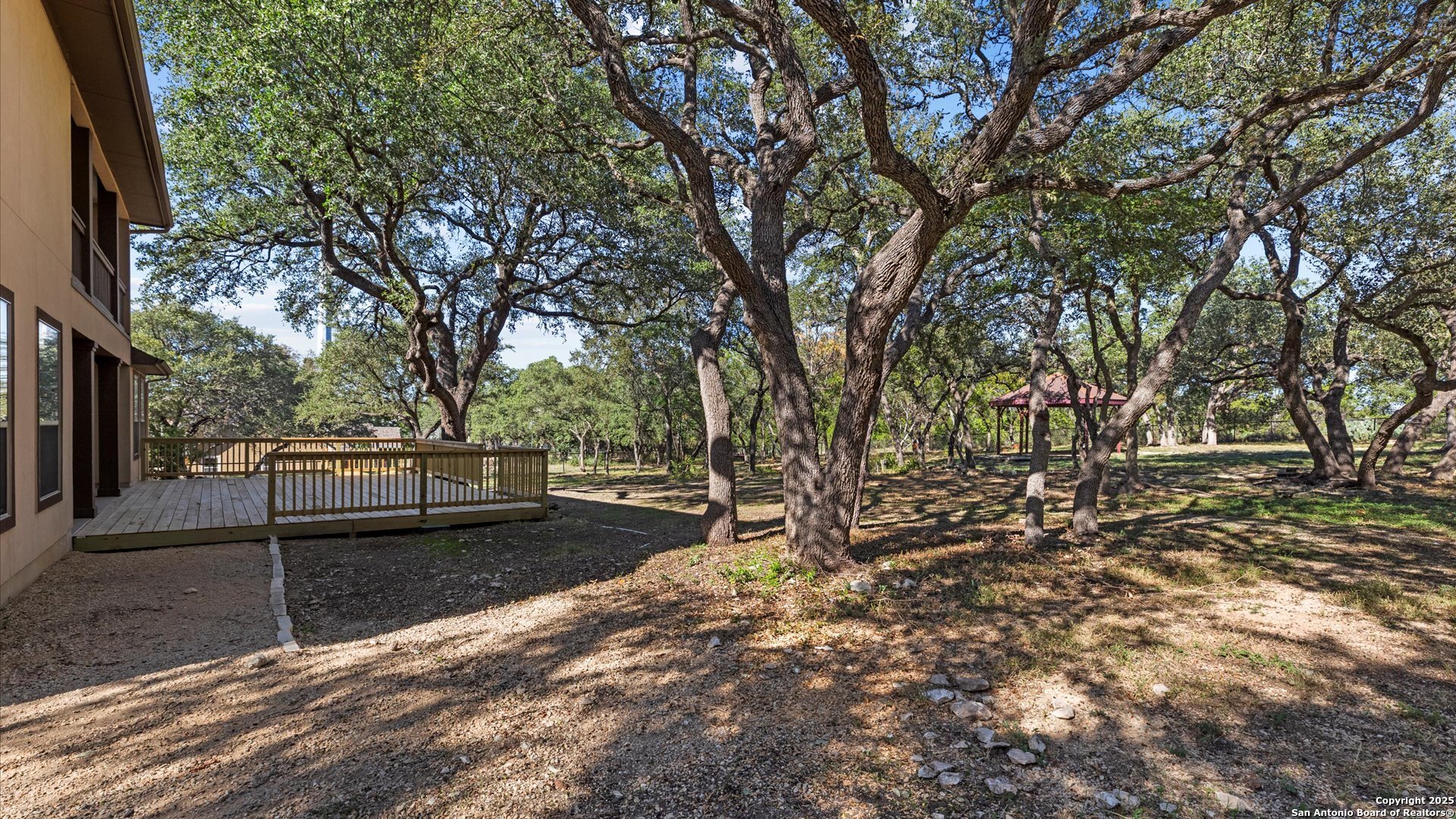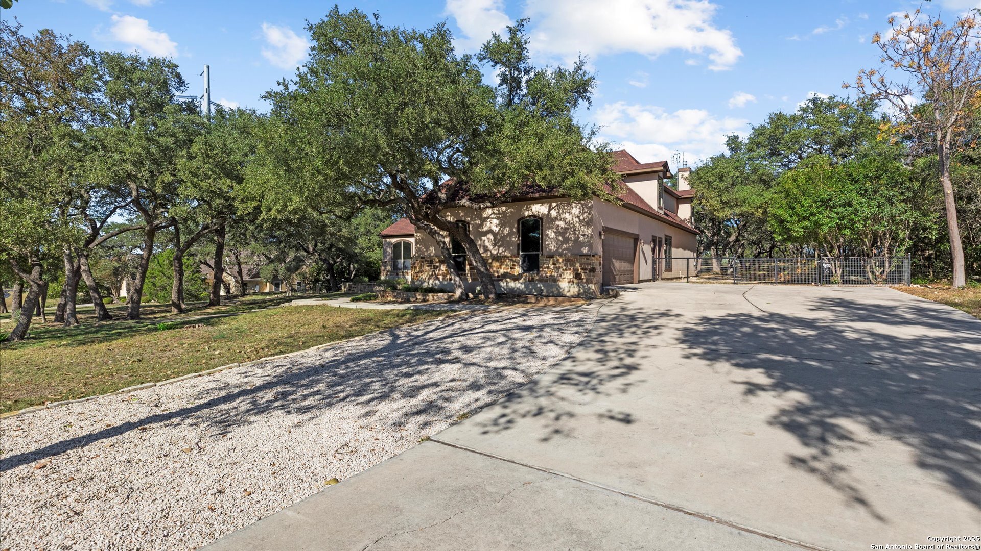 Discover this stunning 5 bedroom, 4 bath home nestled among mature trees in a serene gated neighborhood. Set on a one acre+, this property offers space, privacy and timeless beauty. Step inside to find warm wood floors throughout-no carpet! The inviting living room opens up high and features a large picture window that fills the space with natural light and view to the backyard. Two rock fireplaces compliment the living room as well as the large eat-in dining room just off the kitchen. Master suite is conveniently located downstairs providing outside access and full spa-like bath complete with walk-in shower & jetted tub. Versatile flex room downstairs is perfect for office, exercise space or craft room. Chef's kitchen with gas cooking, double oven, custom cabinets, island prep space and walk-in pantry is perfect for preparing meals & entertaining. 3 spacious bedrooms upstairs ~ 1 with full bath and other 2 feature private vanity space. The gameroom is sure to impress too! This home combines classic character with modern comfort in one of the area's most desirable gated communities. 3-way Zoned Geo-thermal HVAC*partial sprinkler system*fresh interior paint*New 31x20 back deck*side entry garage with pull thru gate at driveway.