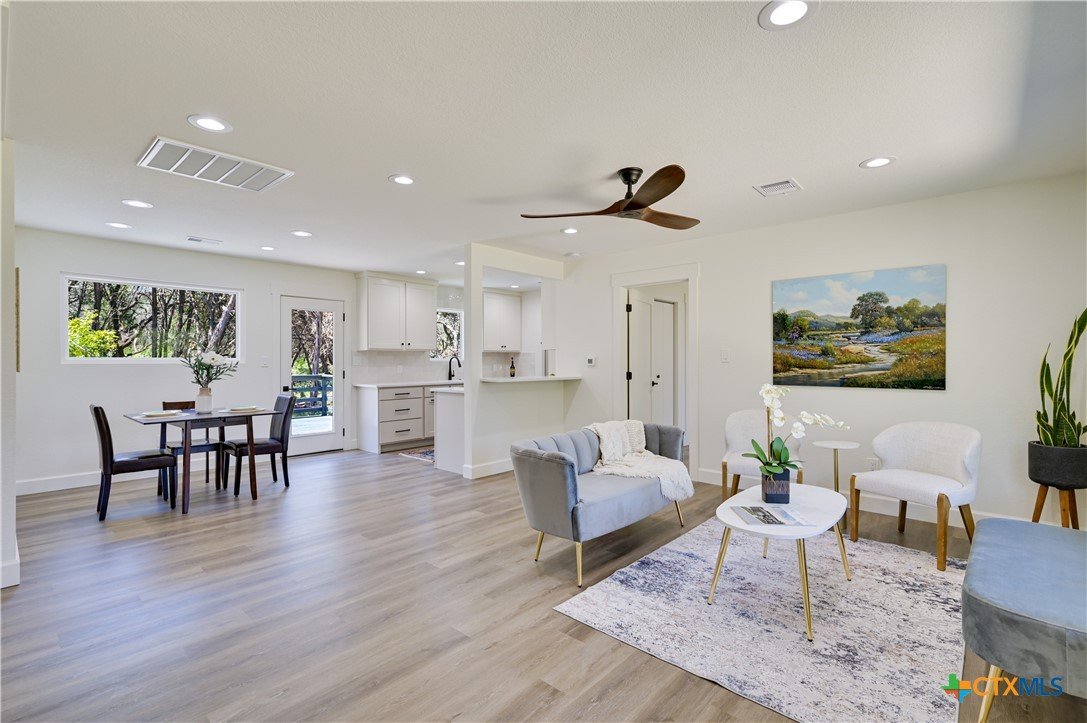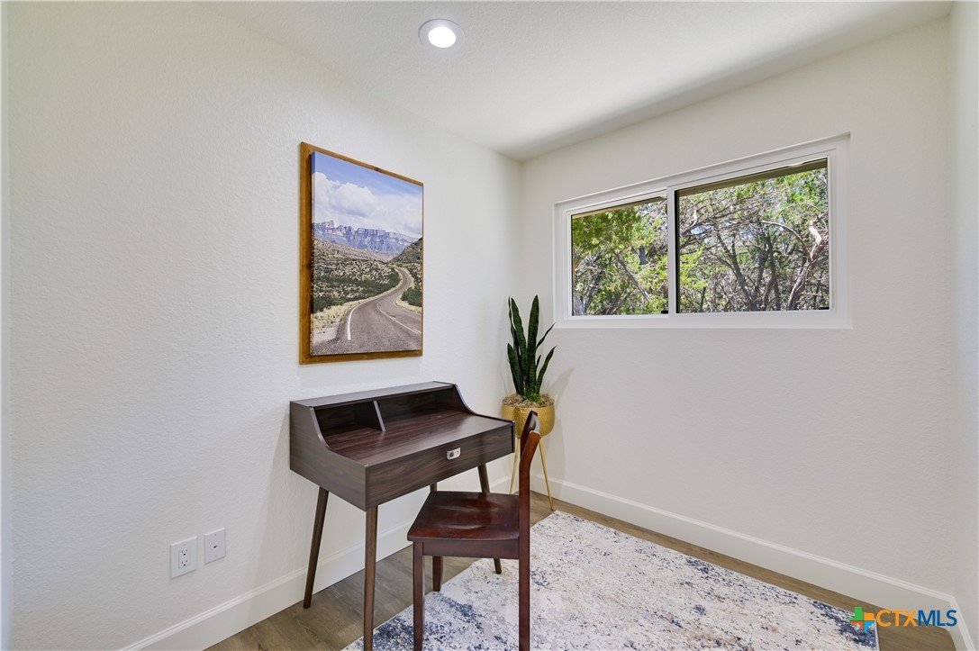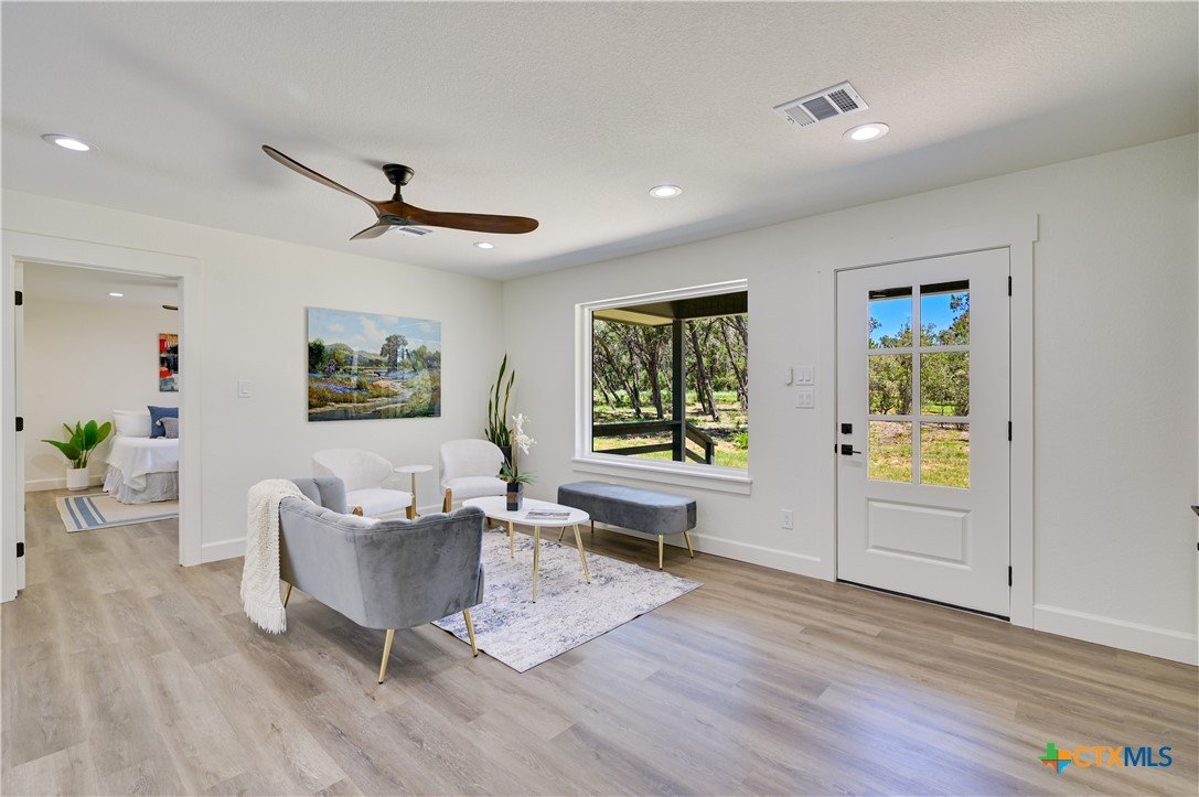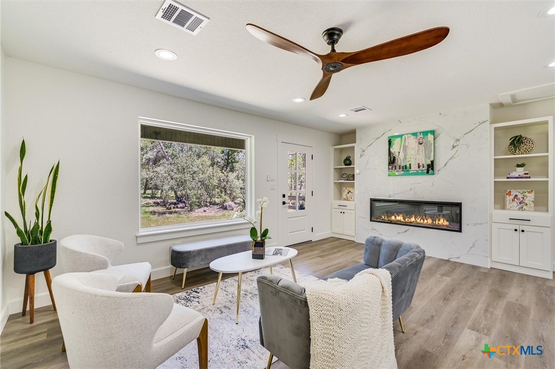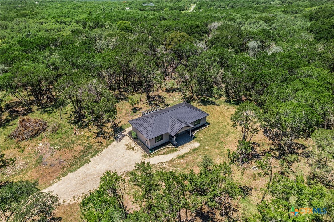 STR's allowed. This beautifully renovated home has been taken down to the studs and thoughtfully rebuilt, blending modern convenience with rustic charm. Nestled on 2.5 acres, the property features a durable standing seam metal roof and new siding for low-maintenance living. Step onto the inviting covered front porch and into a warm, open-concept interior. Wood floors flow throughout, and the living room is anchored by a cozy fireplace flanked by custom built-ins. The split-bedroom layout offers privacy, while a dedicated office provides a perfect space to work from home. The kitchen is outfitted with stone countertops, stainless steel appliances (including refrigerator), and a large pantry/laundry combo for added functionality. Both bathrooms are beautifully finished with high-quality touches and materials. Enjoy the peaceful surroundings from your private back deck. Light restrictions allow for flexibility, and the property features a shared driveway and well. A move-in ready retreat with charm, style, and room to roam!