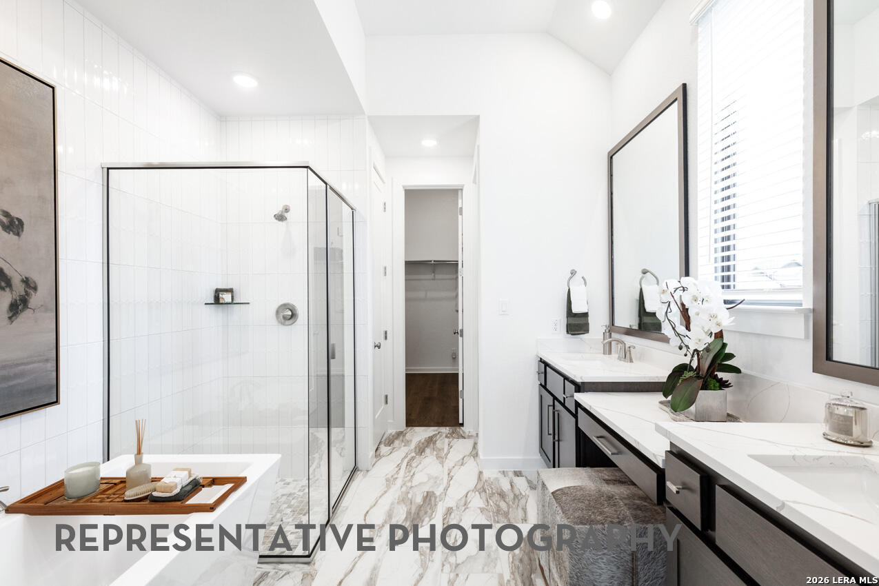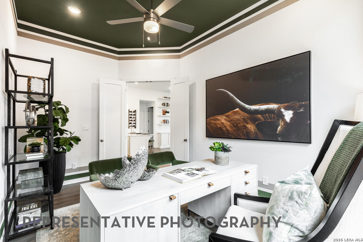 This ONE level home boasts expanded secondary bedrooms, 4 full baths and 3 are ensuite, 2-car garage, free standing tub in Primary bath, home office, wood floors, beautiful light neutral interior palette. Home under construction with estimated May/June completion. Built by Highland Homes