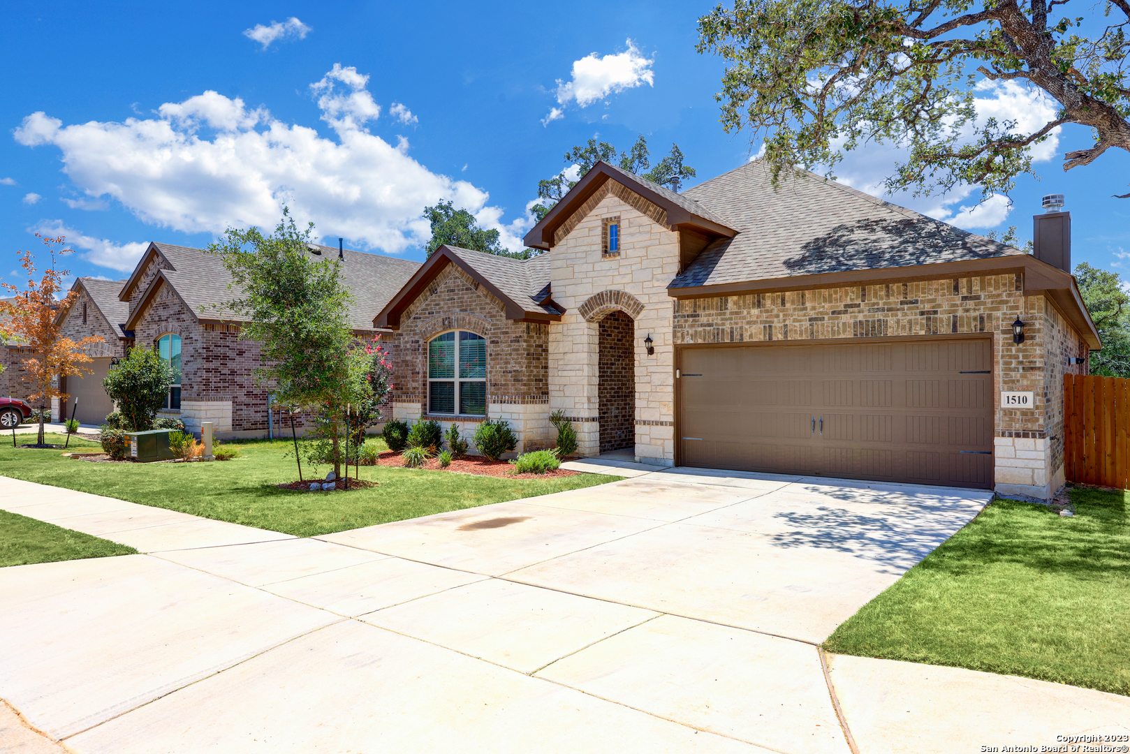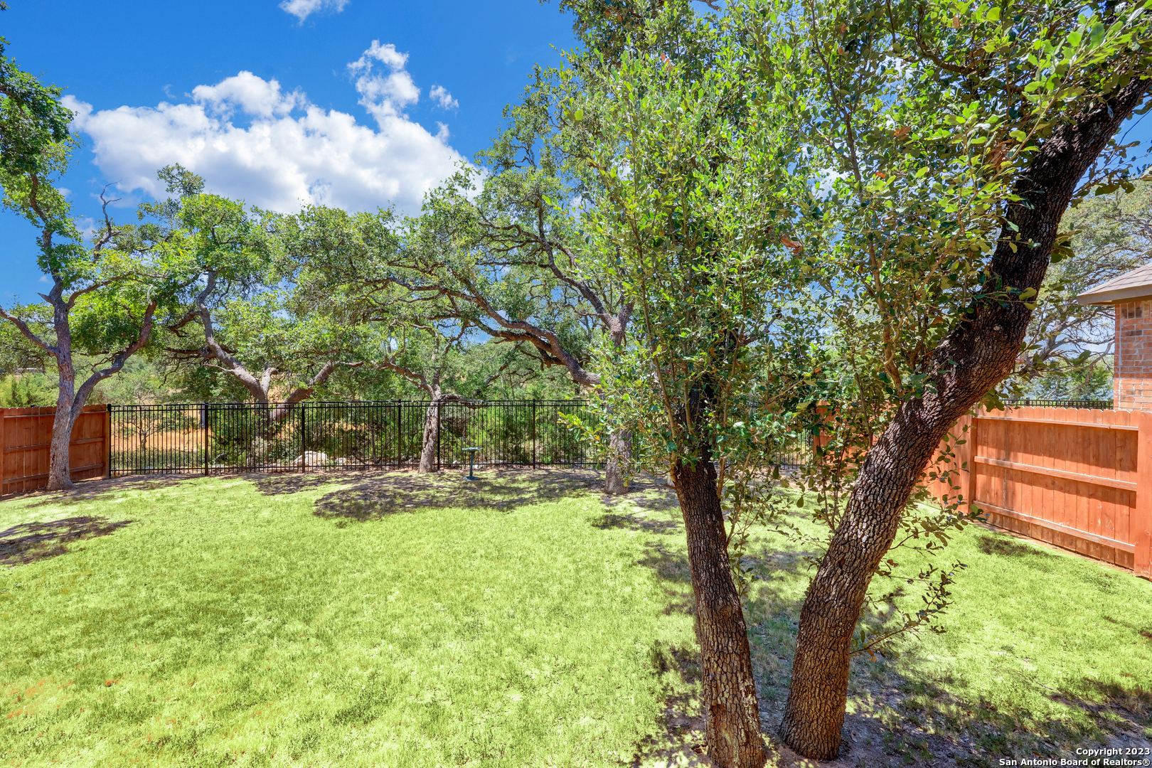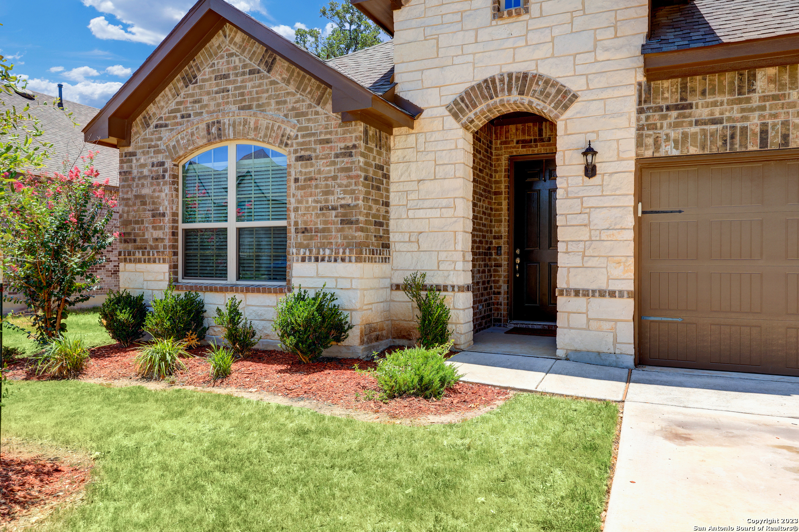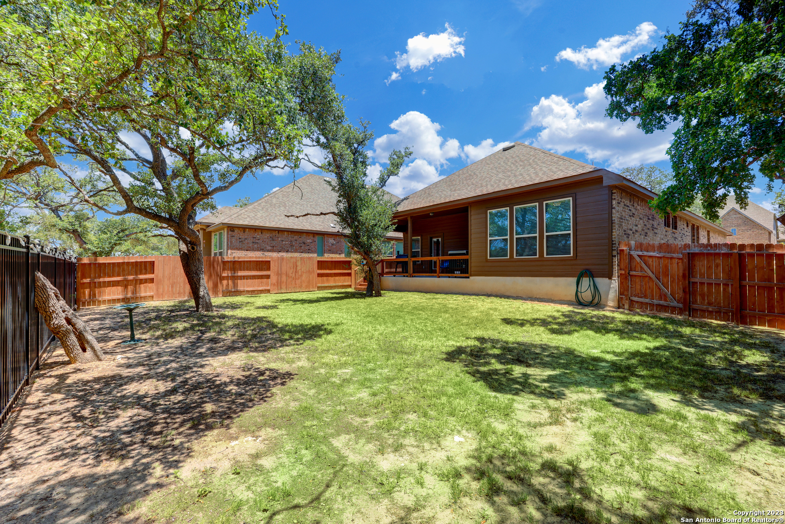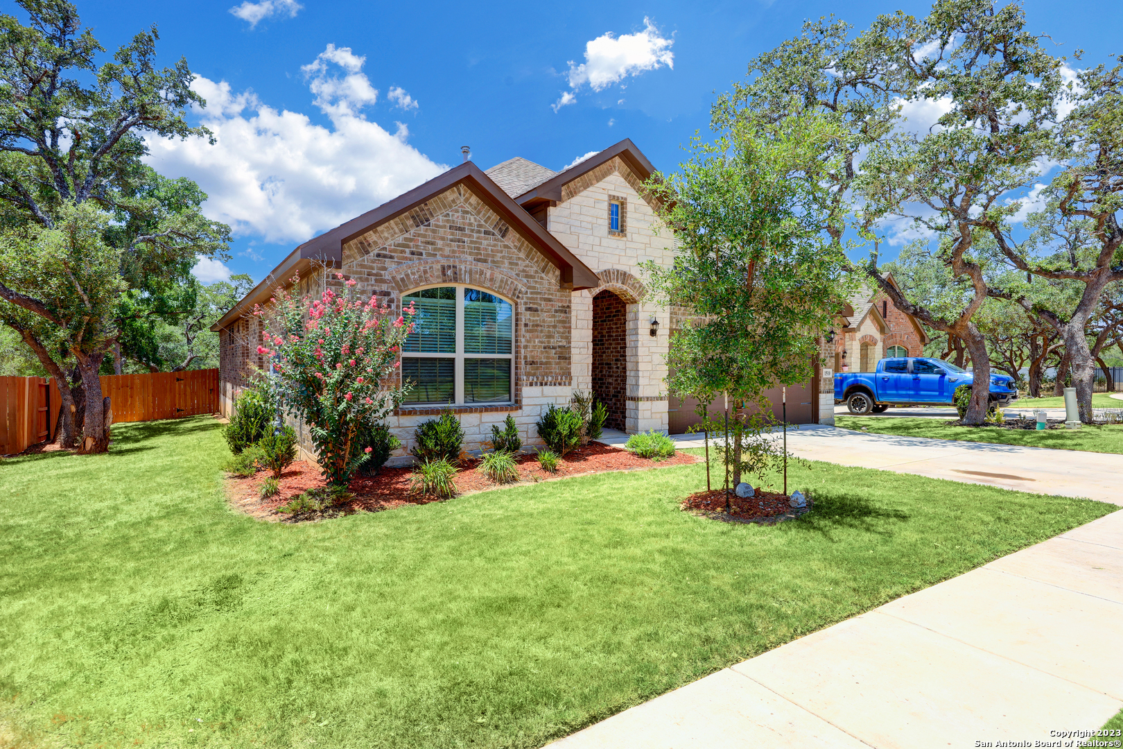 This like new single-story sanctuary spans 2244 sqft, boasting an open floor plan that seamlessly blends warmth and elegance. With 3 bedrooms, 2 bathrooms and flex space, this home offers comfort and serenity for your family's every need. Step into the heart of the home, where the inviting living area beams of natural light that pours through large windows. The open kitchen, adorned with sleek appliances and ample countertop space, beckons the inner chef in you to create culinary delights. But the real magic unfolds past the back door and onto the large patio that looks out to the properties mature trees and lush green belt. Your dream of Hill Country living awaits! This home is located in the highly desirable neighborhood of Meyer Ranch. Amenities include a resort style pool, splash pad, fitness center, chic barn-style community hall, multiple playgrounds and fire pits, BBQ grills, dog park and miles of walking trails. Residents also enjoy monthly events and weekly food trucks!