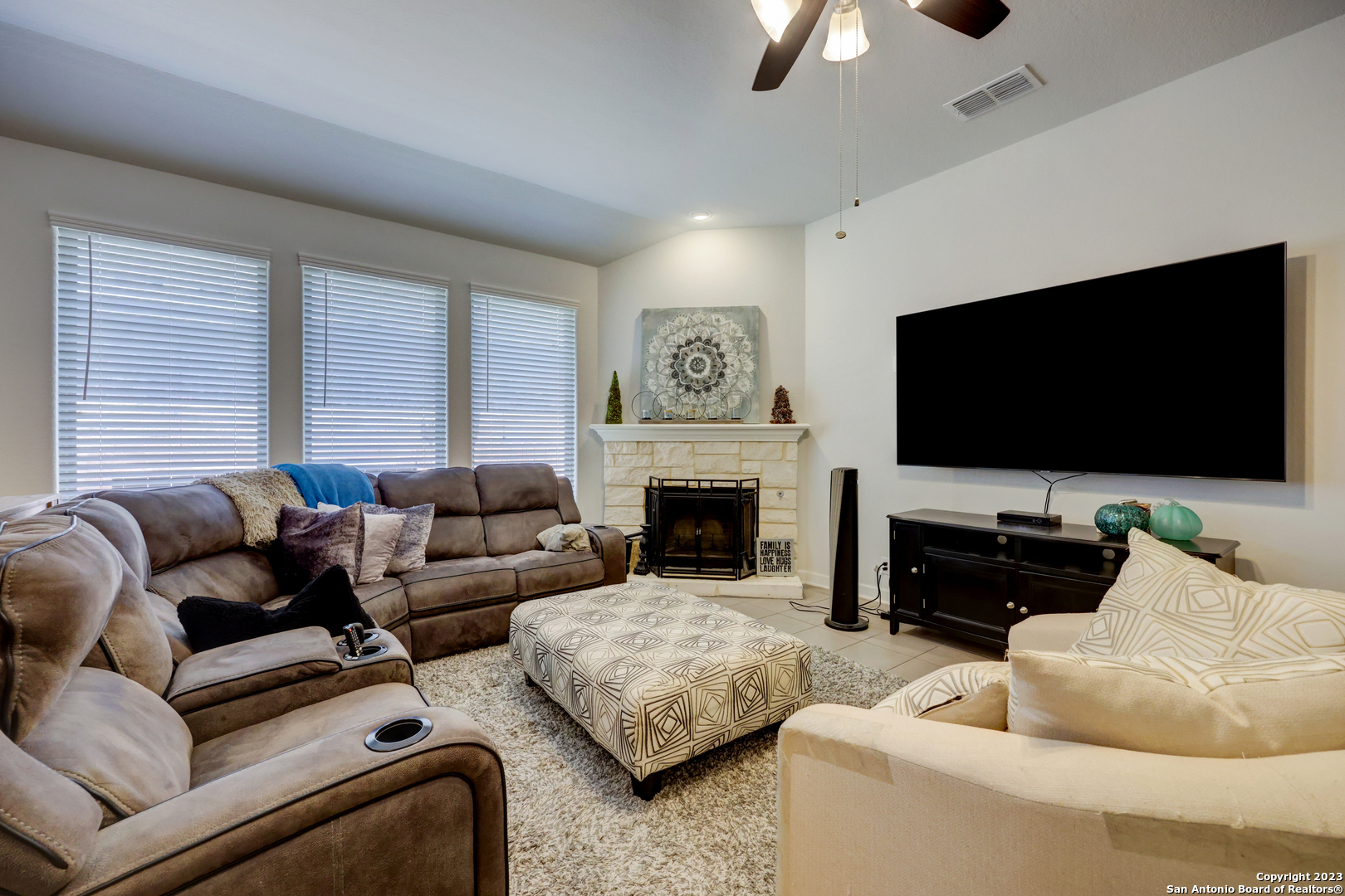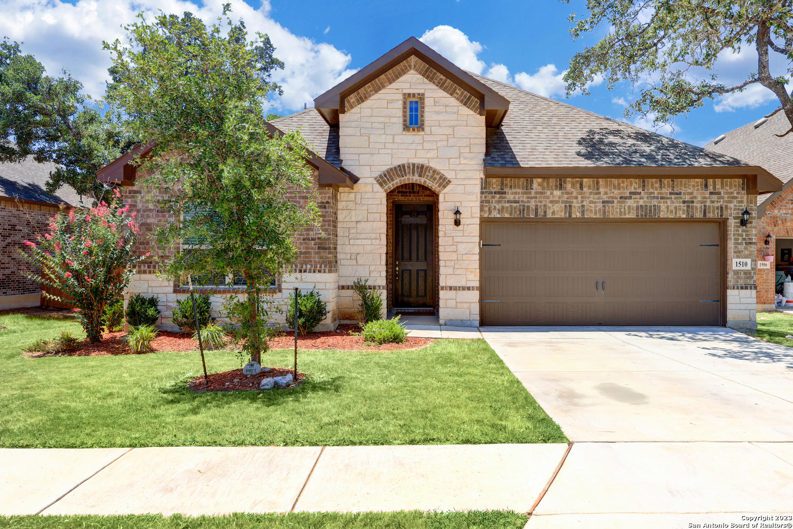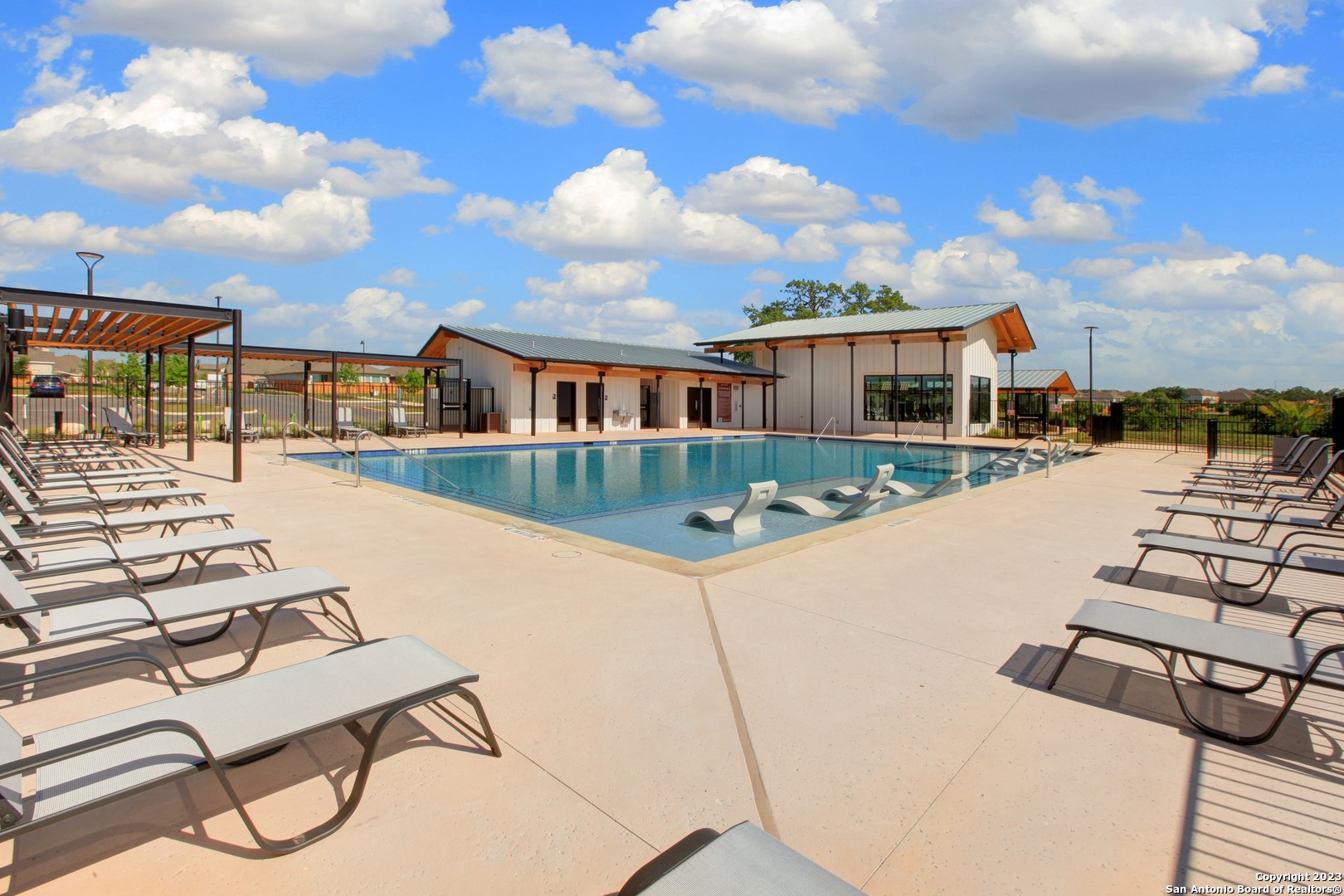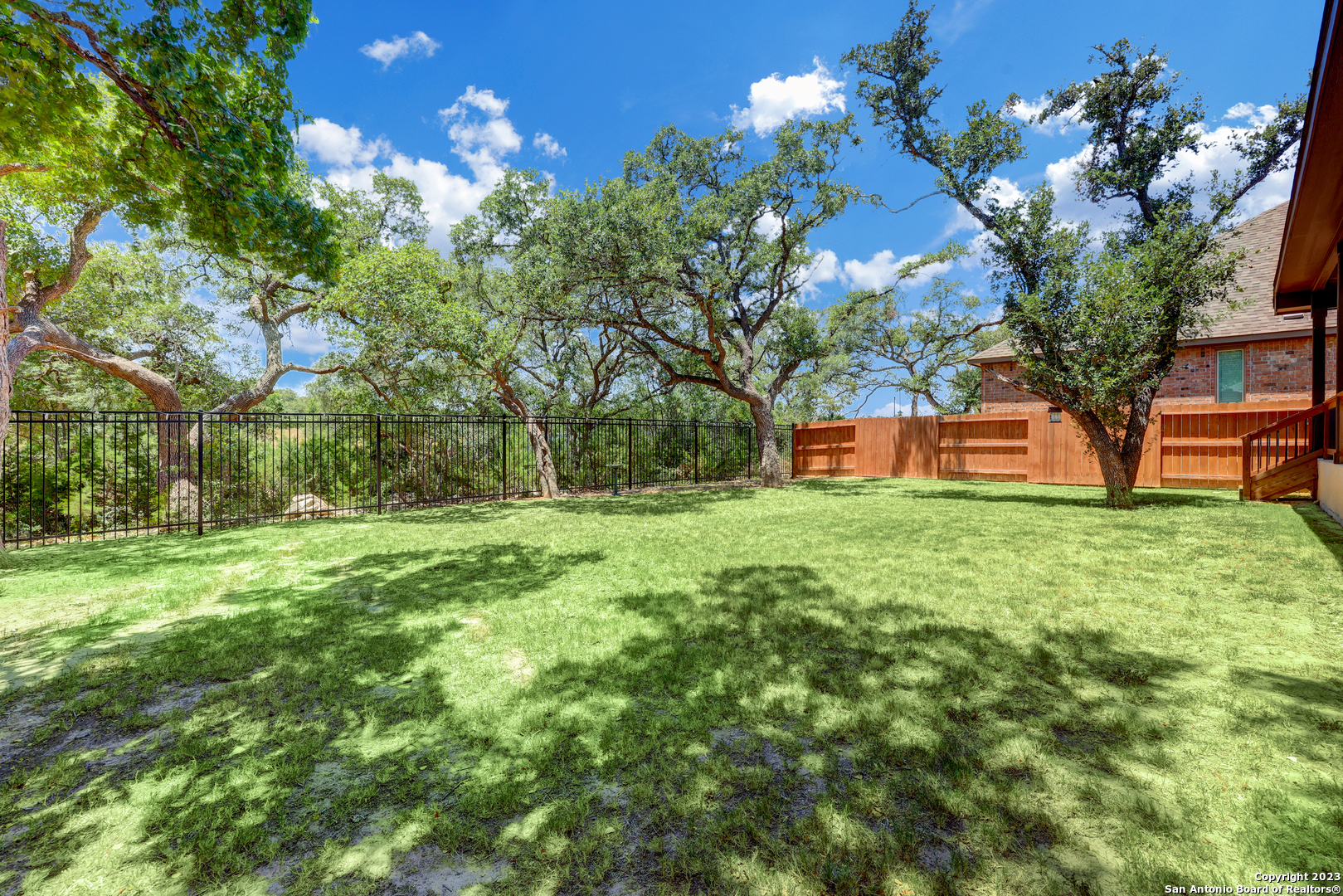 This like new single-story sanctuary spans 2244 sqft, boasting an open floor plan that seamlessly blends warmth and elegance. With 3 bedrooms, 2 bathrooms and flex space, this home offers comfort and serenity for your family's every need. Step into the heart of the home, where the inviting living area beams of natural light that pours through large windows. The open kitchen, adorned with sleek appliances and ample countertop space, beckons the inner chef in you to create culinary delights. But the real magic unfolds past the back door and onto the large patio that looks out to the properties mature trees and lush green belt. Your dream of Hill Country living awaits! This home is located in the highly desirable neighborhood of Meyer Ranch. Amenities include a resort style pool, splash pad, fitness center, chic barn-style community hall, multiple playgrounds and fire pits, BBQ grills, dog park and miles of walking trails. Residents also enjoy monthly events and weekly food trucks!