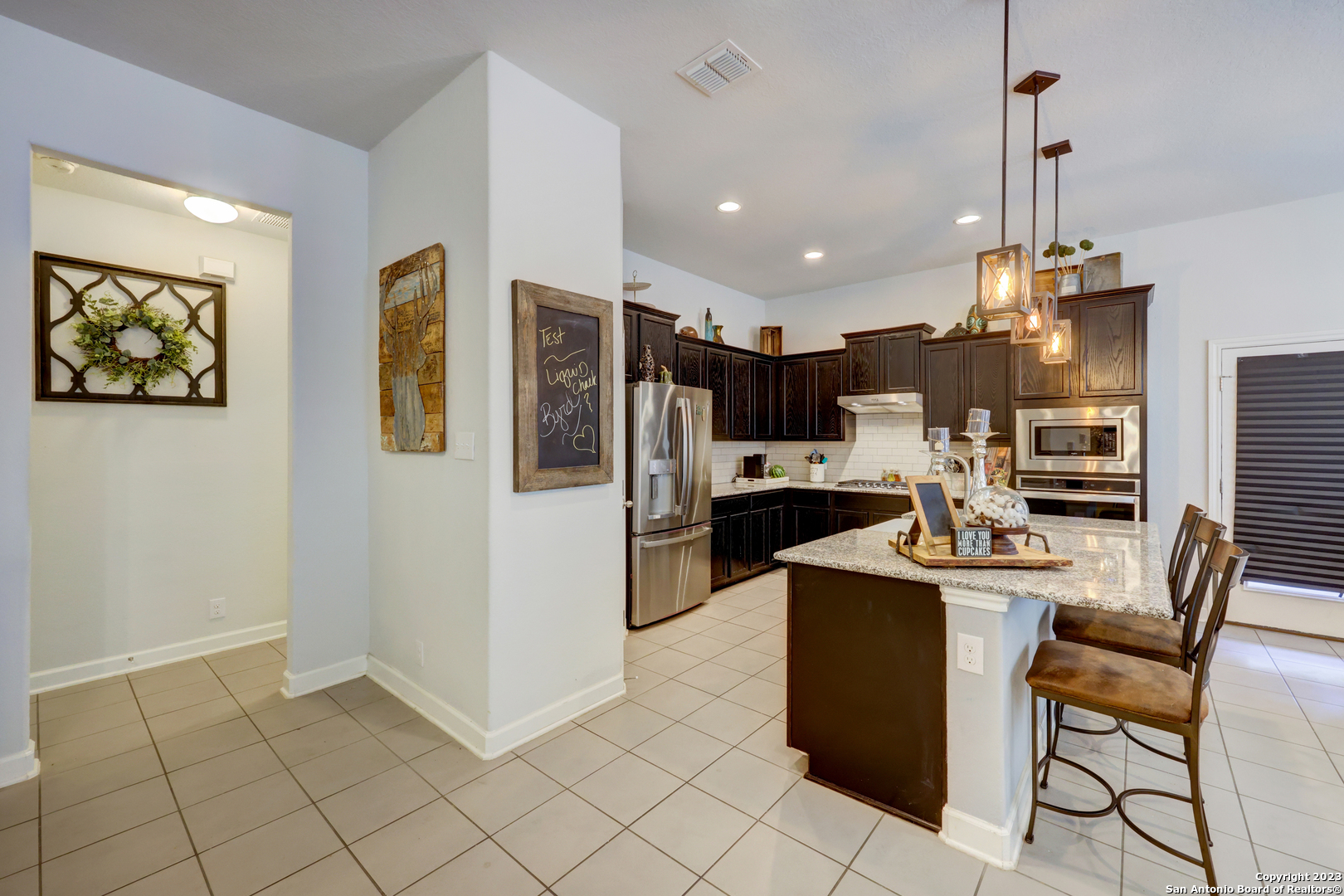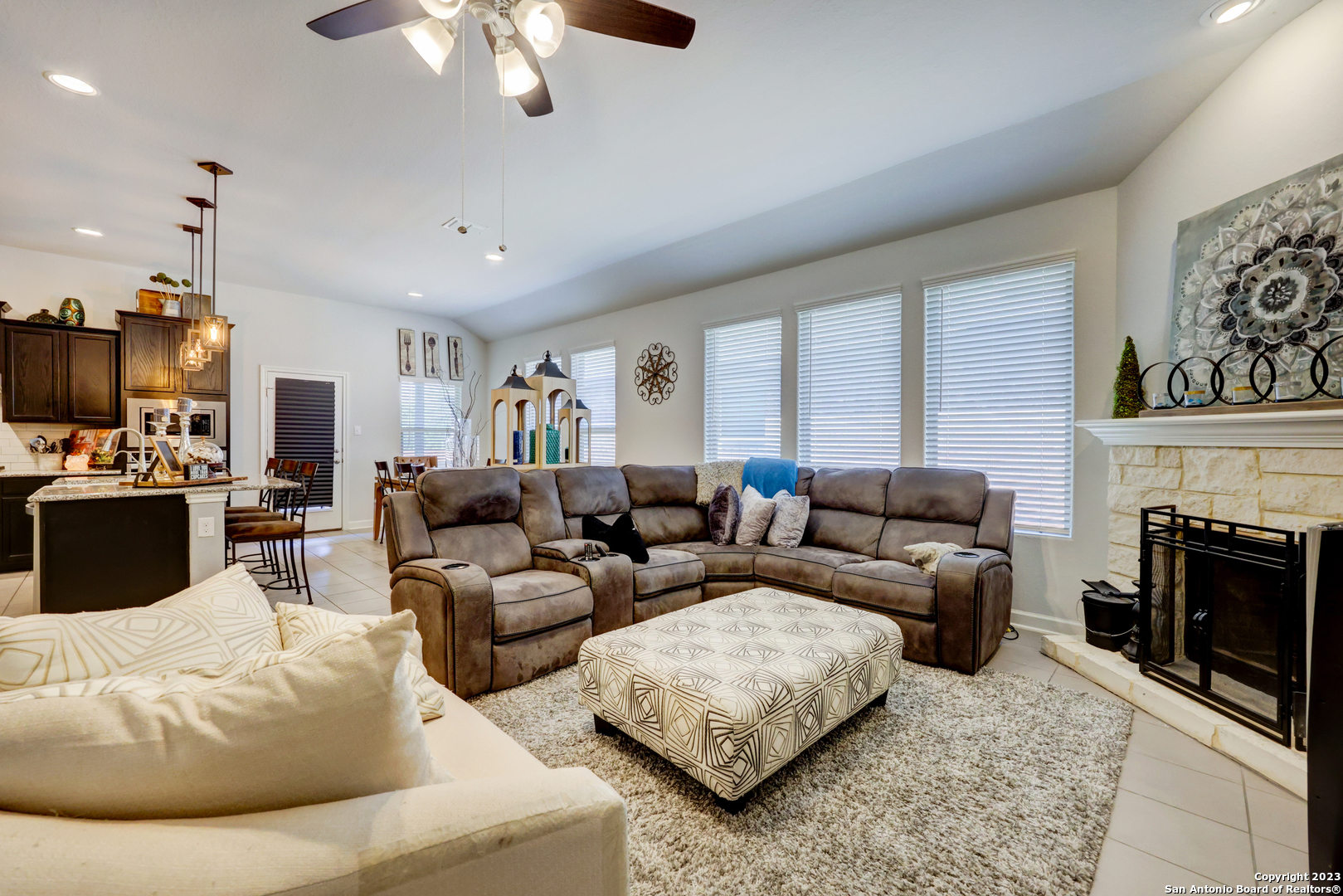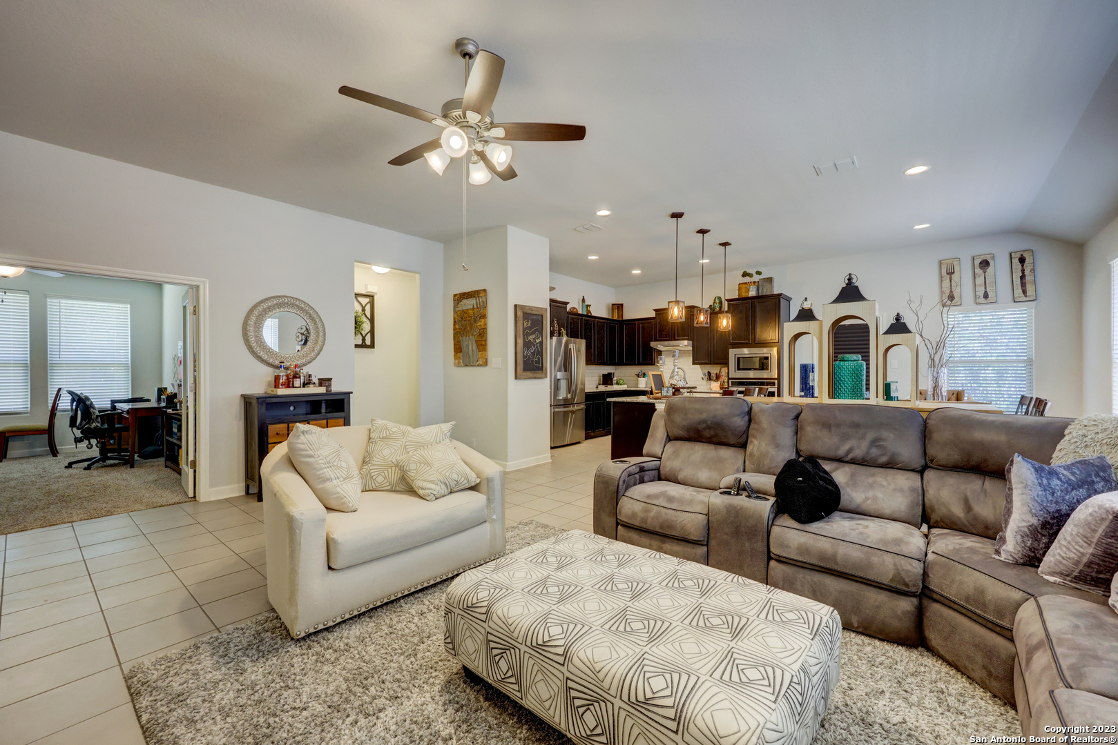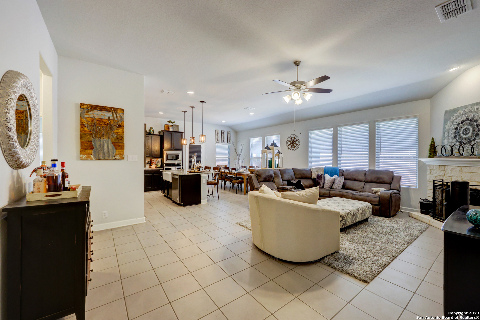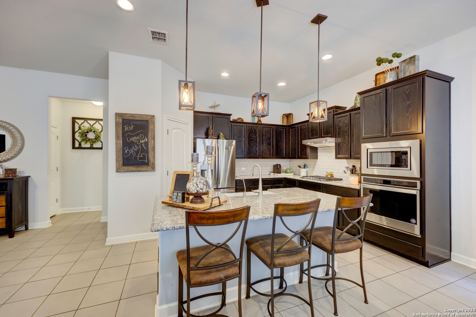 This like new single-story sanctuary spans 2244 sqft, boasting an open floor plan that seamlessly blends warmth and elegance. With 3 bedrooms, 2 bathrooms and flex space, this home offers comfort and serenity for your family's every need. Step into the heart of the home, where the inviting living area beams of natural light that pours through large windows. The open kitchen, adorned with sleek appliances and ample countertop space, beckons the inner chef in you to create culinary delights. But the real magic unfolds past the back door and onto the large patio that looks out to the properties mature trees and lush green belt. Your dream of Hill Country living awaits! This home is located in the highly desirable neighborhood of Meyer Ranch. Amenities include a resort style pool, splash pad, fitness center, chic barn-style community hall, multiple playgrounds and fire pits, BBQ grills, dog park and miles of walking trails. Residents also enjoy monthly events and weekly food trucks!