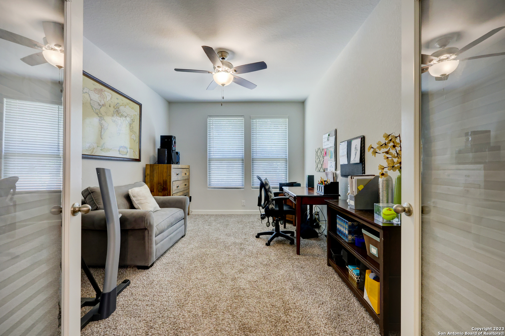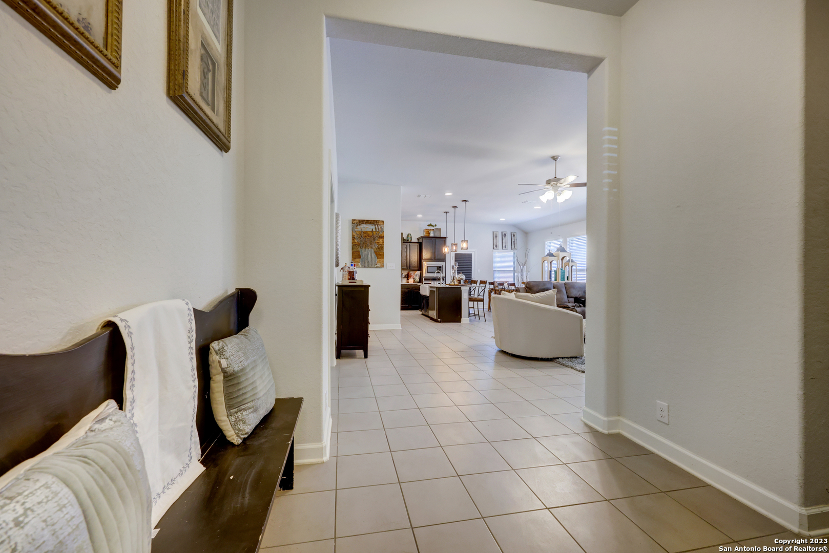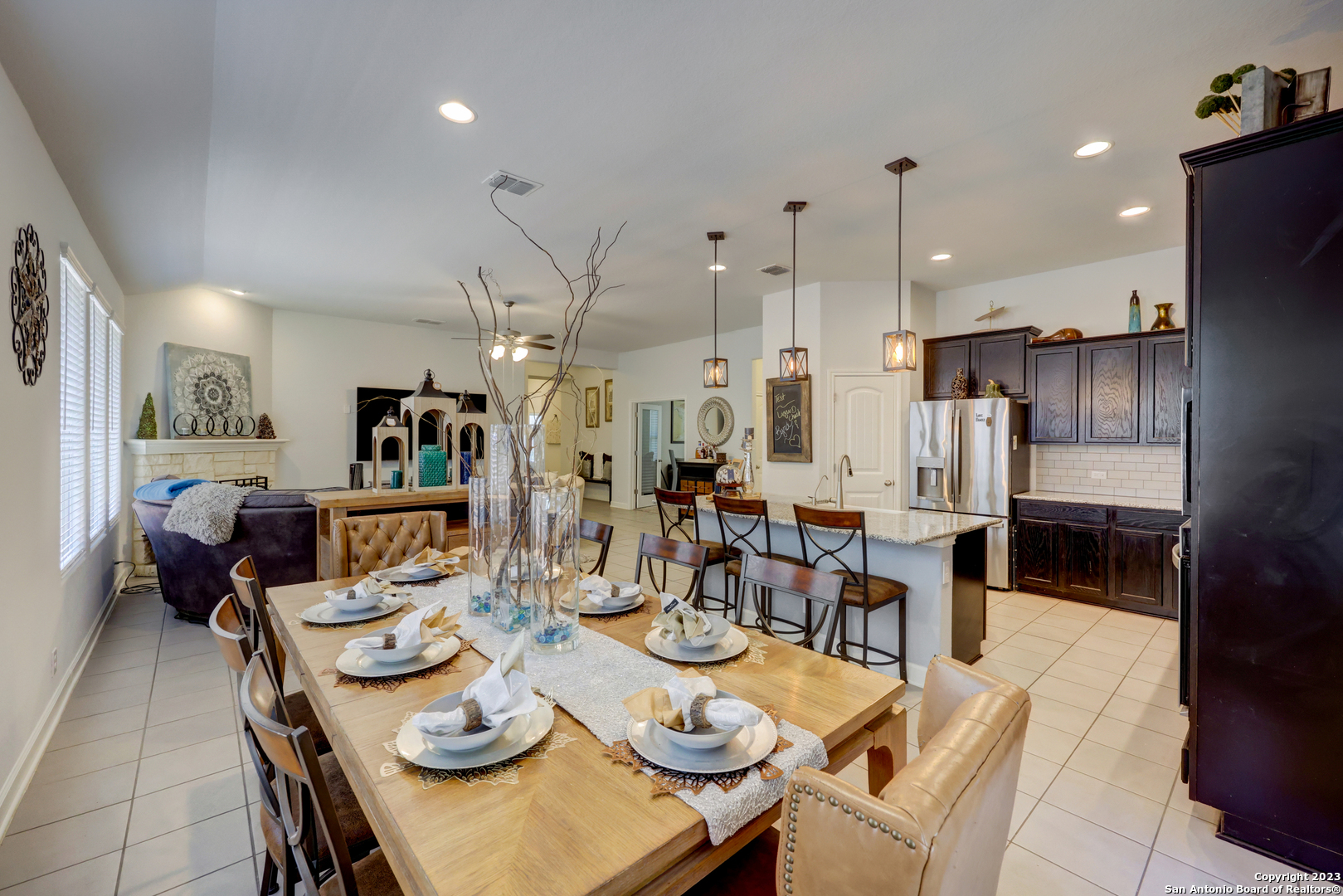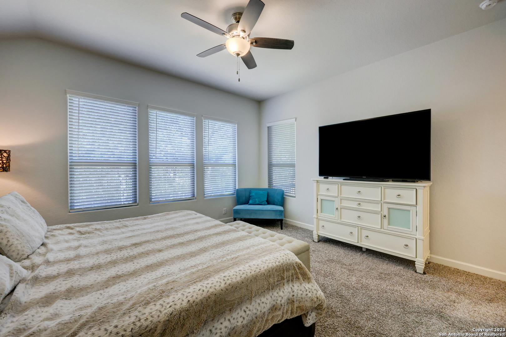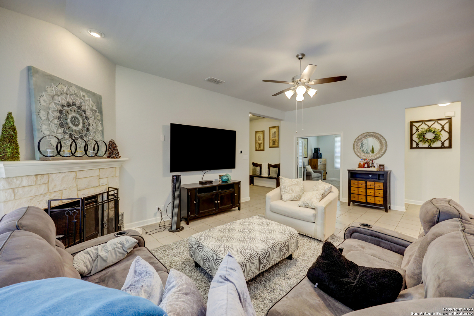 This like new single-story sanctuary spans 2244 sqft, boasting an open floor plan that seamlessly blends warmth and elegance. With 3 bedrooms, 2 bathrooms and flex space, this home offers comfort and serenity for your family's every need. Step into the heart of the home, where the inviting living area beams of natural light that pours through large windows. The open kitchen, adorned with sleek appliances and ample countertop space, beckons the inner chef in you to create culinary delights. But the real magic unfolds past the back door and onto the large patio that looks out to the properties mature trees and lush green belt. Your dream of Hill Country living awaits! This home is located in the highly desirable neighborhood of Meyer Ranch. Amenities include a resort style pool, splash pad, fitness center, chic barn-style community hall, multiple playgrounds and fire pits, BBQ grills, dog park and miles of walking trails. Residents also enjoy monthly events and weekly food trucks!