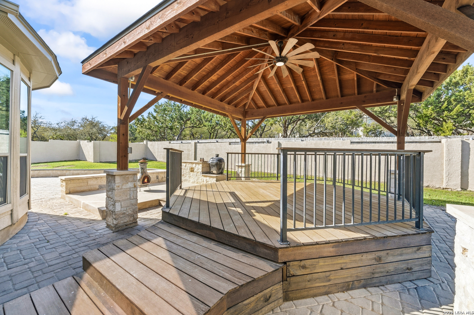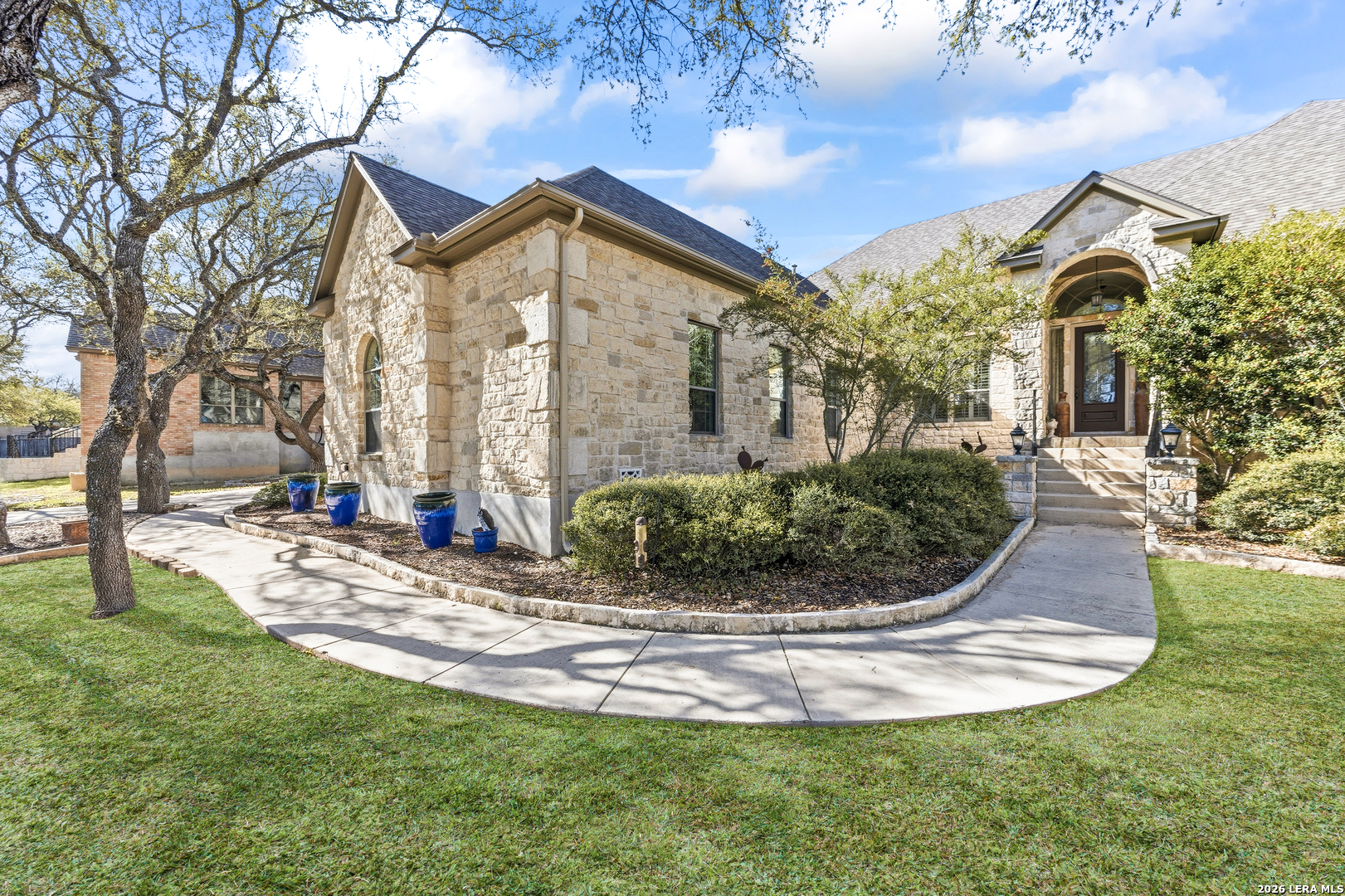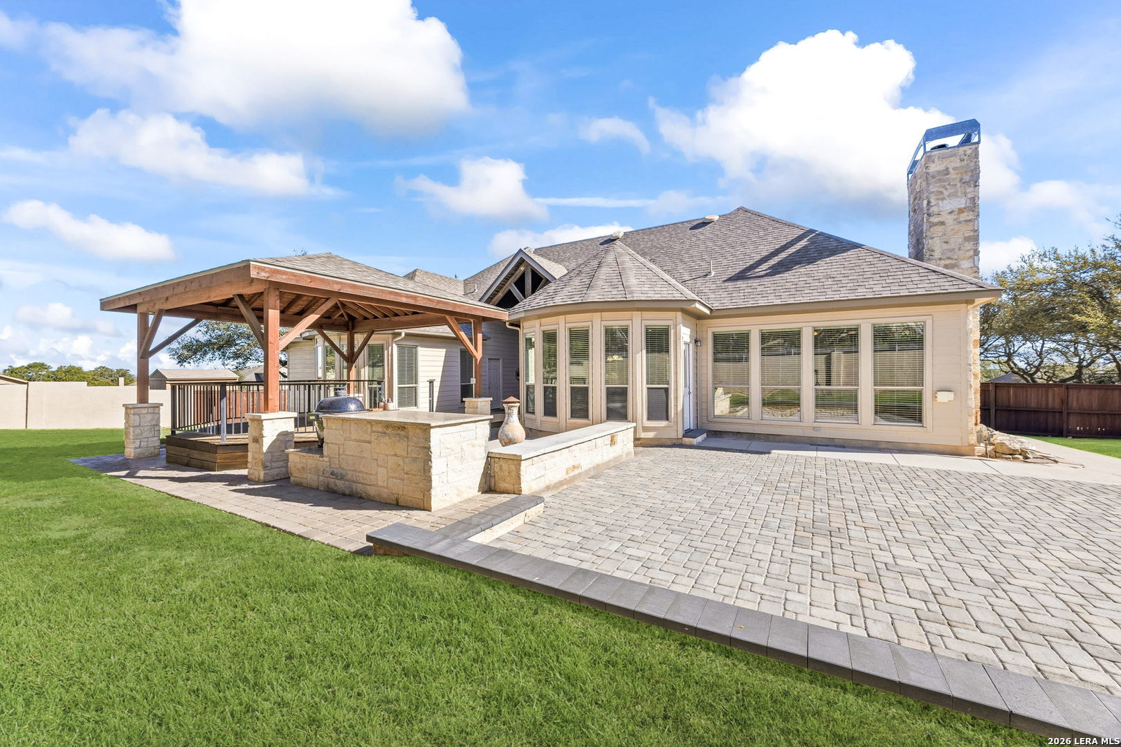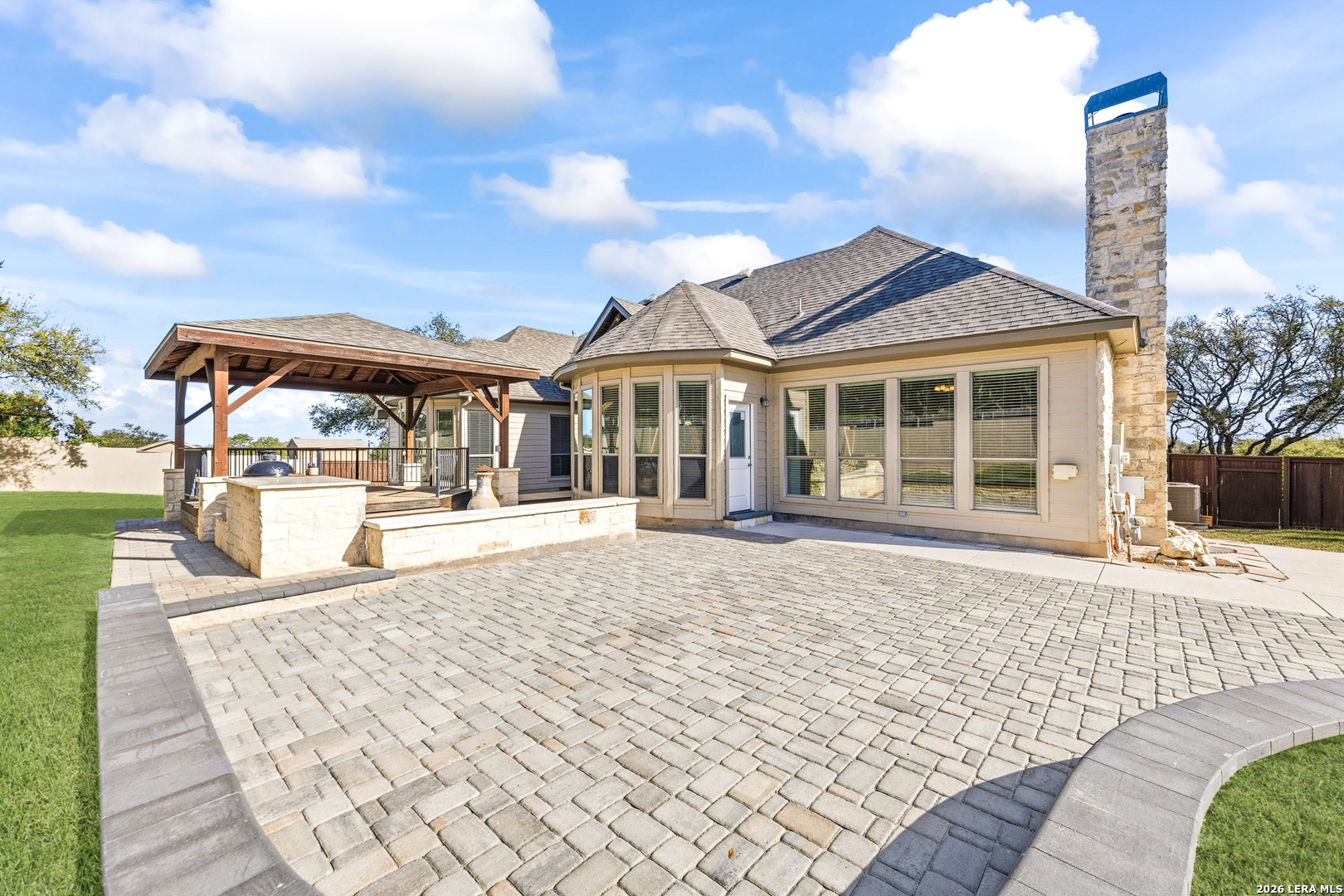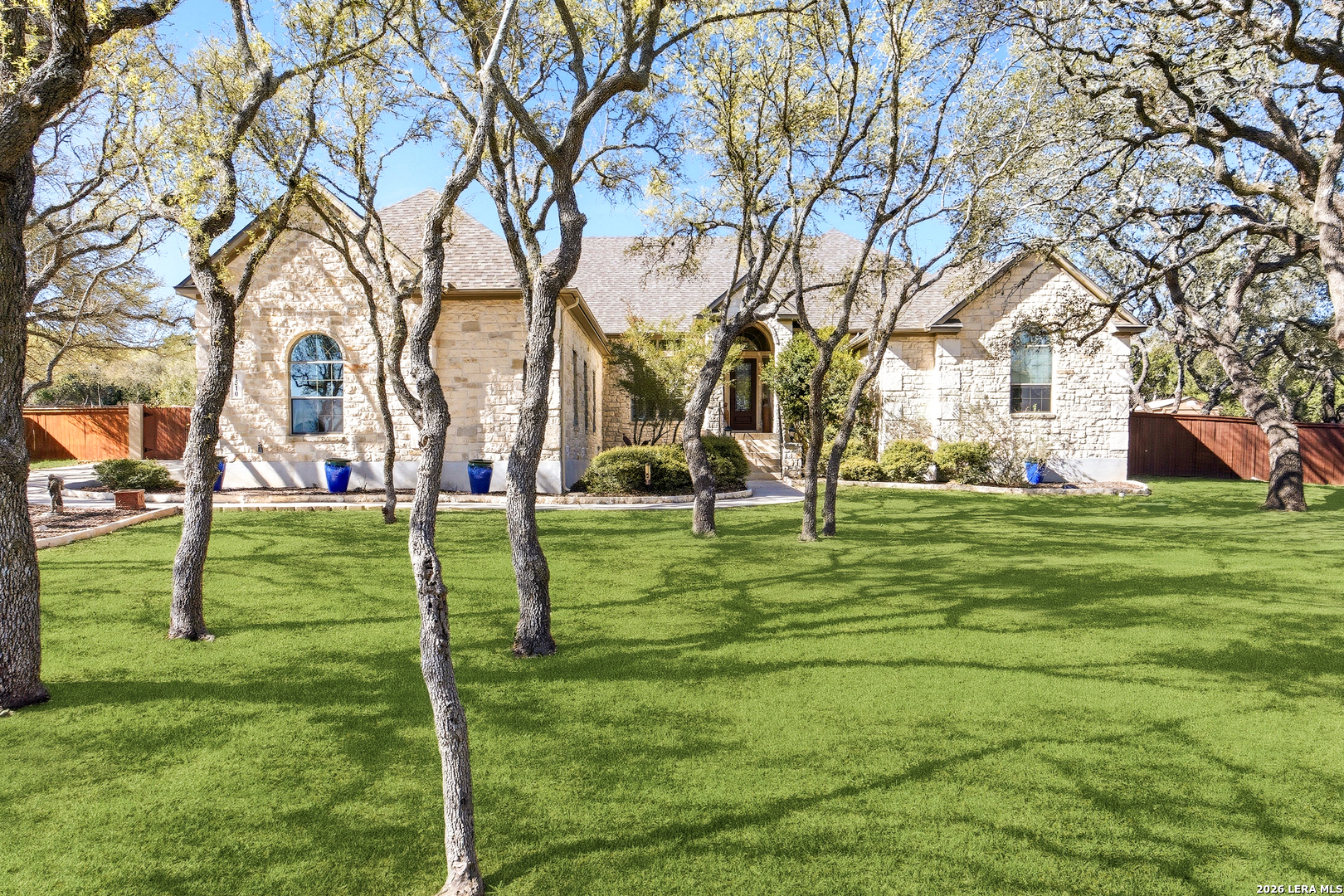 Beautiful custom stone home situated on .61 acres in the gated community of Clementson Ranch! This thoughtfully designed one-story home offers 4 spacious bedrooms, a dedicated study, and 3 full bathrooms, along with a 3-car side-entry garage. Step into an inviting open living space anchored by a stunning floor-to-ceiling stone fireplace, seamlessly flowing into a well-appointed kitchen featuring a large island, abundant cabinetry, and a bright breakfast nook-perfect for everyday living and entertaining. The private primary suite offers a relaxing retreat with a spa-like bathroom, complete with a garden tub, separate walk-in shower, expansive walk-in closet, and built-in floor safe. Fresh interior paint enhances the light and airy feel throughout the home. Step outside to enjoy the oversized deck and covered patio, creating the perfect outdoor living space for gatherings, entertaining, or simply unwinding while taking in the peaceful surroundings. Located in the desirable Clementson Ranch community, you'll enjoy a quiet, country feel with the convenience of being just minutes from shopping, dining, and everyday essentials. Benefit from no city taxes and access to highly rated Comal County schools. This move-in ready home truly offers the perfect blend of comfort, space, and lifestyle.