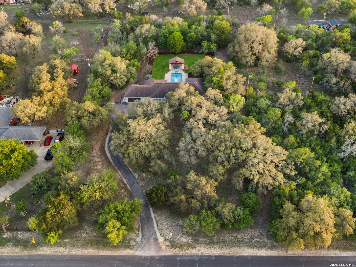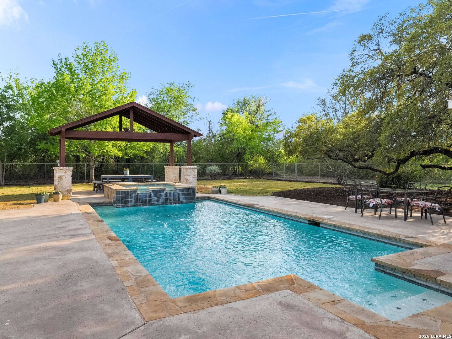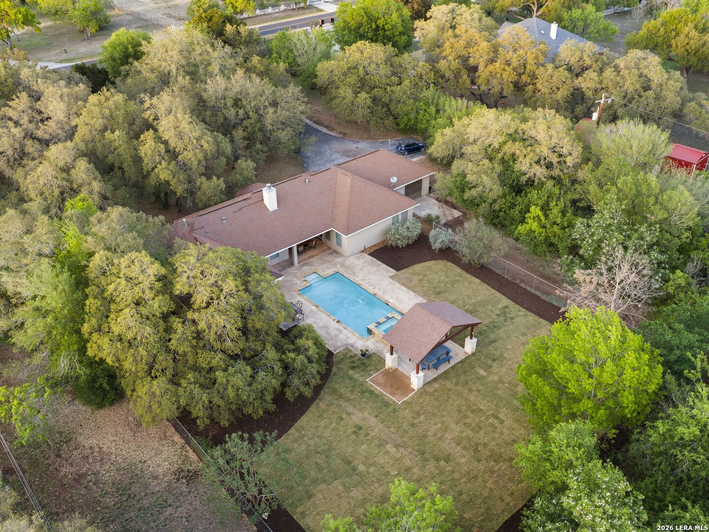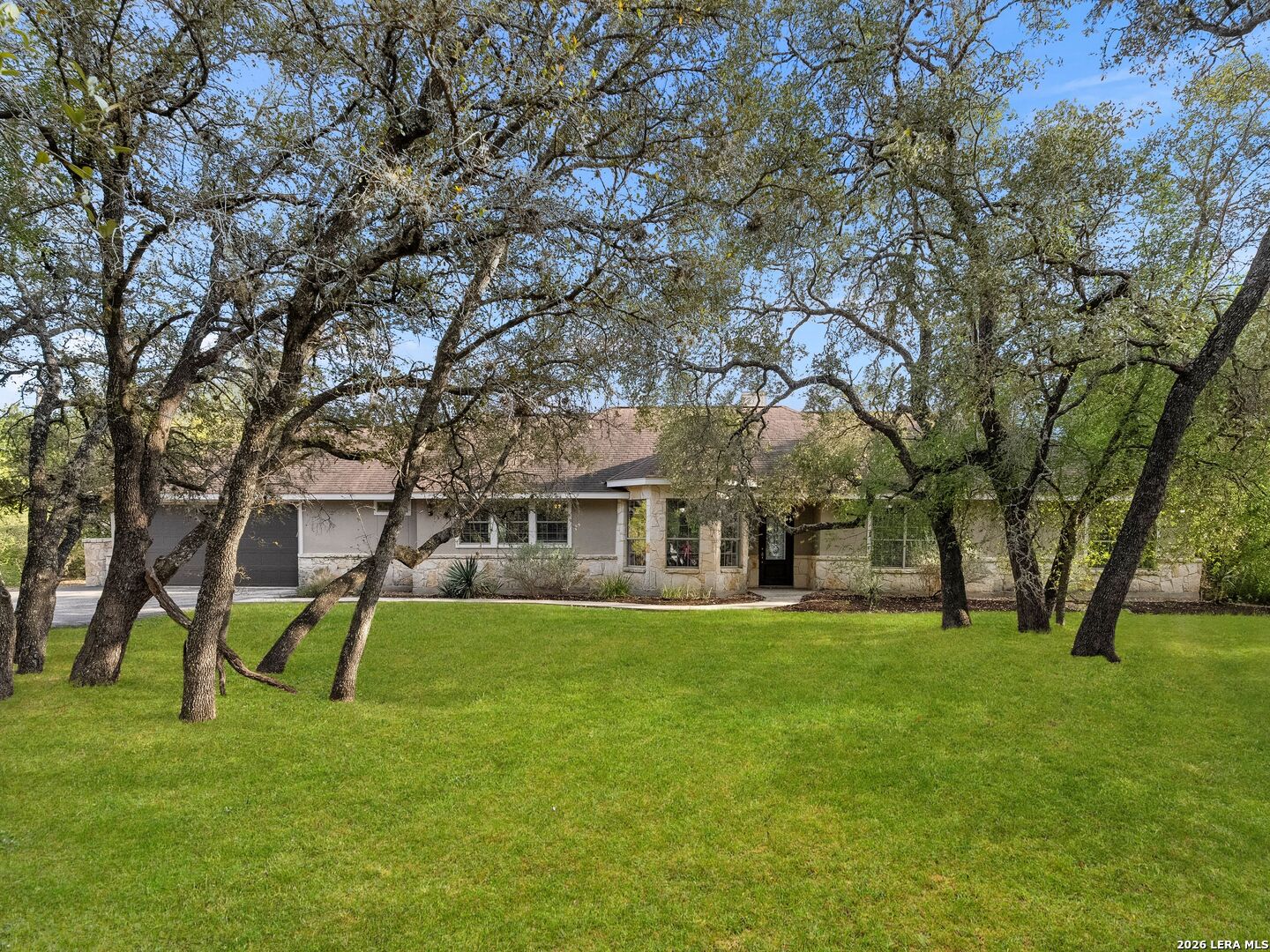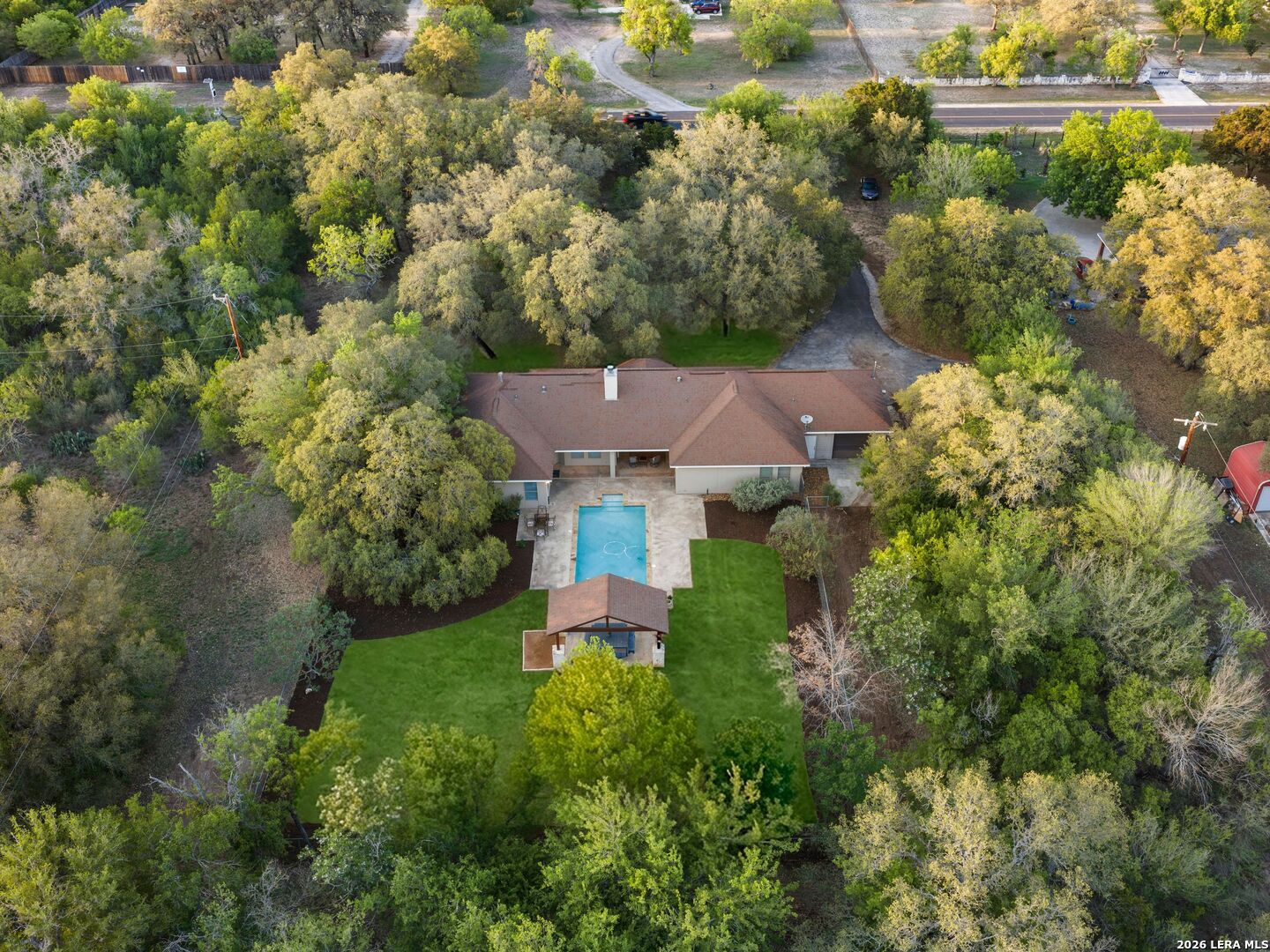 Set on a beautiful 2-acre lot backing to a peaceful greenbelt, this freshly painted custom-built one-story home offers privacy, space, and thoughtful design in a highly sought-after area with excellent schools. Surrounded by mature trees and a large private yard, the property provides a quiet setting while still being convenient to nearby amenities. With 2,776 square feet, the home features 3 bedrooms and 2.5 bathrooms and includes ADA-compliant design elements for comfort and accessibility. The well-designed floor plan offers multiple spaces for gathering and entertaining, including an oversized family room, formal dining room, and a formal living area. The expansive family room provides plenty of space for a billiards table, creating a flexible entertaining environment. Custom built-ins throughout the home add both character and functional storage. The kitchen is designed for everyday living and hosting with a few modern updates and includes a new water filtration system, large walk-in pantry and an island for additional workspace. Step outside to enjoy the recently updated landscape, sprinkler system and covered patio with an outdoor fireplace, overlooking the swimming pool/spa and expansive backyard with covered gazebo and framed by towering mature trees and backing to your extended lot and greenbelt for added privacy. Additional highlights include a drive-through garage, two-car garage parking, and the rare opportunity to enjoy two acres in one of the area's most convenient and desirable locations with restaurants, entertainment, retail and parks close by.