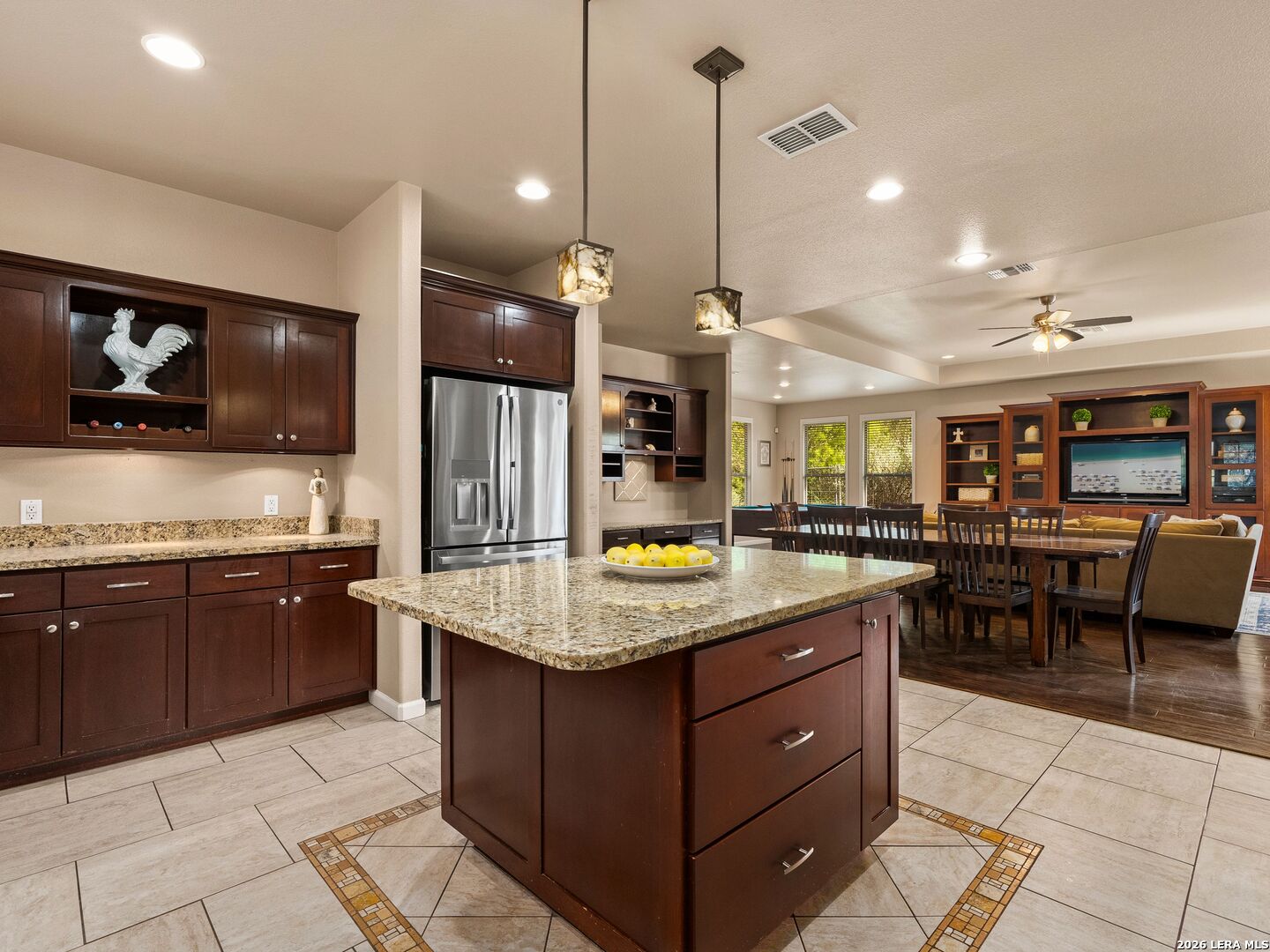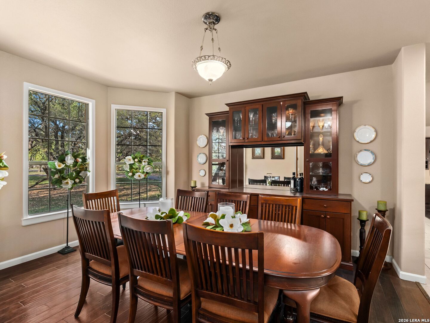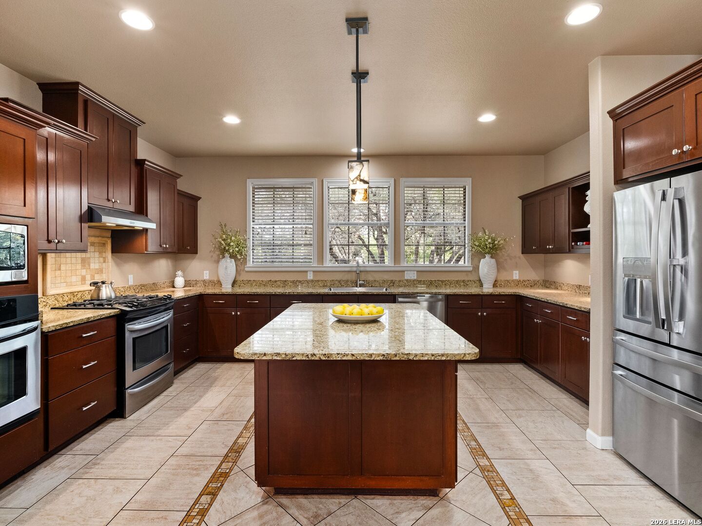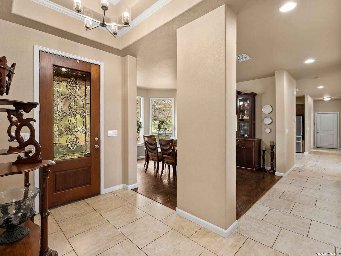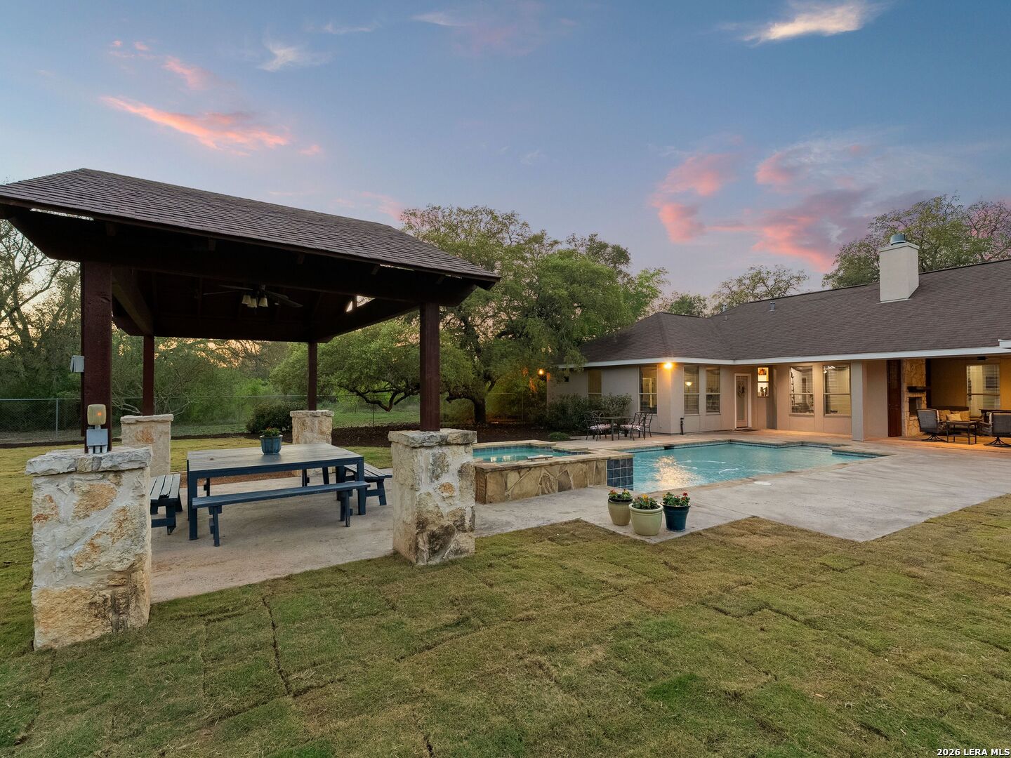 Set on a beautiful 2-acre lot backing to a peaceful greenbelt, this freshly painted custom-built one-story home offers privacy, space, and thoughtful design in a highly sought-after area with excellent schools. Surrounded by mature trees and a large private yard, the property provides a quiet setting while still being convenient to nearby amenities. With 2,776 square feet, the home features 3 bedrooms and 2.5 bathrooms and includes ADA-compliant design elements for comfort and accessibility. The well-designed floor plan offers multiple spaces for gathering and entertaining, including an oversized family room, formal dining room, and a formal living area. The expansive family room provides plenty of space for a billiards table, creating a flexible entertaining environment. Custom built-ins throughout the home add both character and functional storage. The kitchen is designed for everyday living and hosting with a few modern updates and includes a new water filtration system, large walk-in pantry and an island for additional workspace. Step outside to enjoy the recently updated landscape, sprinkler system and covered patio with an outdoor fireplace, overlooking the swimming pool/spa and expansive backyard with covered gazebo and framed by towering mature trees and backing to your extended lot and greenbelt for added privacy. Additional highlights include a drive-through garage, two-car garage parking, and the rare opportunity to enjoy two acres in one of the area's most convenient and desirable locations with restaurants, entertainment, retail and parks close by.