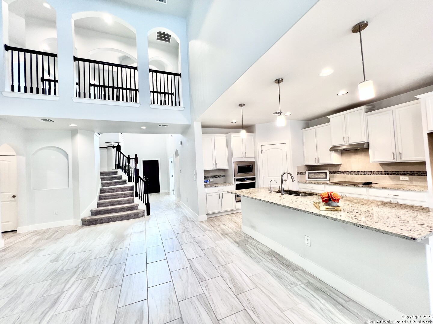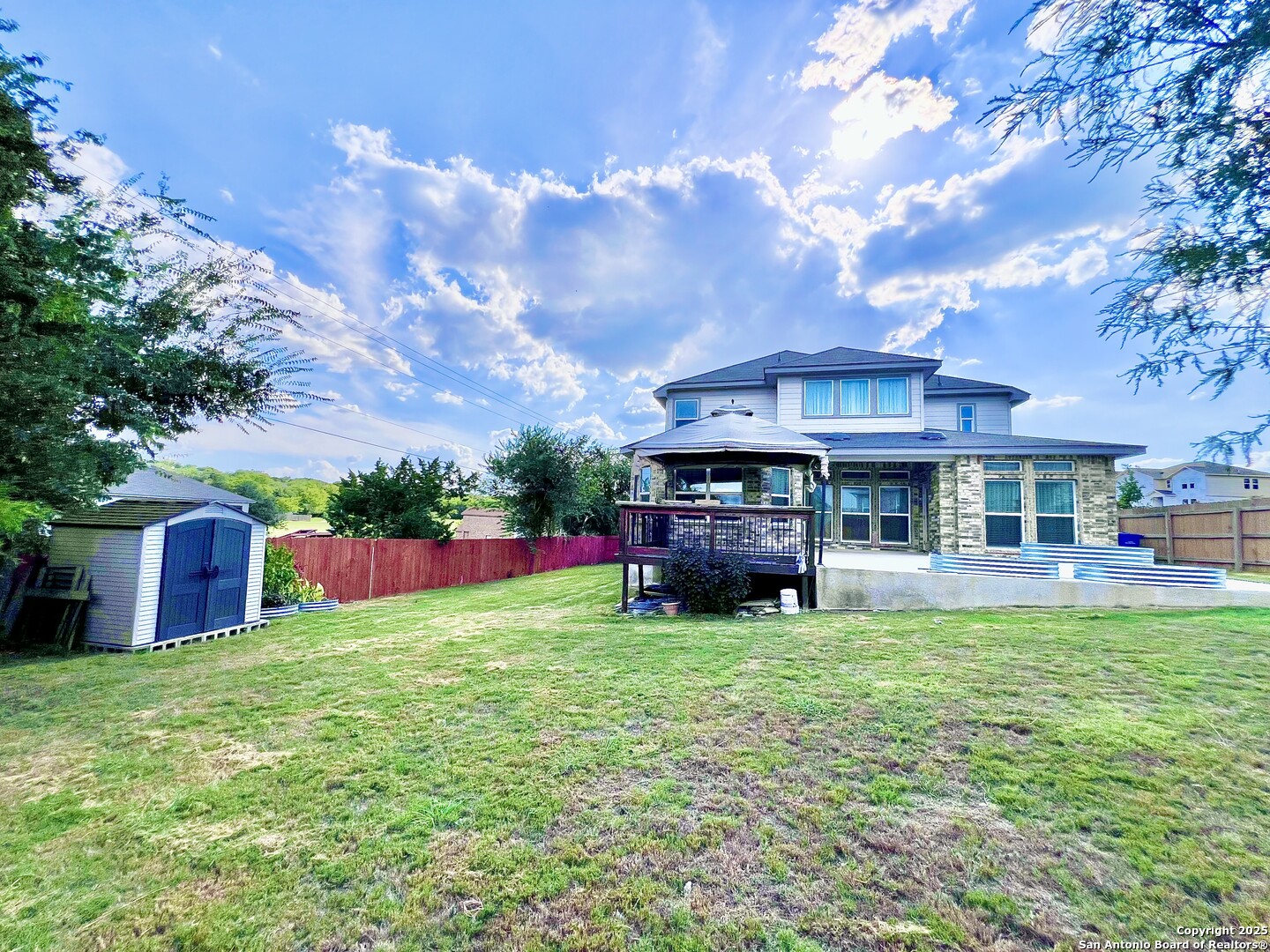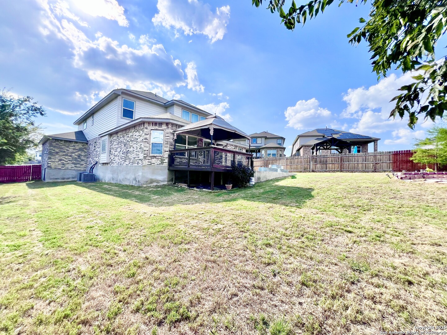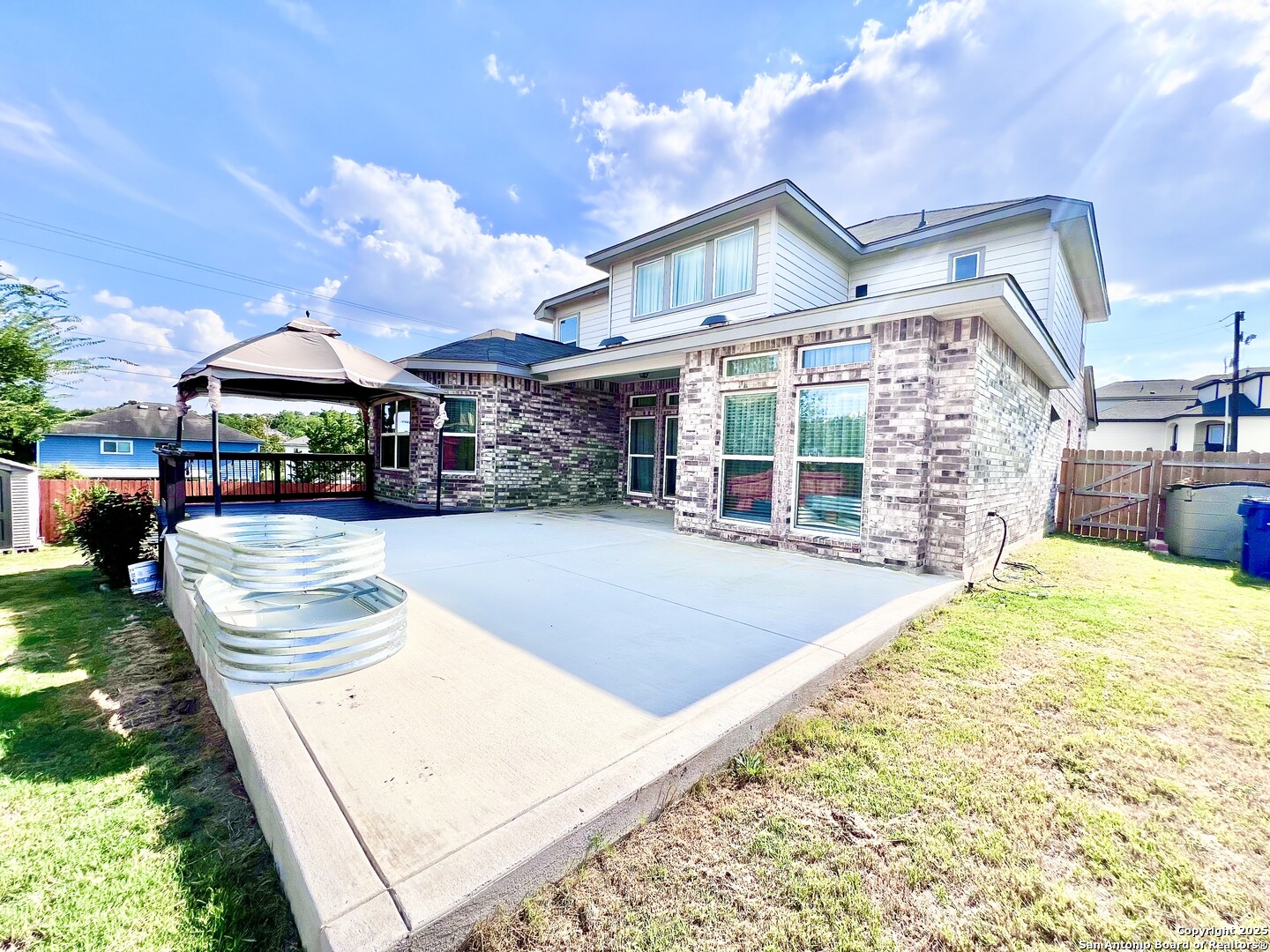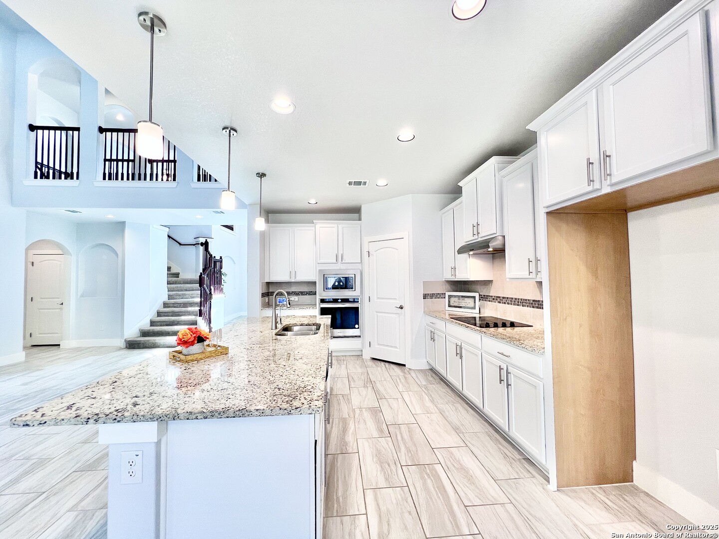 OPEN HOUSE SATURDAY 09/27 FROM 11AM - 2PM. Welcome to this exquisite 4-bedroom, 4-bathroom home with a 3-car garage, premium upgrades, and a thoughtful layout in the desirable Comanche Ridge community. Offering over 3,103 sq. ft. on one of the largest lots in the neighborhood (.246 acre), this property provides privacy, space, and comfort. Step inside to soaring ceilings, abundant natural light, and elegant architectural details including decorative niches, arches, and alcoves throughout. The open floor plan showcases a breathtaking staircase, versatile loft, and multiple living areas, perfect for both entertaining and everyday living. The chef's kitchen is a true centerpiece with granite countertops, stainless steel appliances, electric cooking, custom island, upgraded backsplash, and pendant lighting. The downstairs primary suite features bay windows, dual vanities, and a walk-in shower with detailed tilework. A secondary downstairs bedroom with direct access to a full bath works perfectly as a private guest suite or home office. Upstairs offers two additional bedrooms, two full baths, and a spacious game room. Additional highlights include dual primary bedrooms, a covered front porch, extended back patio, marble-look tile flooring, folding station in the laundry room, custom window curtains, owned water softener, tankless water heater, and irrigation system. Conveniently located near Loop 1604 and I-35 with quick access to Randolph AFB, Fort Sam Houston, shopping, dining, and more. Schedule your showing today-you will love it!