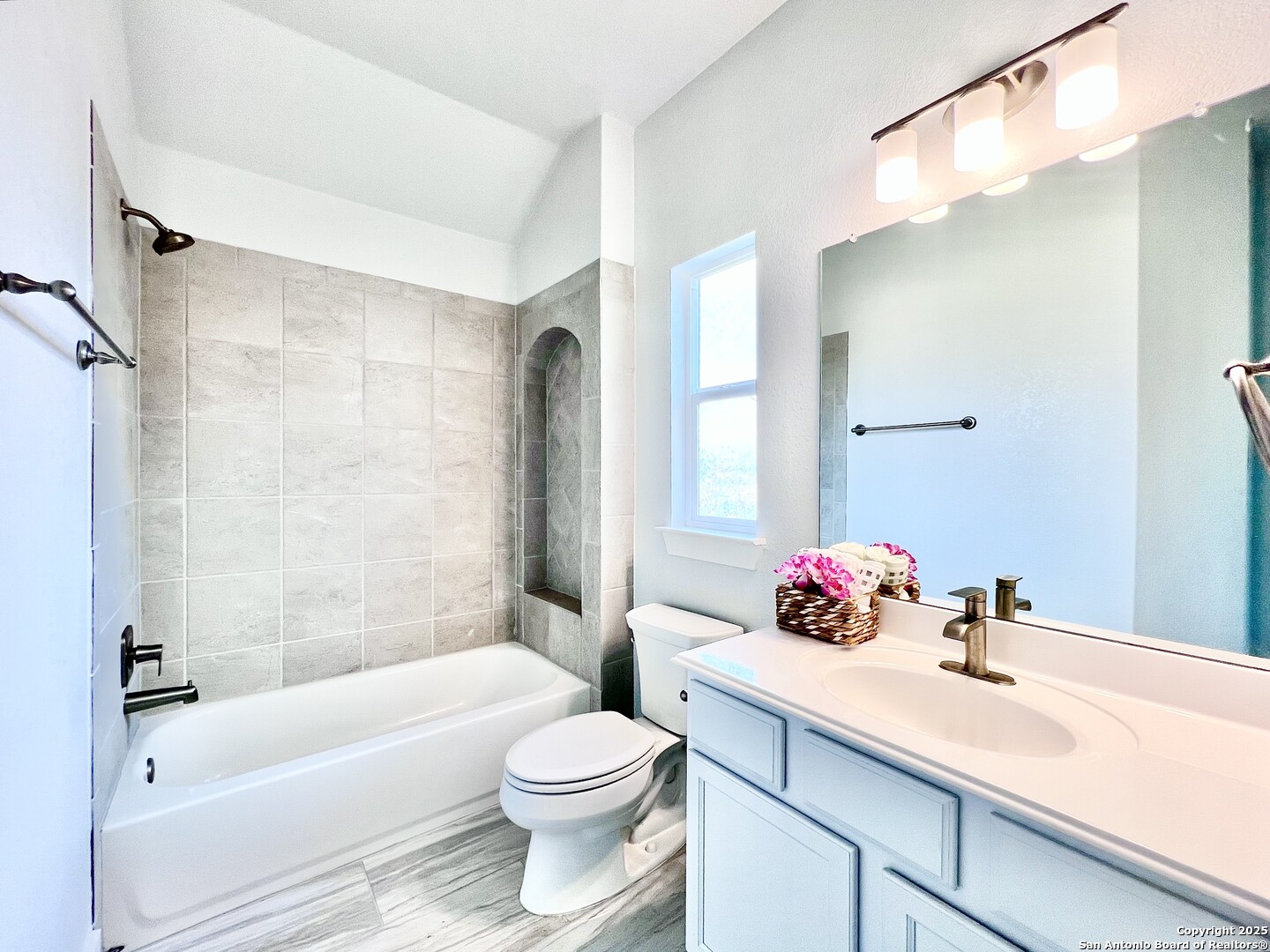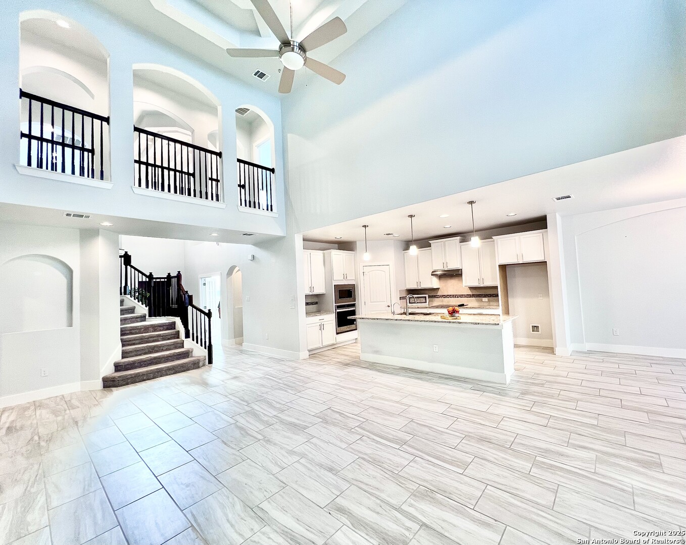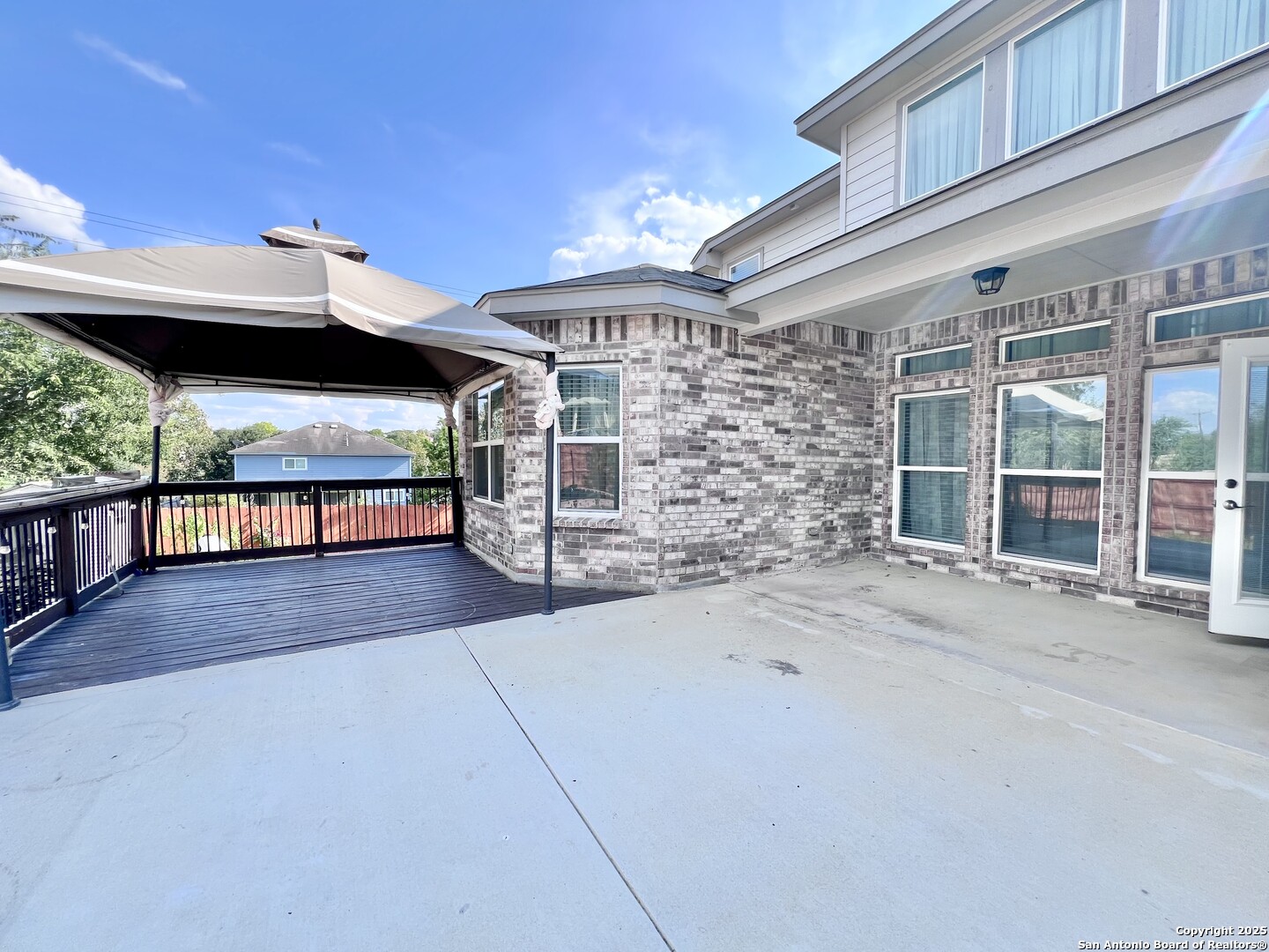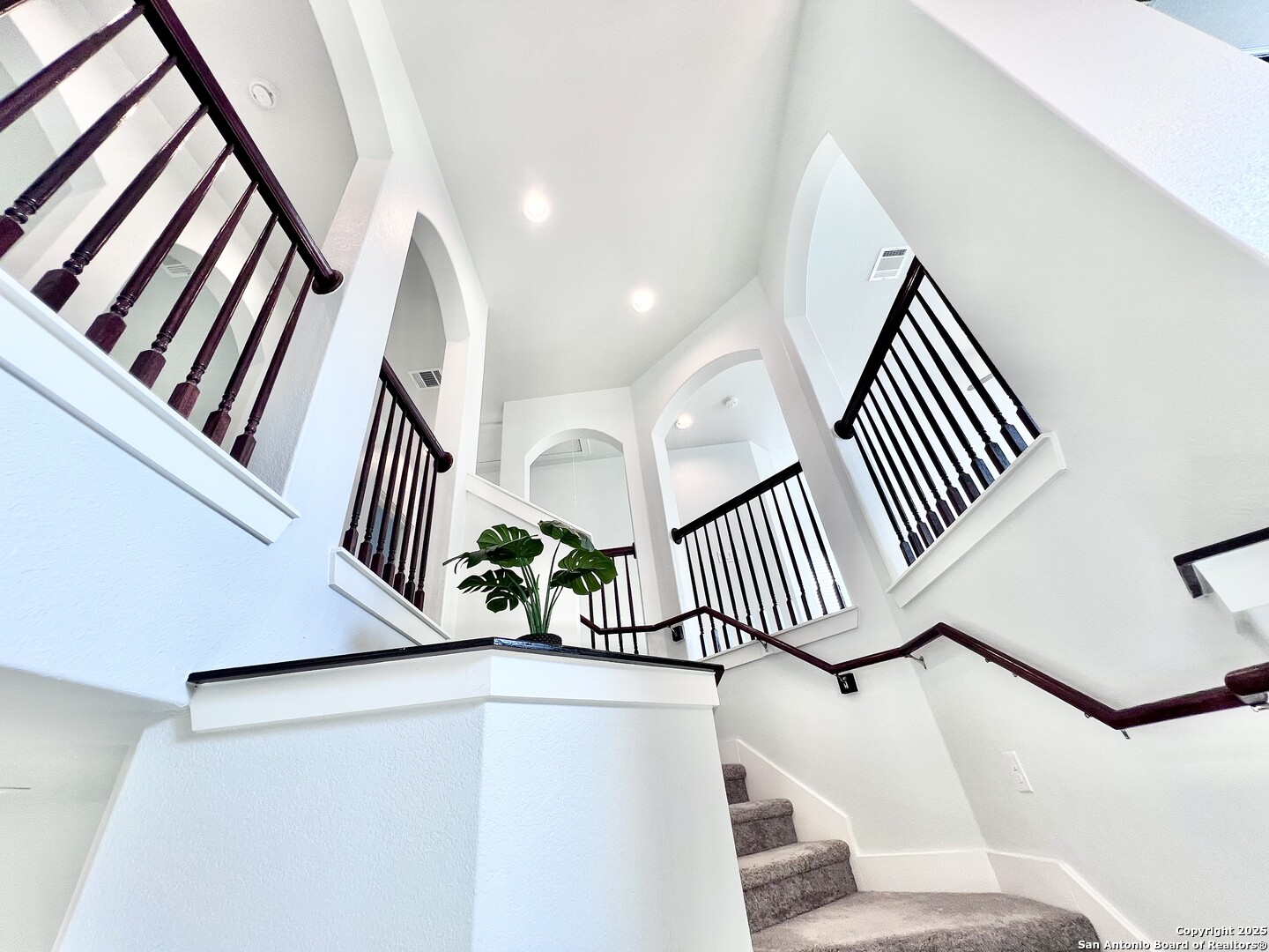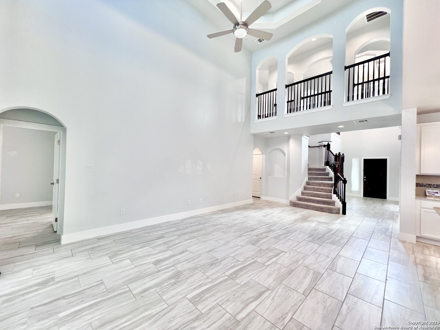 OPEN HOUSE SATURDAY 09/27 FROM 11AM - 2PM. Welcome to this exquisite 4-bedroom, 4-bathroom home with a 3-car garage, premium upgrades, and a thoughtful layout in the desirable Comanche Ridge community. Offering over 3,103 sq. ft. on one of the largest lots in the neighborhood (.246 acre), this property provides privacy, space, and comfort. Step inside to soaring ceilings, abundant natural light, and elegant architectural details including decorative niches, arches, and alcoves throughout. The open floor plan showcases a breathtaking staircase, versatile loft, and multiple living areas, perfect for both entertaining and everyday living. The chef's kitchen is a true centerpiece with granite countertops, stainless steel appliances, electric cooking, custom island, upgraded backsplash, and pendant lighting. The downstairs primary suite features bay windows, dual vanities, and a walk-in shower with detailed tilework. A secondary downstairs bedroom with direct access to a full bath works perfectly as a private guest suite or home office. Upstairs offers two additional bedrooms, two full baths, and a spacious game room. Additional highlights include dual primary bedrooms, a covered front porch, extended back patio, marble-look tile flooring, folding station in the laundry room, custom window curtains, owned water softener, tankless water heater, and irrigation system. Conveniently located near Loop 1604 and I-35 with quick access to Randolph AFB, Fort Sam Houston, shopping, dining, and more. Schedule your showing today-you will love it!