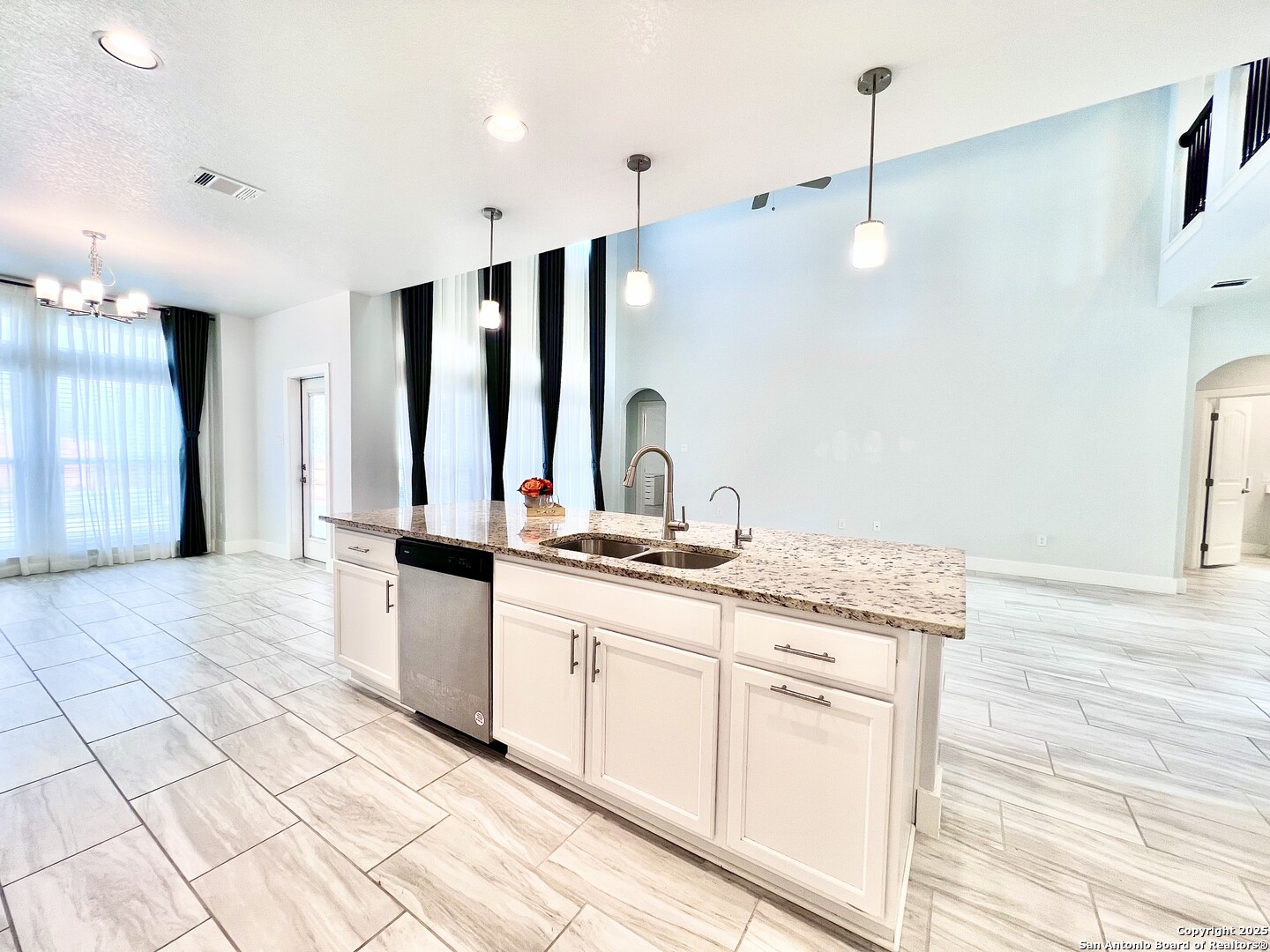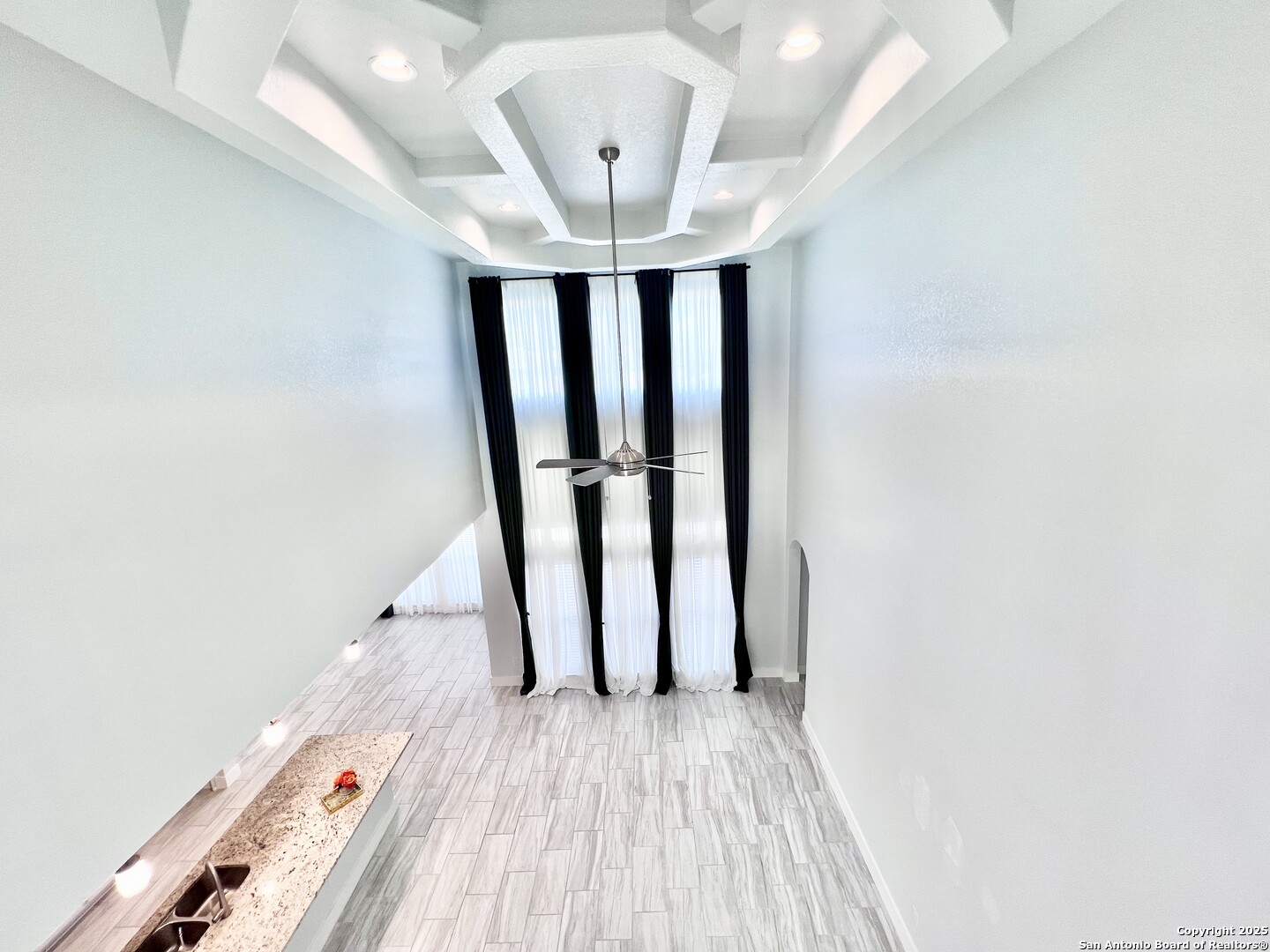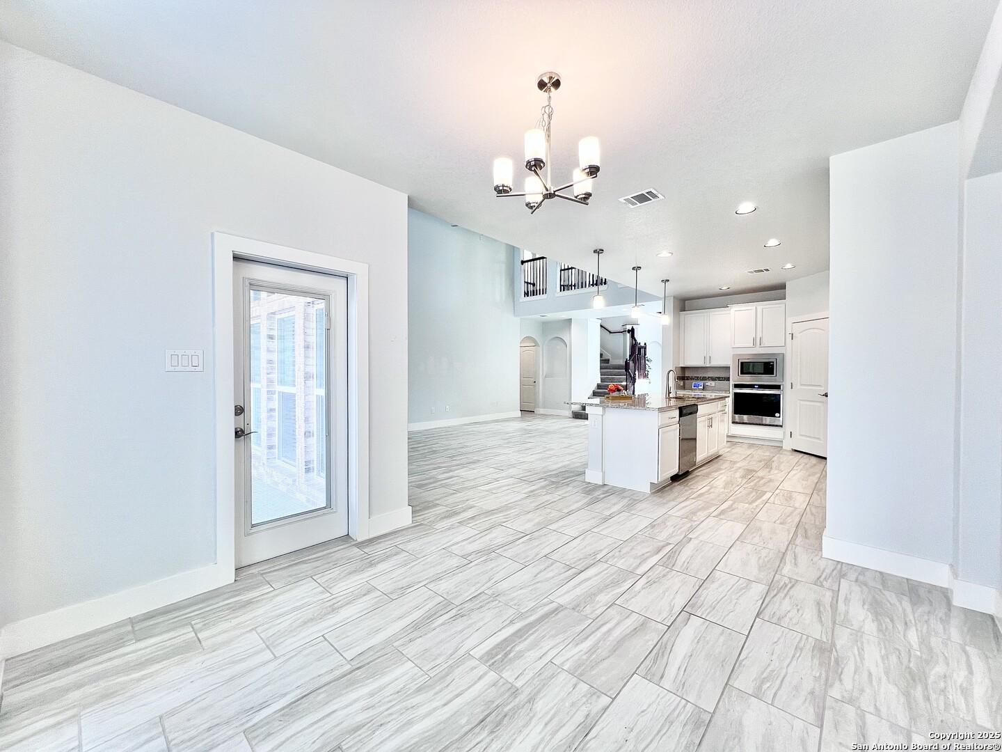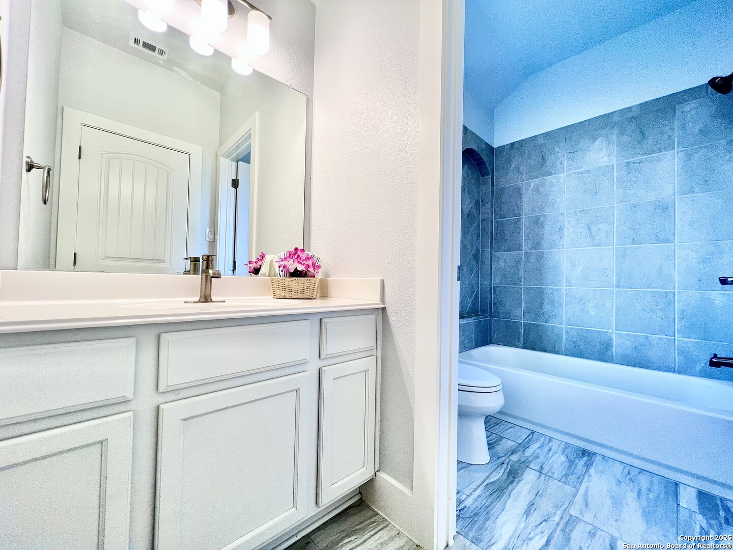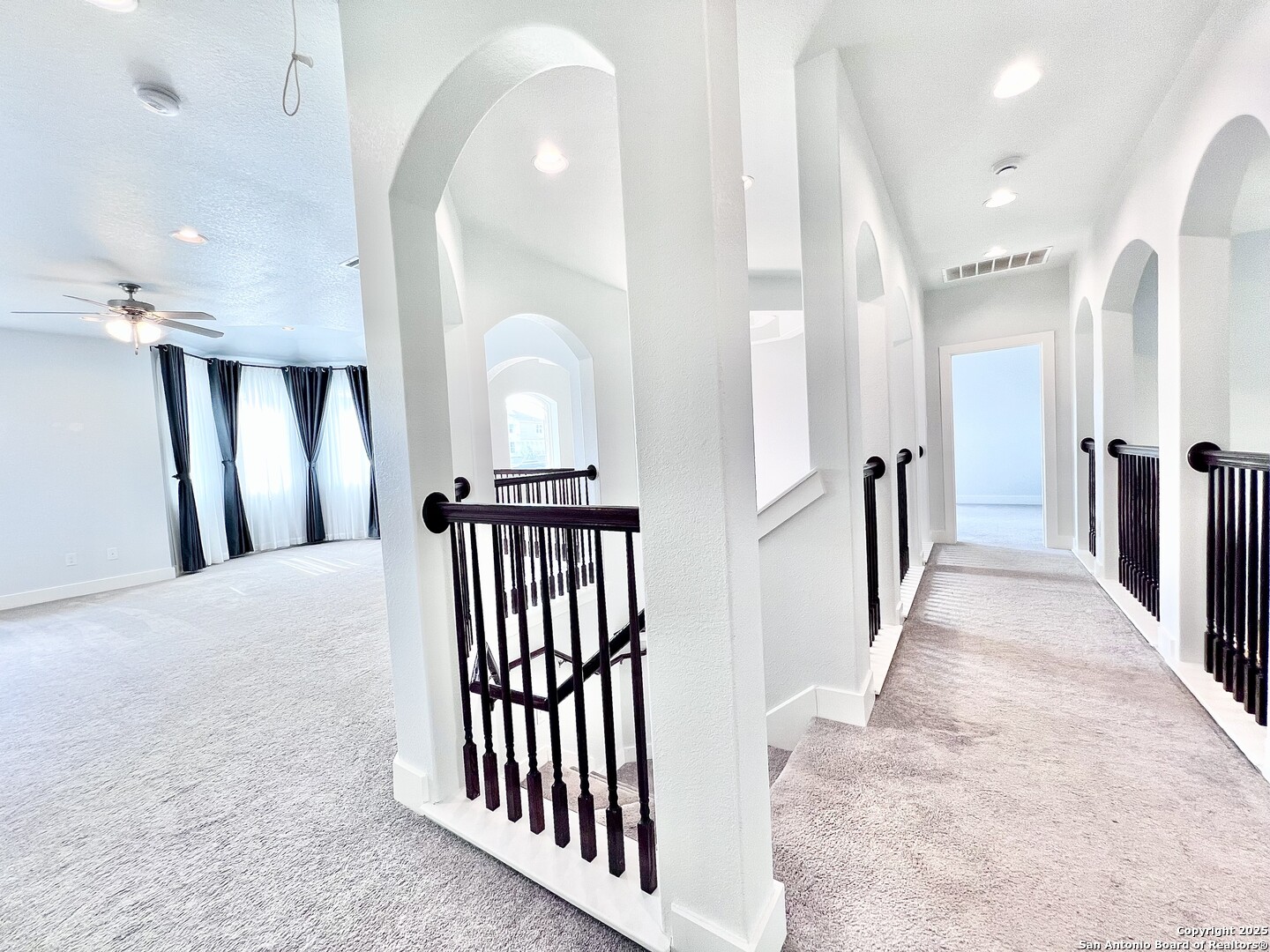 OPEN HOUSE SATURDAY 09/27 FROM 11AM - 2PM. Welcome to this exquisite 4-bedroom, 4-bathroom home with a 3-car garage, premium upgrades, and a thoughtful layout in the desirable Comanche Ridge community. Offering over 3,103 sq. ft. on one of the largest lots in the neighborhood (.246 acre), this property provides privacy, space, and comfort. Step inside to soaring ceilings, abundant natural light, and elegant architectural details including decorative niches, arches, and alcoves throughout. The open floor plan showcases a breathtaking staircase, versatile loft, and multiple living areas, perfect for both entertaining and everyday living. The chef's kitchen is a true centerpiece with granite countertops, stainless steel appliances, electric cooking, custom island, upgraded backsplash, and pendant lighting. The downstairs primary suite features bay windows, dual vanities, and a walk-in shower with detailed tilework. A secondary downstairs bedroom with direct access to a full bath works perfectly as a private guest suite or home office. Upstairs offers two additional bedrooms, two full baths, and a spacious game room. Additional highlights include dual primary bedrooms, a covered front porch, extended back patio, marble-look tile flooring, folding station in the laundry room, custom window curtains, owned water softener, tankless water heater, and irrigation system. Conveniently located near Loop 1604 and I-35 with quick access to Randolph AFB, Fort Sam Houston, shopping, dining, and more. Schedule your showing today-you will love it!