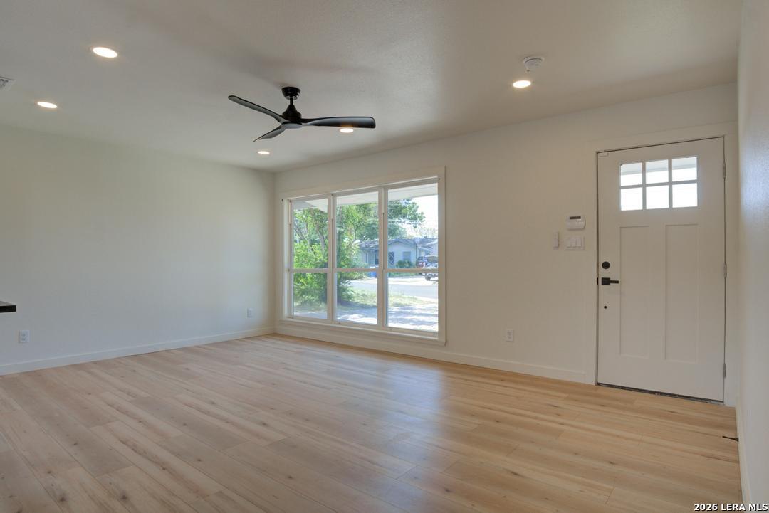 ****If you've been waiting for something truly special - this is it.**** Completely taken down to the studs and rebuilt with precision and elevated modern design, this 3-bedroom, 2-bath single-story home offers a rare blend of craftsmanship, style, and long-term peace of mind within 1,114 beautifully designed square feet. The moment you enter, you'll feel the impact. Warm Honeysuckle flooring stretches seamlessly throughout the open living space, complemented by designer lighting and full smart-home functionality, including smart lighting inside and out. Every detail was intentionally selected to create an atmosphere that feels both sophisticated and welcoming. The kitchen commands attention. A striking leather-finish granite island with an extended breakfast bar anchors the space, offering generous prep and entertaining areas. Custom backsplash, soft-close cabinetry with modern industrial hardware, a vent hood, and a 4-burner gas range with built-in griddle complete this stunning centerpiece. It's a space designed for connection, conversation, and memorable gatherings. Beyond the aesthetics, the value is undeniable. Every major system has been replaced - electrical, plumbing, sewer lines, HVAC system and ductwork, windows, siding, insulation, drywall, paint, cabinetry, appliances, and alarm system - delivering true turnkey confidence. The open living and dining areas flow effortlessly to a spacious backyard, creating the perfect extension for entertaining or relaxing evenings at home. Homes renovated to this standard do not come available often - especially at this level of finish and modernization. ***This is the opportunity buyers watch for and move quickly on.*** Schedule your private showing today!