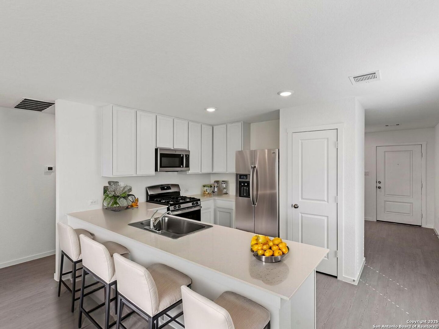 Move in Special $200 off first months rent! Be the first resident to live in this this brand-new built home! Stunning 3-Bedroom in New Braunfels Parkside community. No back yard neighbors. One story home. Featuring an elongated entry way, w/ spacious open floorplan. Modern kitchen with updated appliance, quartz countertops and kitchen peninsula with bar seating. recessed lighting throughout. Private primary suite with full bath and large closet. Tankless water heater. Located in the sought-after Parkside community: luxe amenities including access to resort style pool, kids park and play area, clubhouse. Easy access to major roads and highways, restaurants, shopping. Blinds, refrigerator, garage door opener and Sod to be installed by May 17th! Come take a look! Home eligible for $0 security deposit program. Tenants have to be approved with Qira (ask for more info)