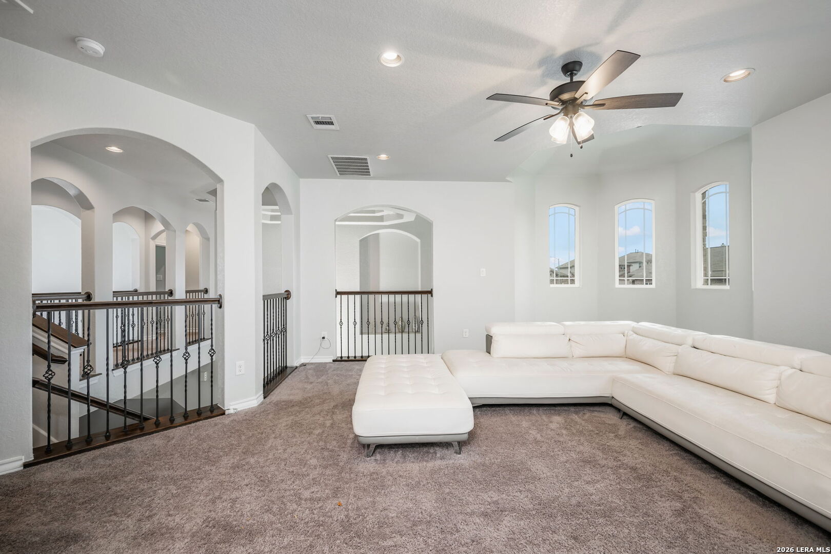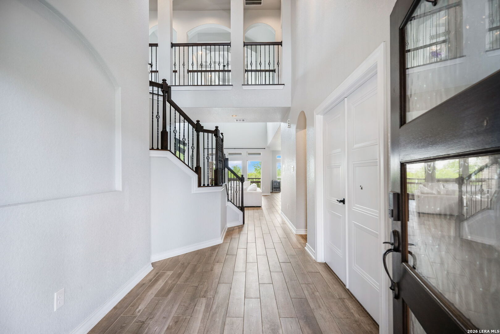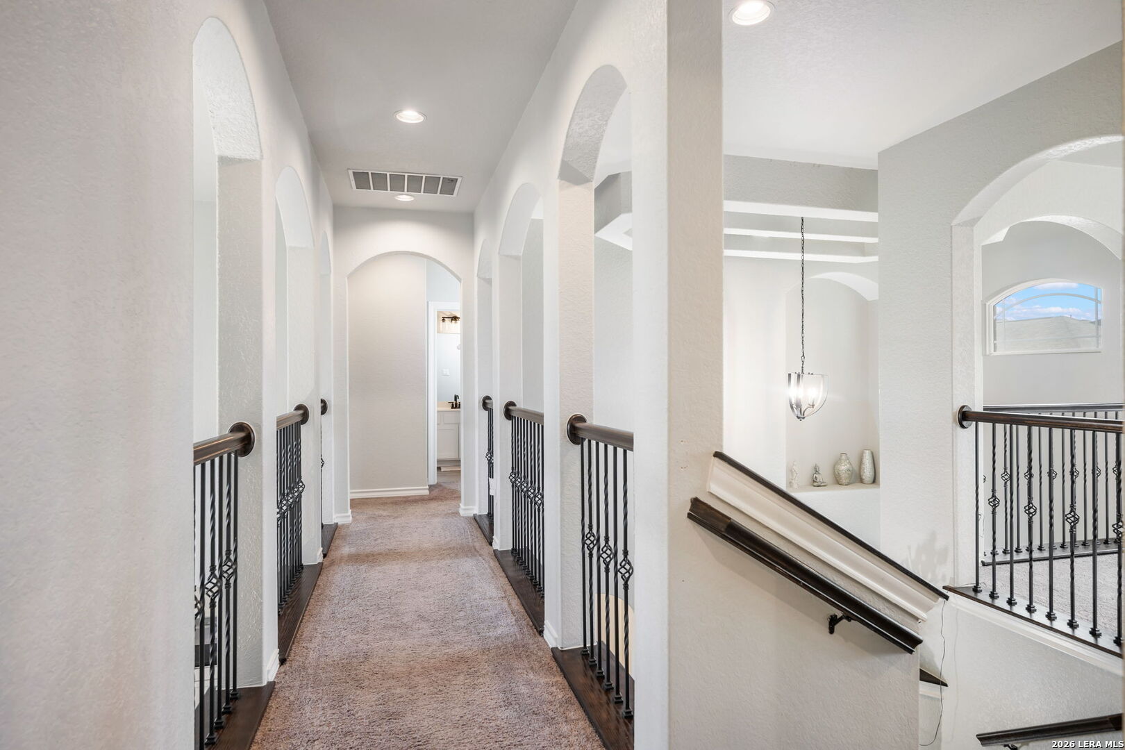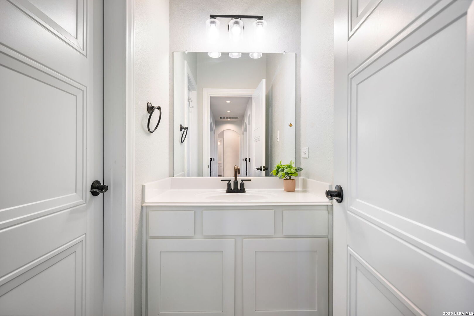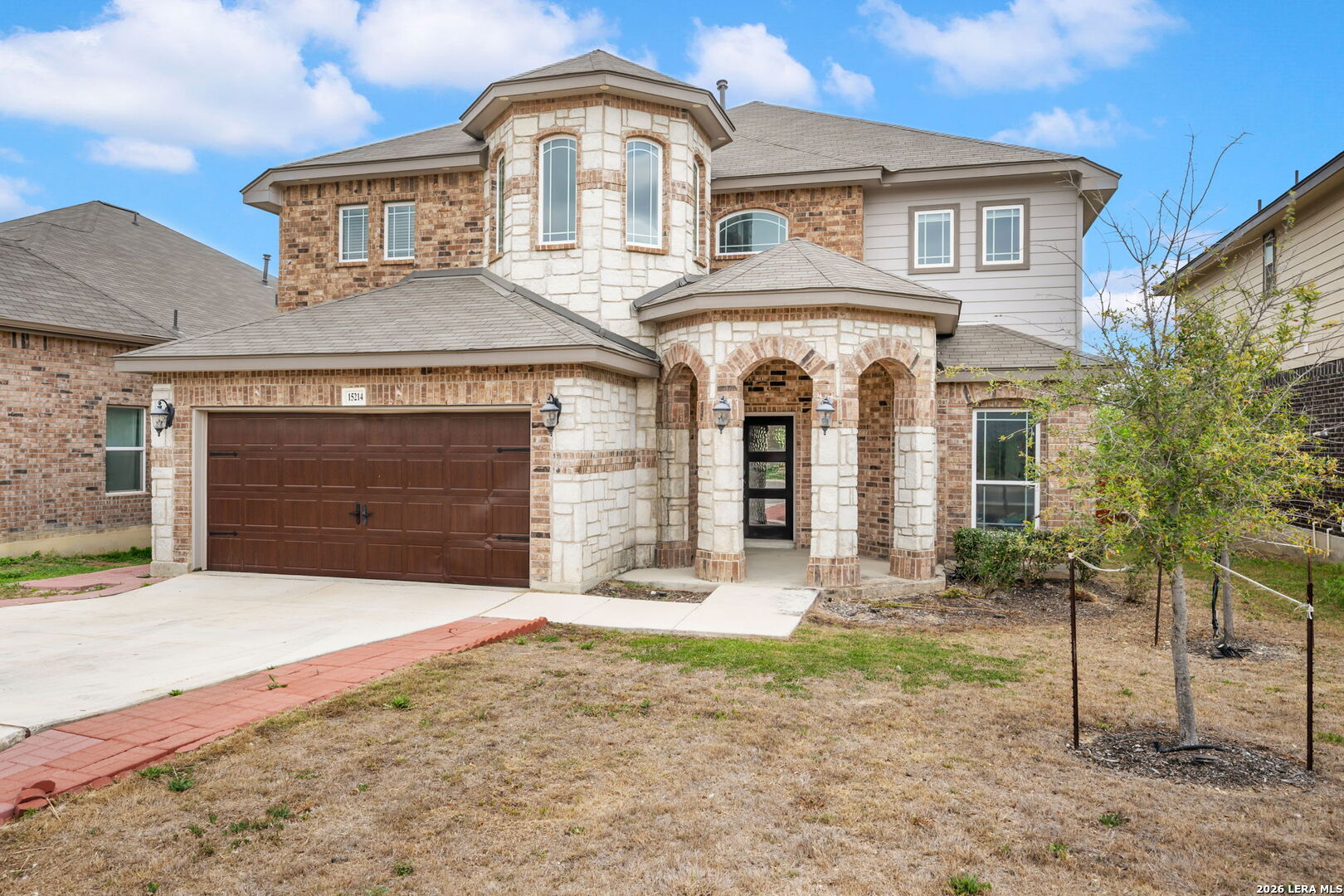 This beautiful home sits on a green/belt lot. Open floor plan with tons of natural light, atrium ceiling, tile flooring in the main areas, in the main floor is the primary bed/rm with bay window facing the landscaping view, & a secondary bed/rm. can be utilized as a guest/bed/rm or an office. A showstopper kitchen great for family gatherings, decorative niches and arches, second floor: 3 add'tl bed/rms & bath/rms and a second living area, water softener system and tankless water heater, 2 A/C units. Great location with easy access to 1604 & I-35. NOTE: washer & dryer will convey. Thank you for showing.