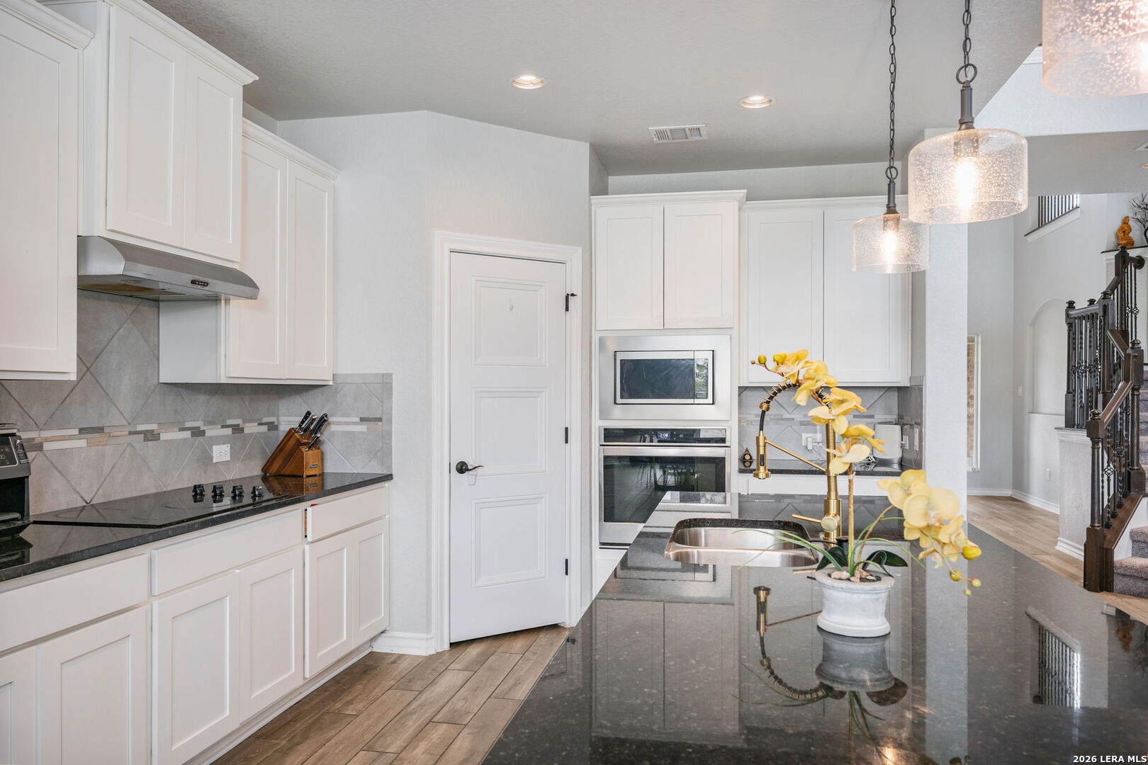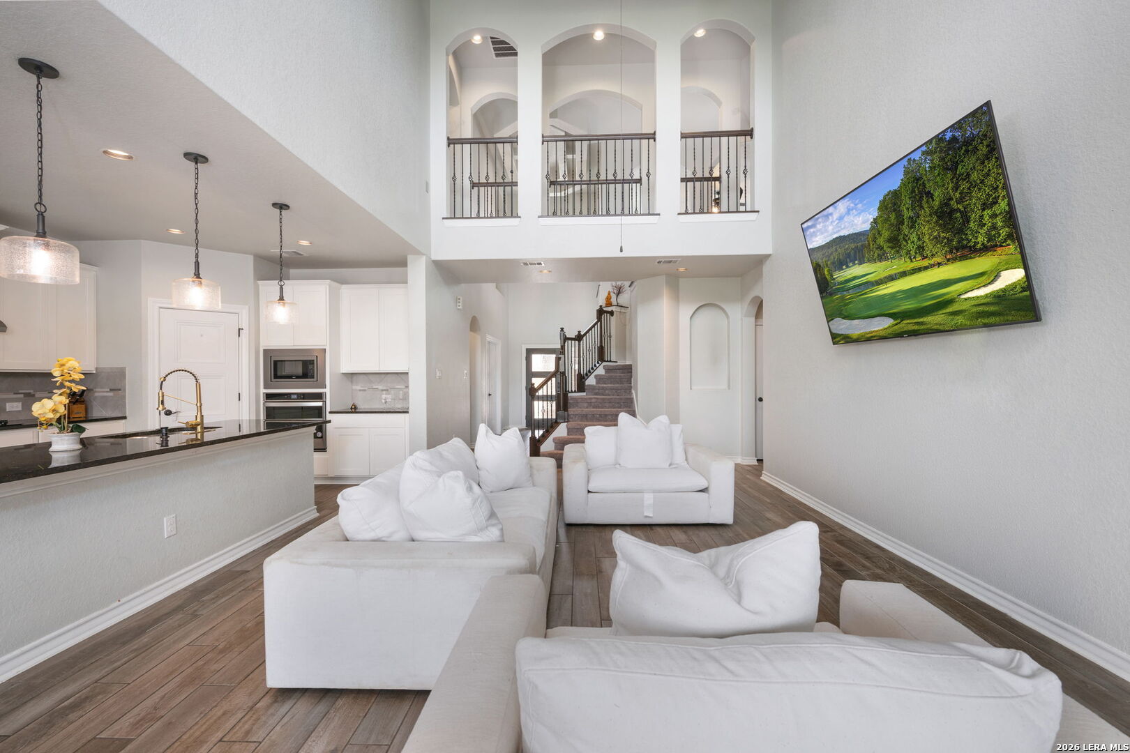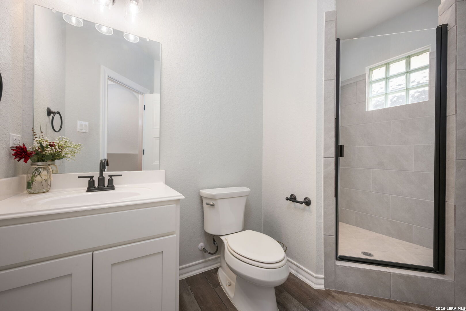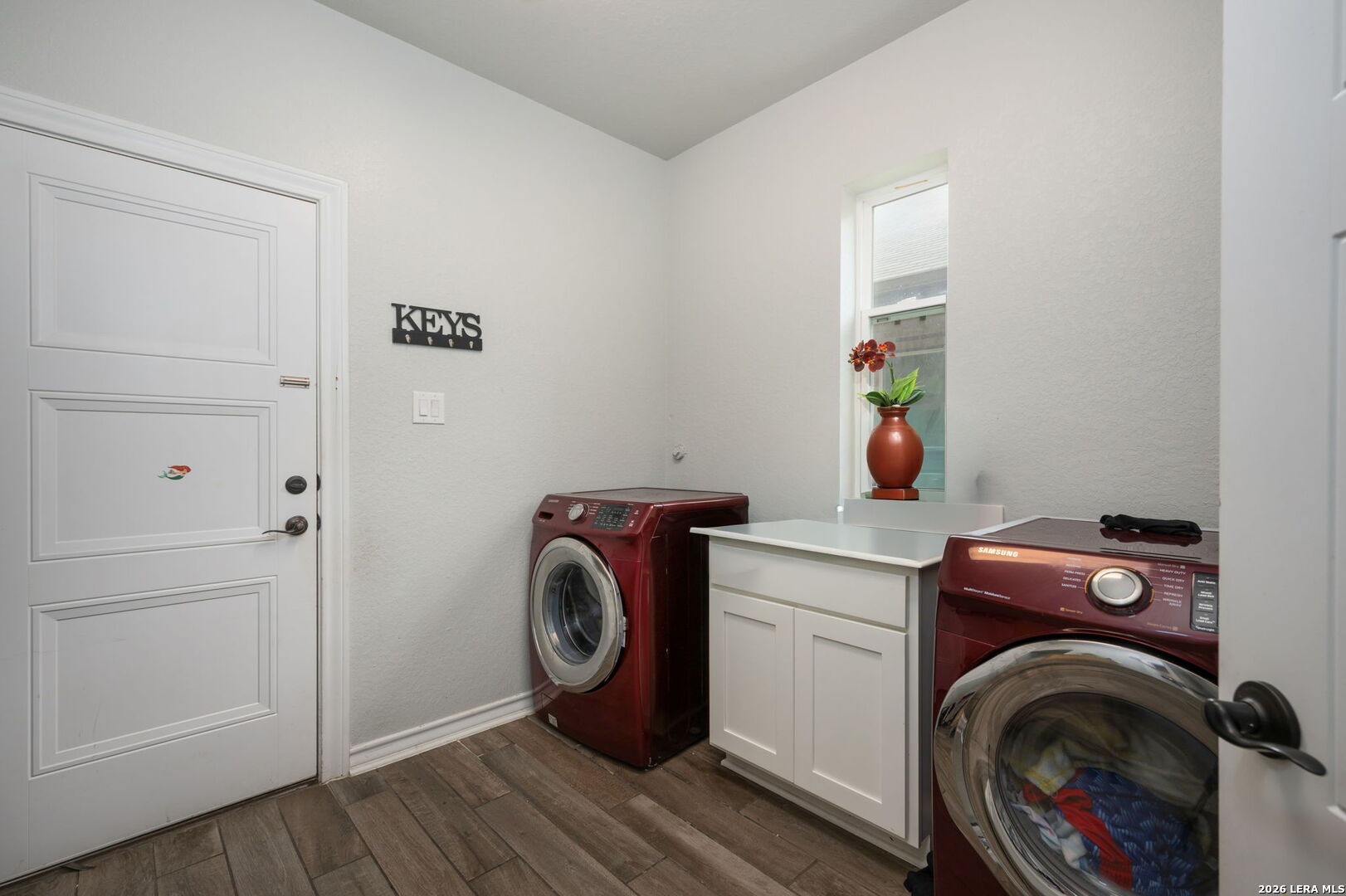 This beautiful home sits on a green/belt lot. Open floor plan with tons of natural light, atrium ceiling, tile flooring in the main areas, in the main floor is the primary bed/rm with bay window facing the landscaping view, & a secondary bed/rm. can be utilized as a guest/bed/rm or an office. A showstopper kitchen great for family gatherings, decorative niches and arches, second floor: 3 add'tl bed/rms & bath/rms and a second living area, water softener system and tankless water heater, 2 A/C units. Great location with easy access to 1604 & I-35. NOTE: washer & dryer will convey. Thank you for showing.