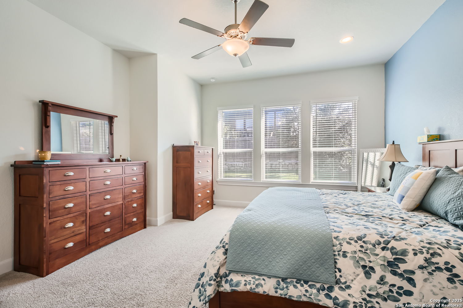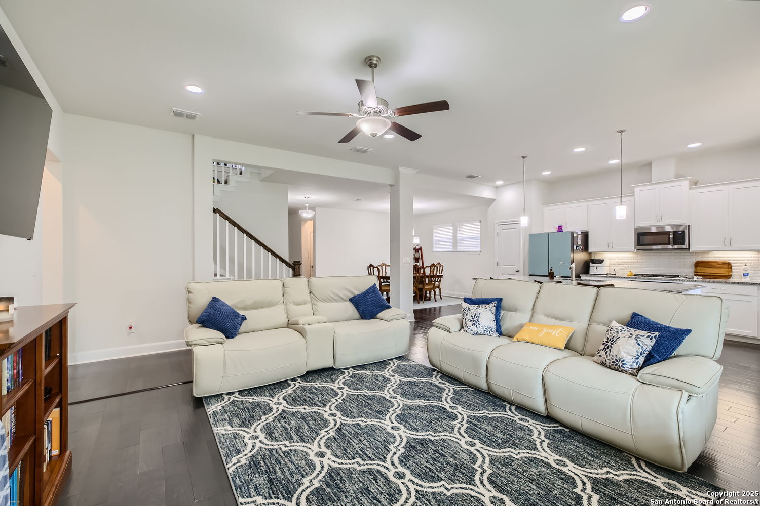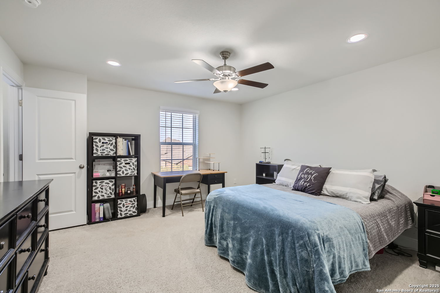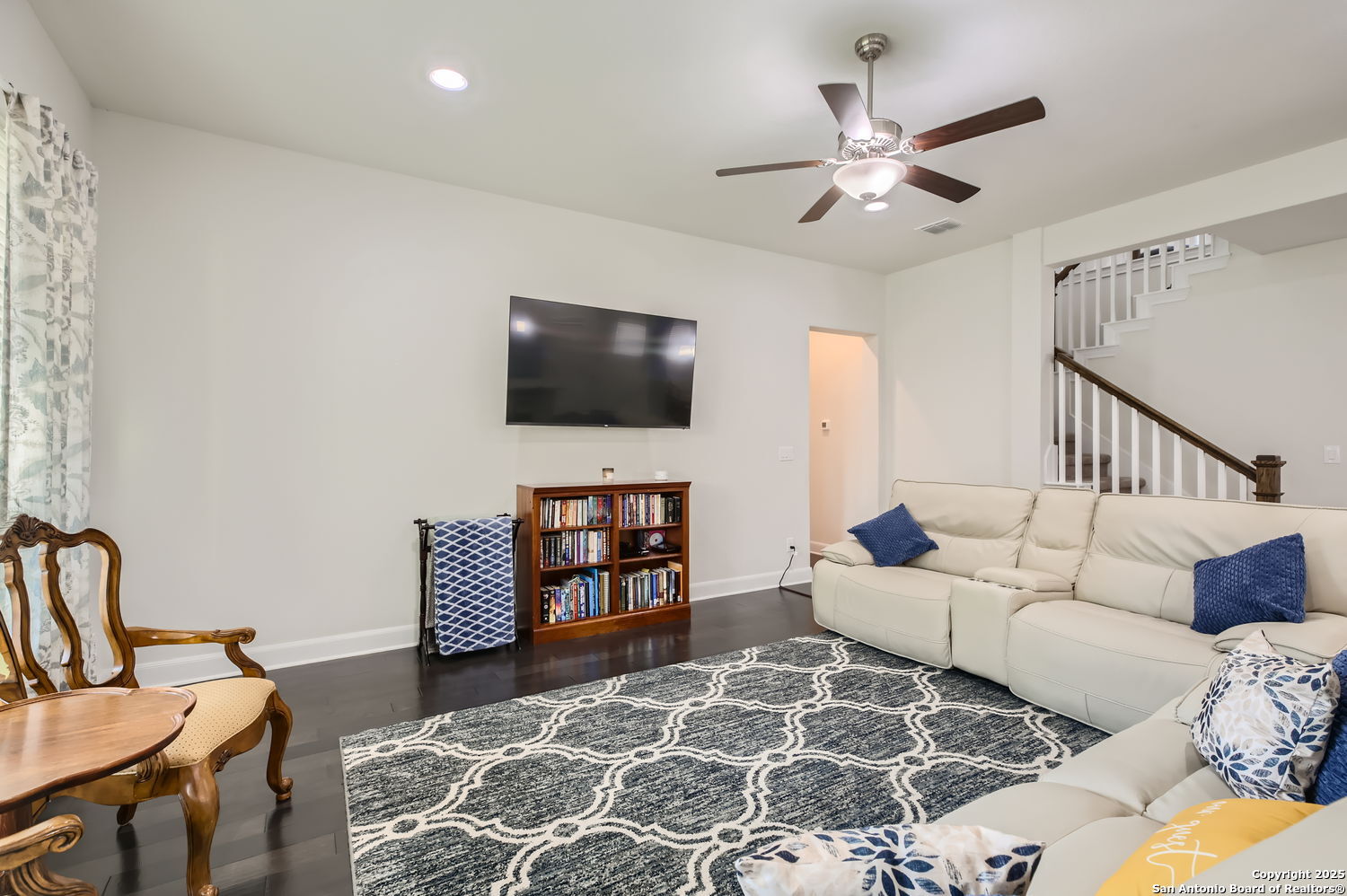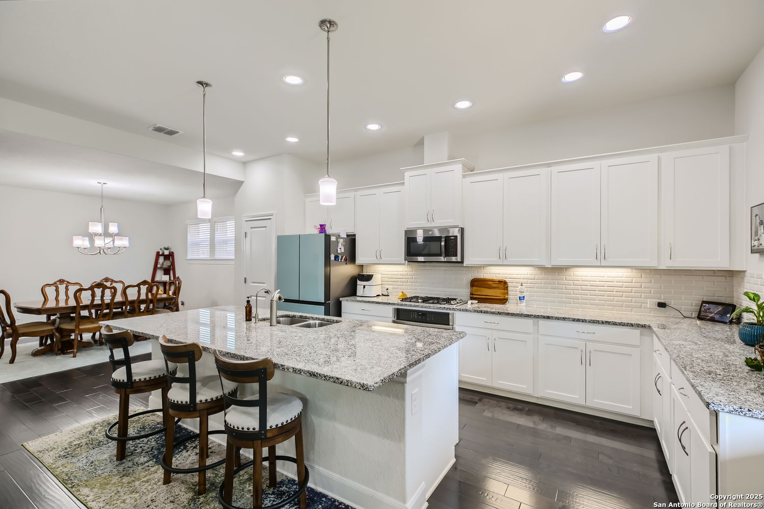 This four bedroom home was thoughtfully designed for functionality, providing a dedicated space for every need. Features include a charming covered front porch, beautiful rock flower beds, and solar panels for energy savings. Inside, you'll find an office with elegant glass French doors that could serve as a fifth bedroom, along with hardwood flooring in the main living areas. The home offers ample storage, a dedicated laundry room, and a three-car garage with built-in storage and a convenient drop zone. The kitchen showcases an island with a breakfast bar, plenty of cabinets and counter space, and under-cabinet lighting. There's also a separate dining room for entertaining. Enjoy the spacious 30x9 covered back patio with wood slat privacy walls, an oversized primary bedroom with a walk-in shower, and an upstairs living area that can be used as a game room. All bedrooms feature walk-in closets, and every room is generously sized. Plus, the loan is assumable.