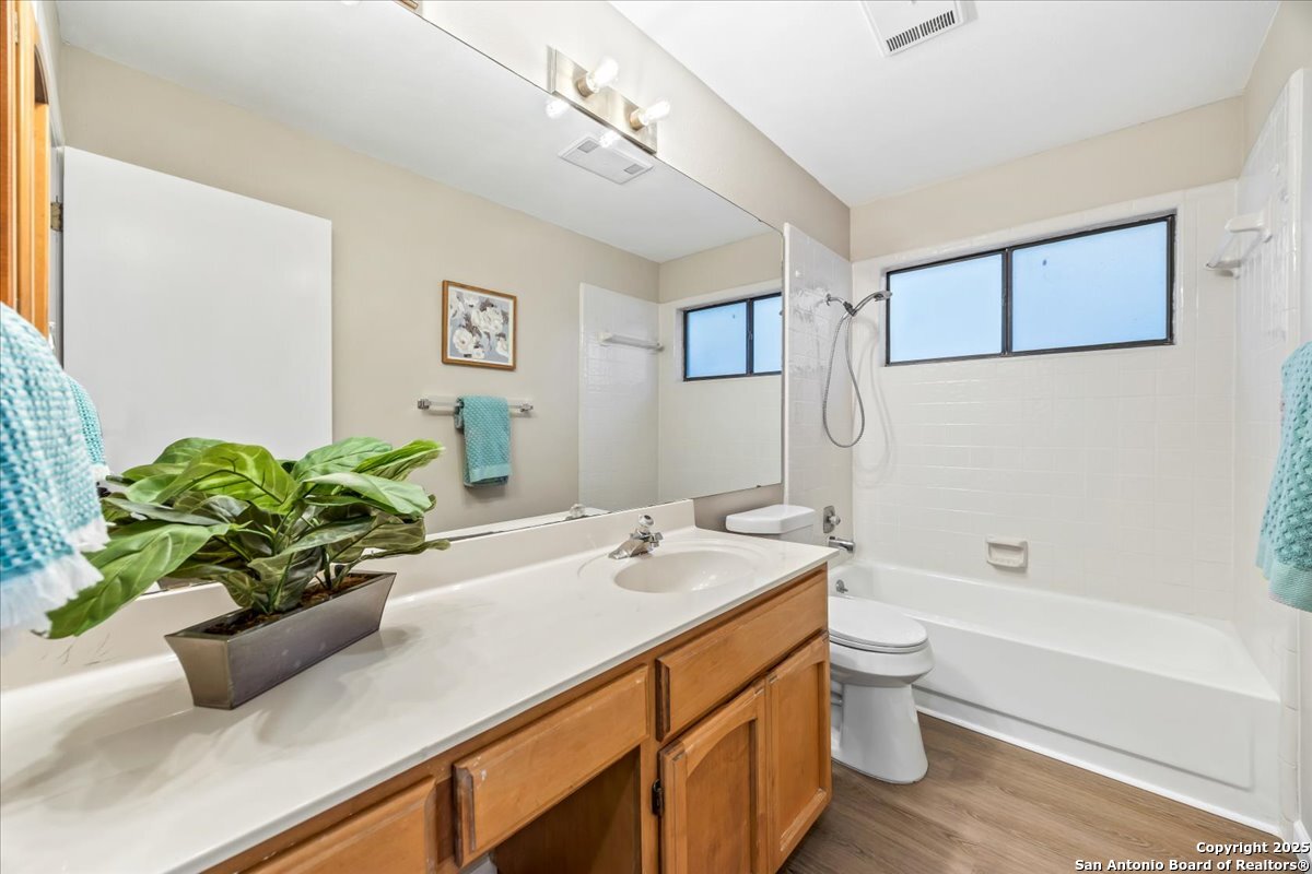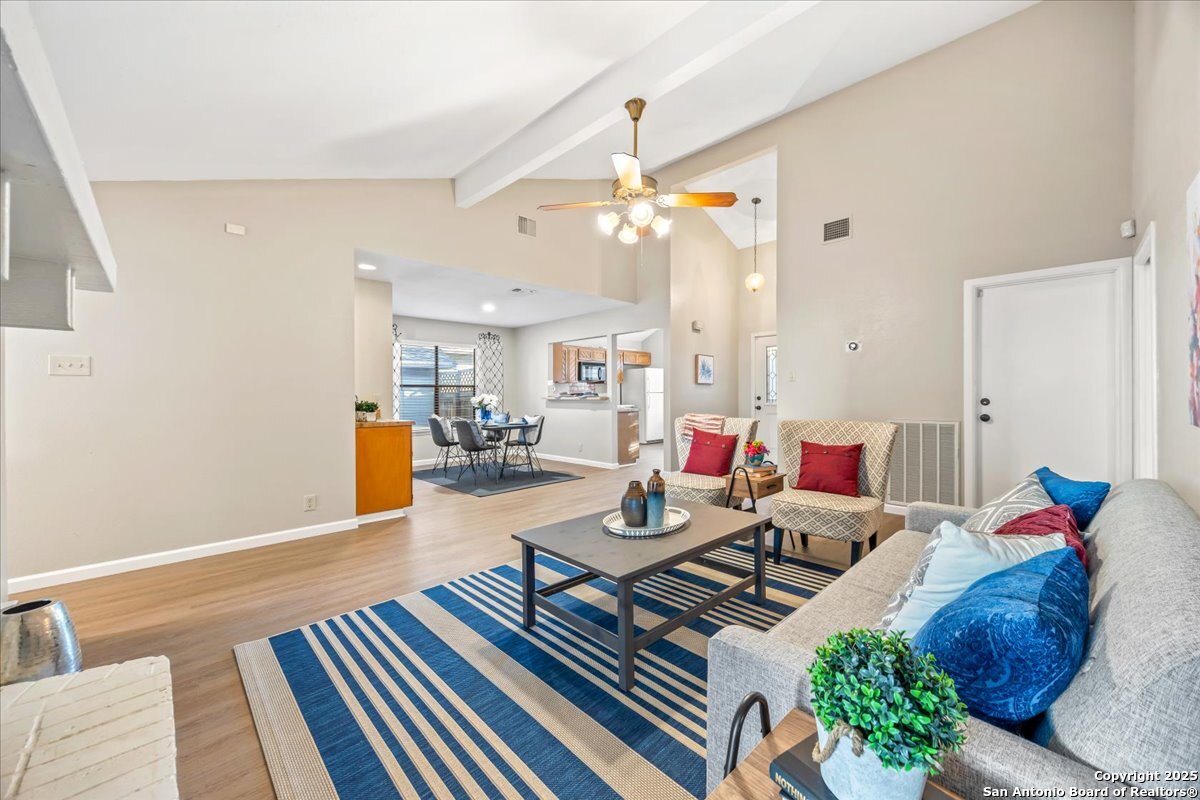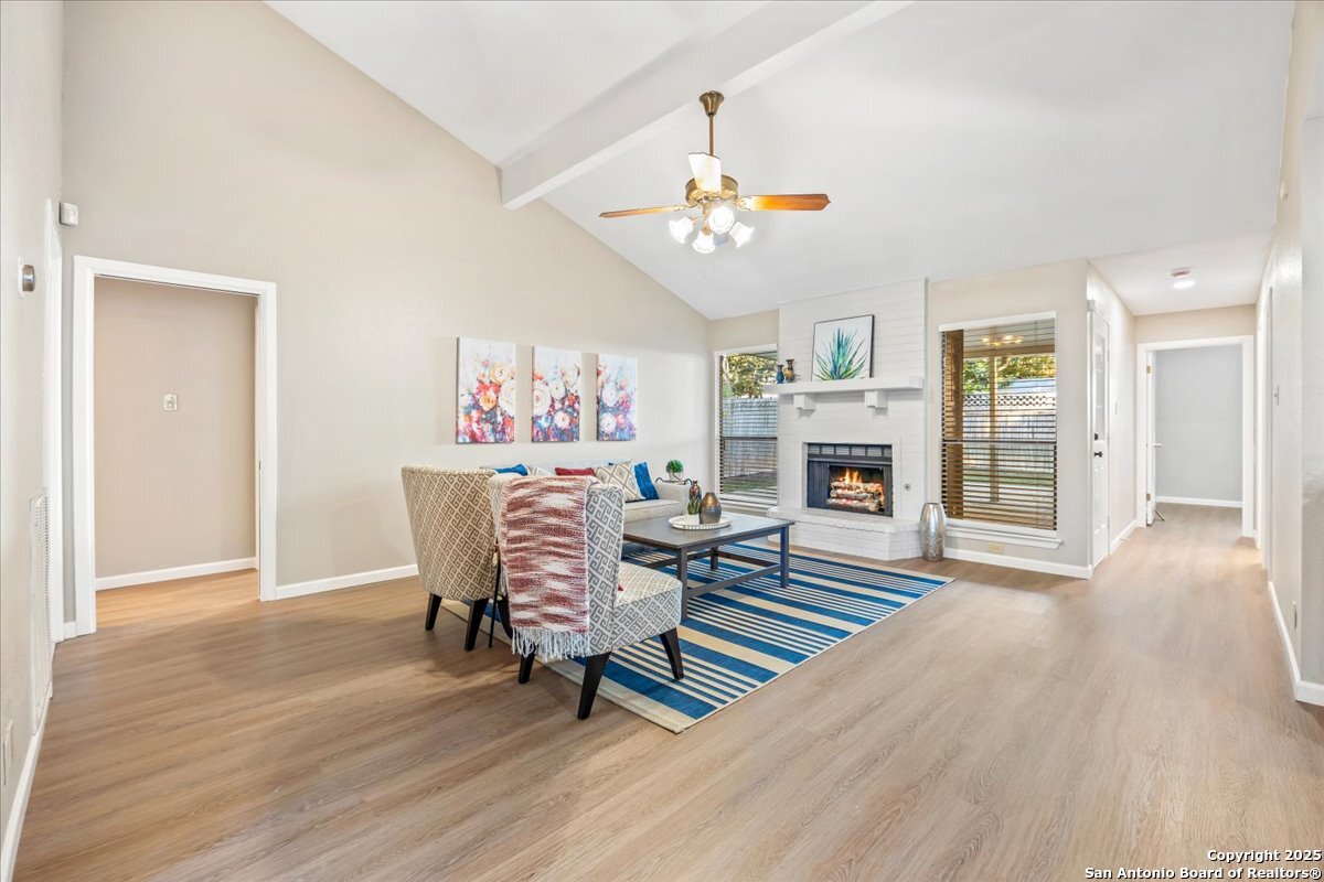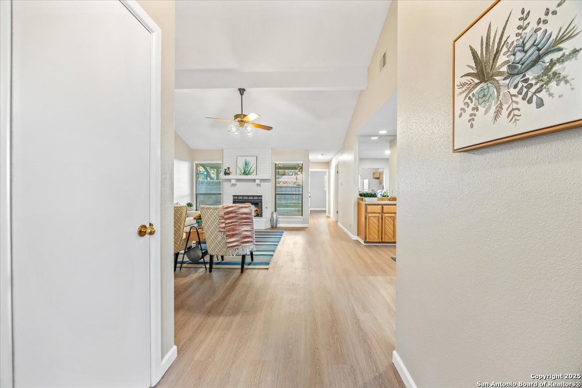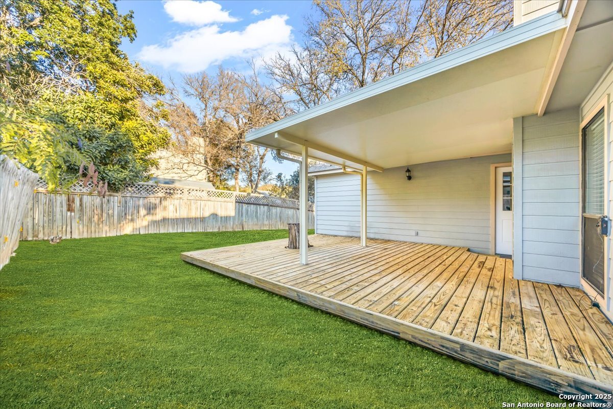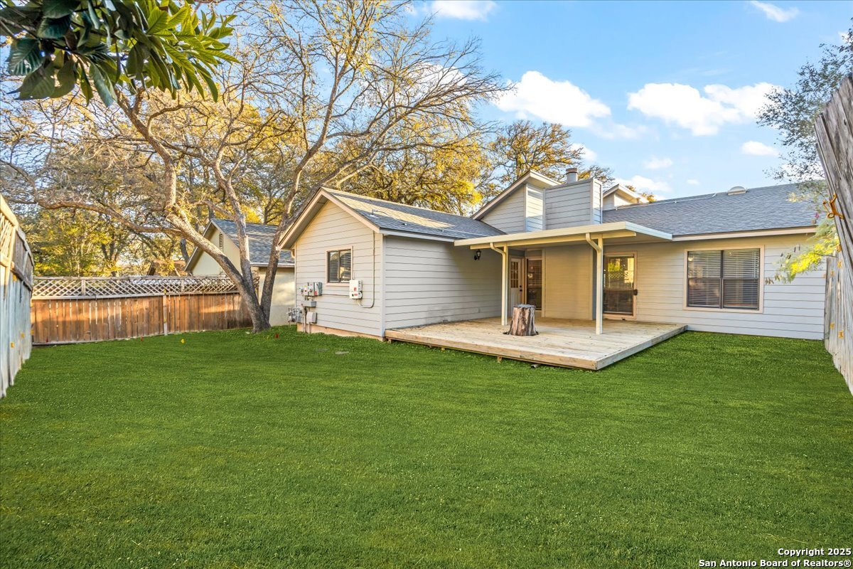 Looking for a move-in ready one-story home near McAllister Park? This cozy and updated property sits in the peaceful, established Hollow Oaks neighborhood and offers easy living close to schools, shopping, and major commute routes. Fresh paint and new flooring run throughout the home, giving it a clean and welcoming feel. The open layout offers comfortable spaces for relaxing or hosting friends, and the large windows let in bright morning light. The home also includes a refrigerator and washer/dryer, making your move even easier. Step outside to a quiet backyard with a patio deck, a covered patio area, and mature shade trees-perfect for weekend grilling or relaxing outdoors. The home also features solar panels, helping reduce energy costs. With no required HOA, you get more freedom and flexibility. This one-story home features 3 bedrooms, 2 baths, and 1,374 sq ft. Built in 1982 and thoughtfully updated, it provides the charm of an established area with the convenience of modern touches. Located just north of McAllister Park, you're minutes from outdoor trails, local restaurants, and quick access to Hwy 281 and Loop 1604.