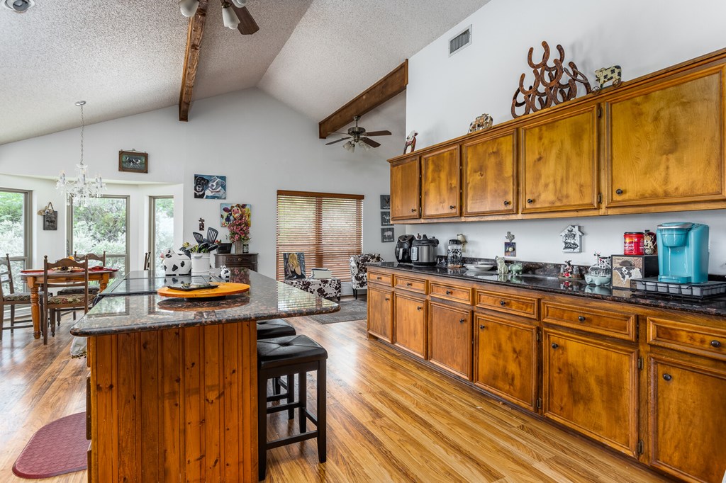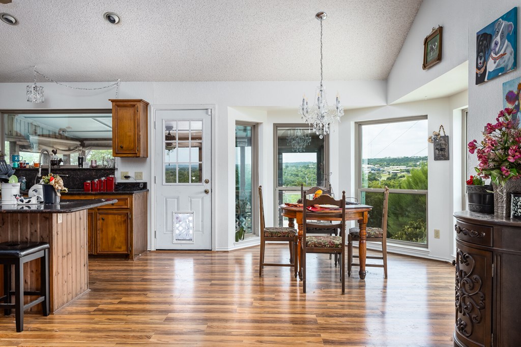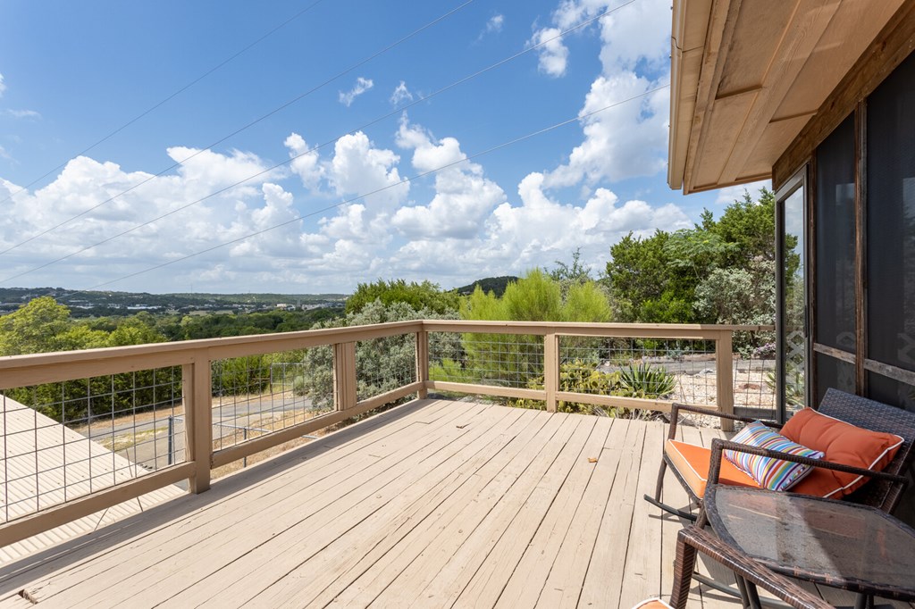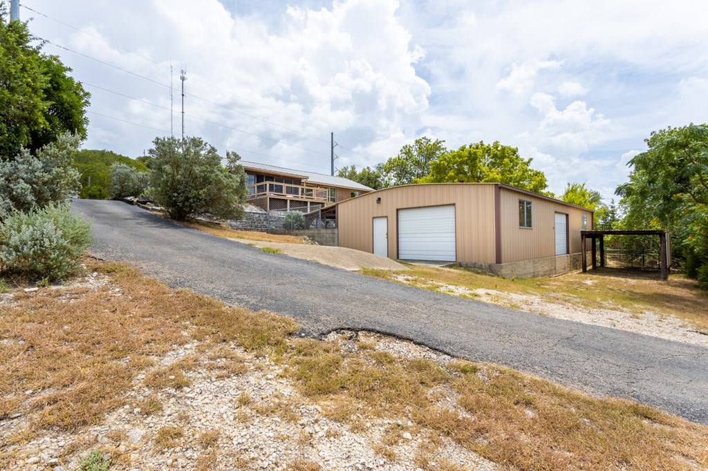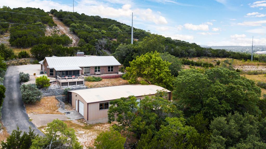 INCREDIBLE VIEWS! Secluded home at the end of Fifth St. on a quiet cul de sac situated on .74 of an acre. Beautifully updated 3/2 boast high ceilings, open floor plan, wood burning fireplace, granite countertops and large windows displaying a view of the Hill Country. Heated and cooled 1600 square foot workshop, 22x15 port for an RV and plenty of room for parking. Screened porch off the back of house to enjoy the sunsets. Check out this one of a kind Hill Country homestead!