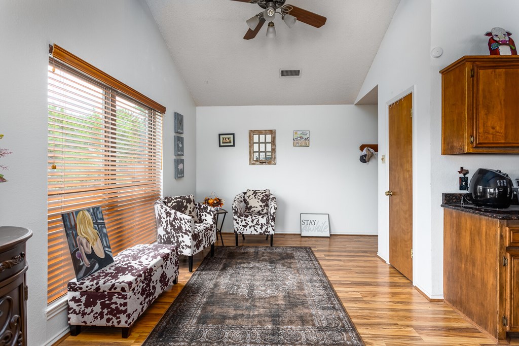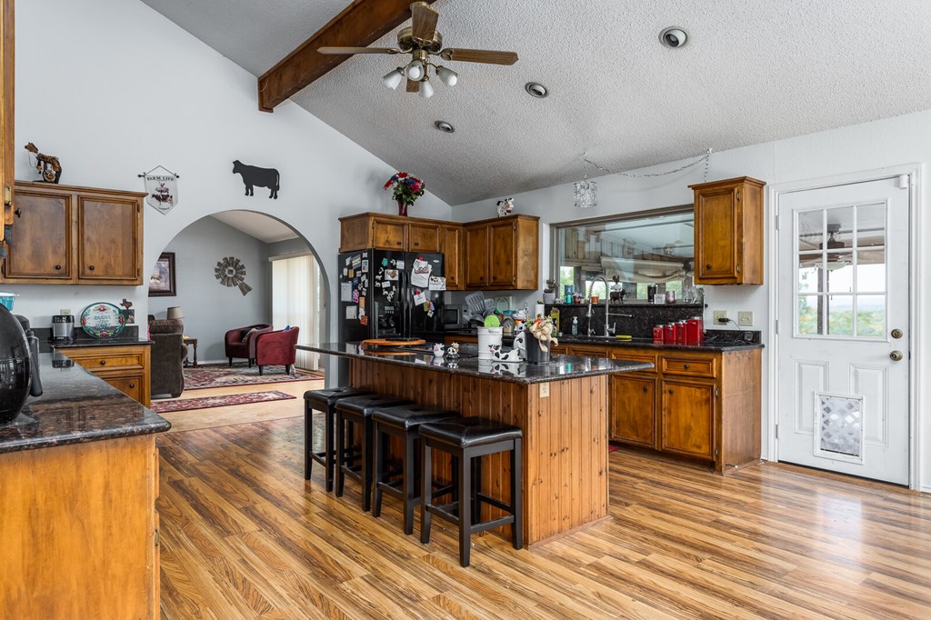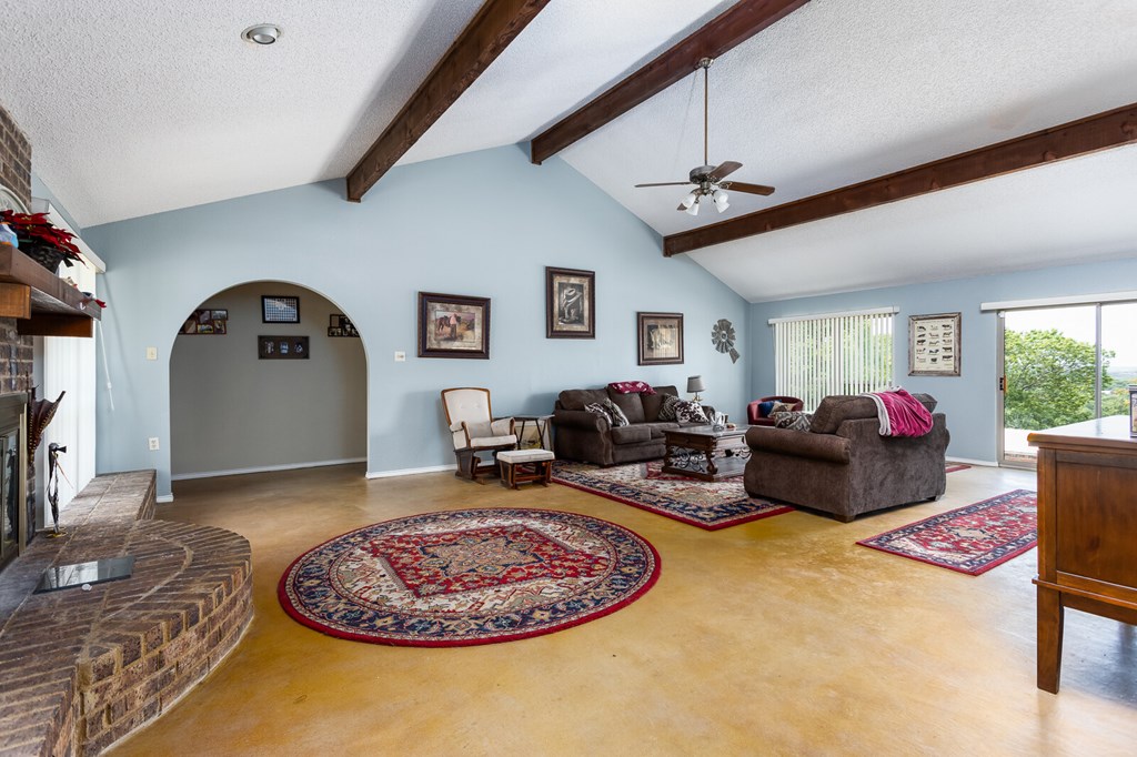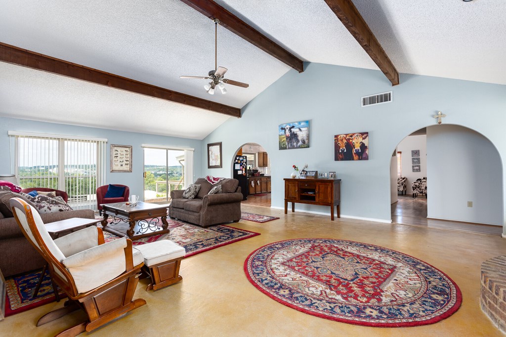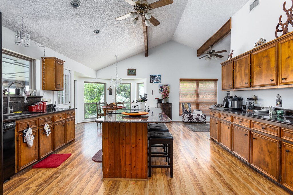INCREDIBLE VIEWS! Secluded home at the end of Fifth St. on a quiet cul de sac situated on .74 of an acre. Beautifully updated 3/2 boast high ceilings, open floor plan, wood burning fireplace, granite countertops and large windows displaying a view of the Hill Country. Heated and cooled 1600 square foot workshop, 22x15 port for an RV and plenty of room for parking. Screened porch off the back of house to enjoy the sunsets. Check out this one of a kind Hill Country homestead!