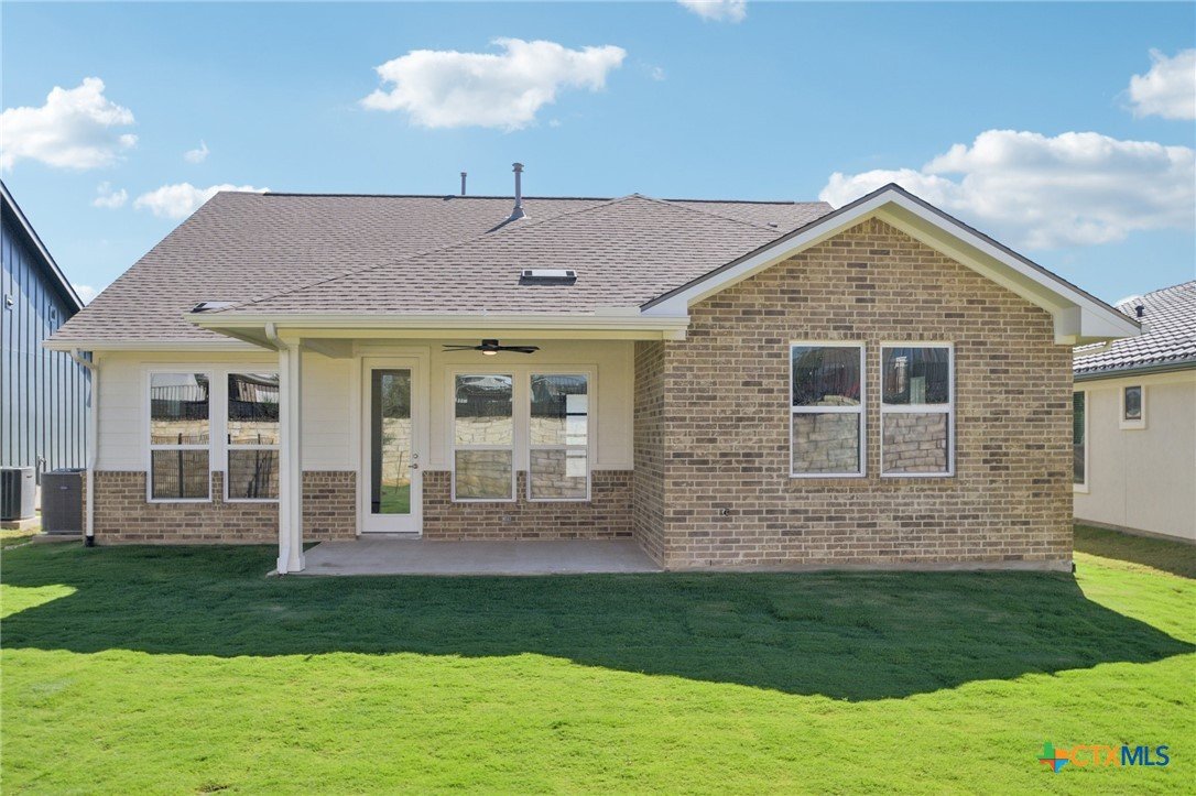 Rhodes plan with upgraded kitchen, quartz countertops, optional tray ceiling in foyer, full gutters, enlarged covered patio, upgraded tile flooring throughout