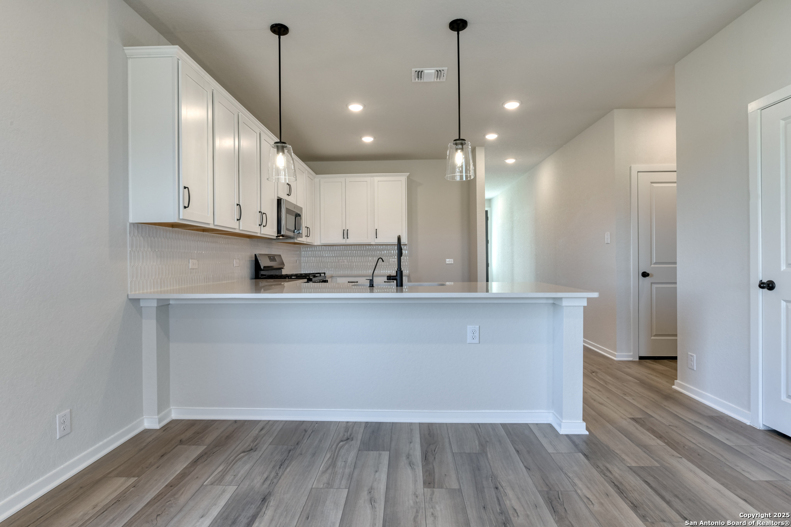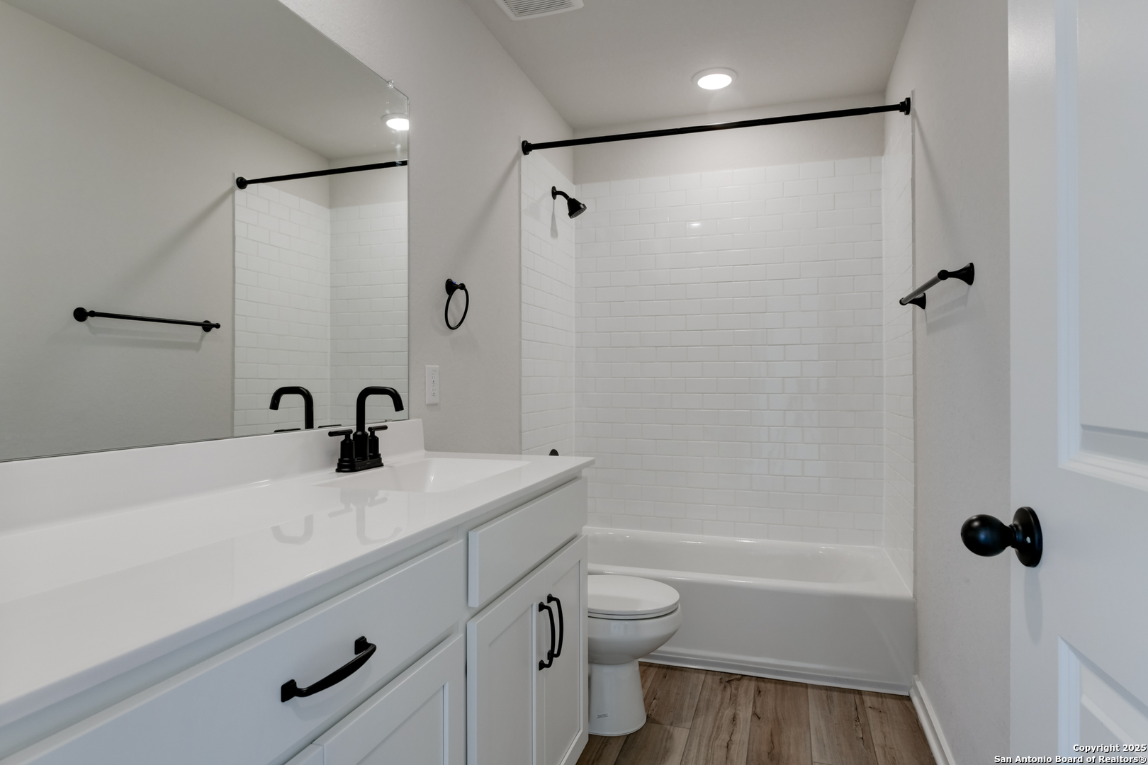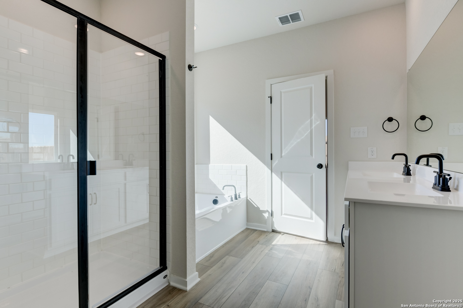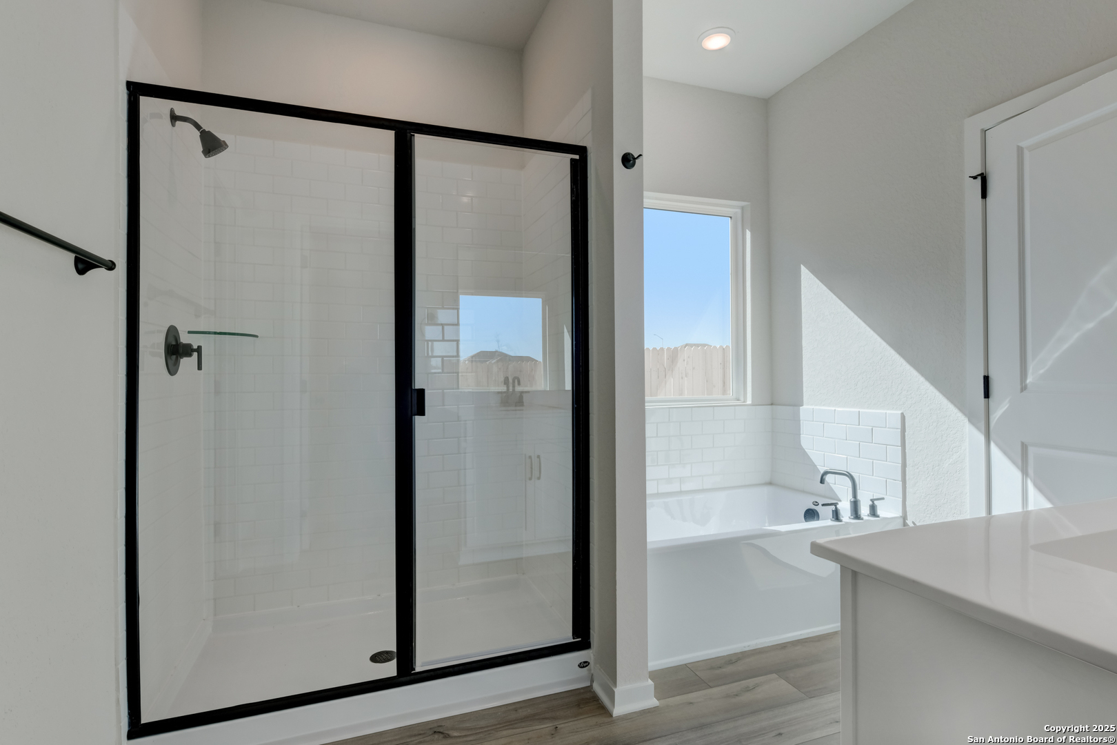 Charming two-story home tucked away in a peaceful cul-de-sac, thoughtfully designed for comfort and style. The gourmet kitchen features upgraded 42" cabinets, a walk-in pantry, and a peninsula island that opens seamlessly to the spacious family room. Three large windows frame views of the backyard, filling the space with natural light and creating a warm, inviting atmosphere. The secluded primary suite offers a private bath with a separate shower, garden tub, and a walk-in closet, providing a quiet retreat at the end of the day. Upstairs, a loft and three secondary bedrooms with a shared bath offer flexible space for work, play, or relaxation. A covered patio and full landscaping package make outdoor living easy and enjoyable. This home is part of our Harmony Collection-where rustic warmth meets timeless elegance. Sunlit spaces highlight natural wood textures and twisted iron finishes, creating an inviting backdrop for homemade meals, barefoot mornings, and warm hugs at the door. Harmony brings a lived-in feel to new construction, crafting a home that feels welcoming from the very first step inside, as if it's been part of your story all along. Cordova Trails combines small-town charm with exceptional convenience, located just off Loop 1604 and Highway 211. Enjoy quick access to top-rated Northside ISD schools, shopping, and dining, as well as nearby attractions like Government Canyon State Natural Area. Inside the community, tree-lined streets lead to amenities including a playground, walking trails, and green spaces perfect for unwinding. Here, you'll find the ideal balance between peaceful living and easy connectivity.