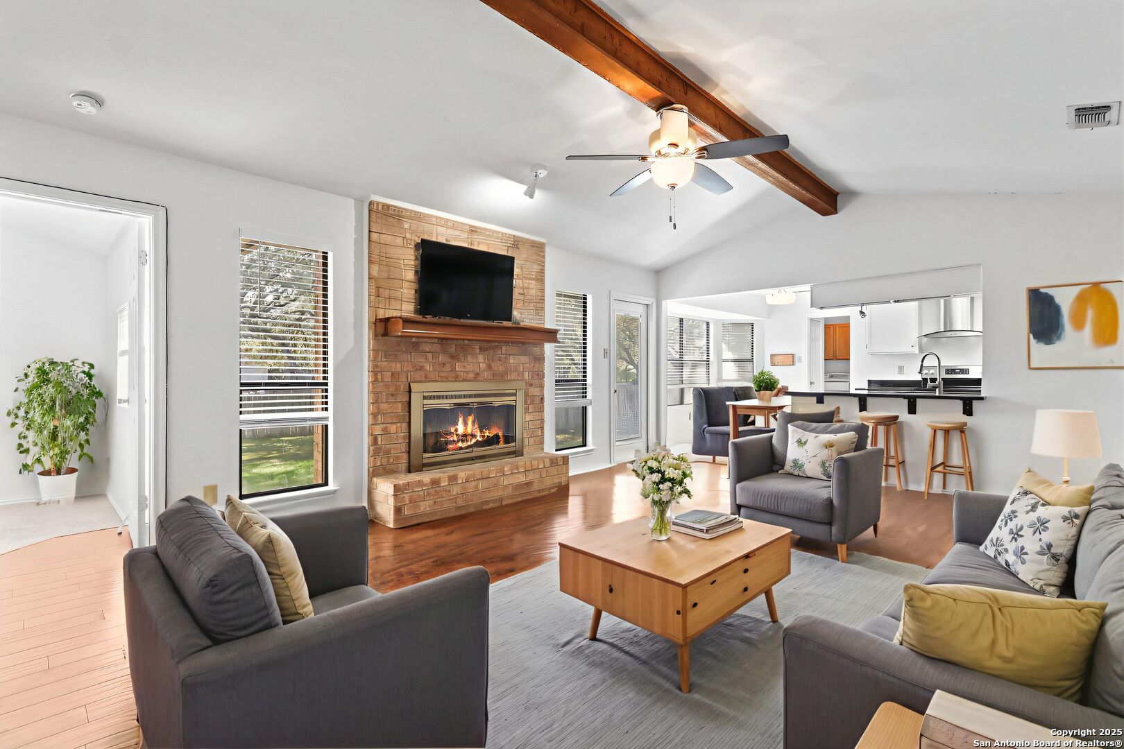 Priced to sell! Don't miss out on this one! Super cute 1 story home in San Pedro Hills! HVAC replaced in 2024! Roof replaced in 2020! The entire house and trim just got painted! Brand new carpet in the bedrooms! 3 Bedrooms, 2 Full bathrooms, HUGE backyard, perfect for hosting all of your family and friends for backyard BBQ's and yard games! Walking distance to Thousand Oaks Elementary! Feeds into Bradley Middle school! Minutes away from McAllister Park! HEB, shopping, tons of restaurants, Pizza Italia, Evil Olive, Giuseppe's Italian Grill & Pizzeria, Fish City, PHO 3 all literally minutes away from your home! Amazing access to 281, 1604 and 410! What more could you ask for? How about You the beautiful vaulted ceiling in the living room! Wonderful fireplace! Award winning NEISD school district! Come and see this house today!