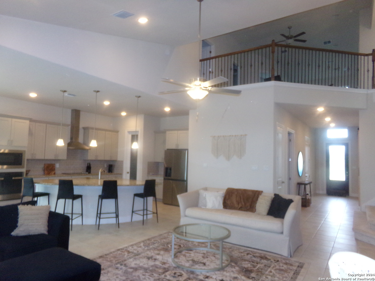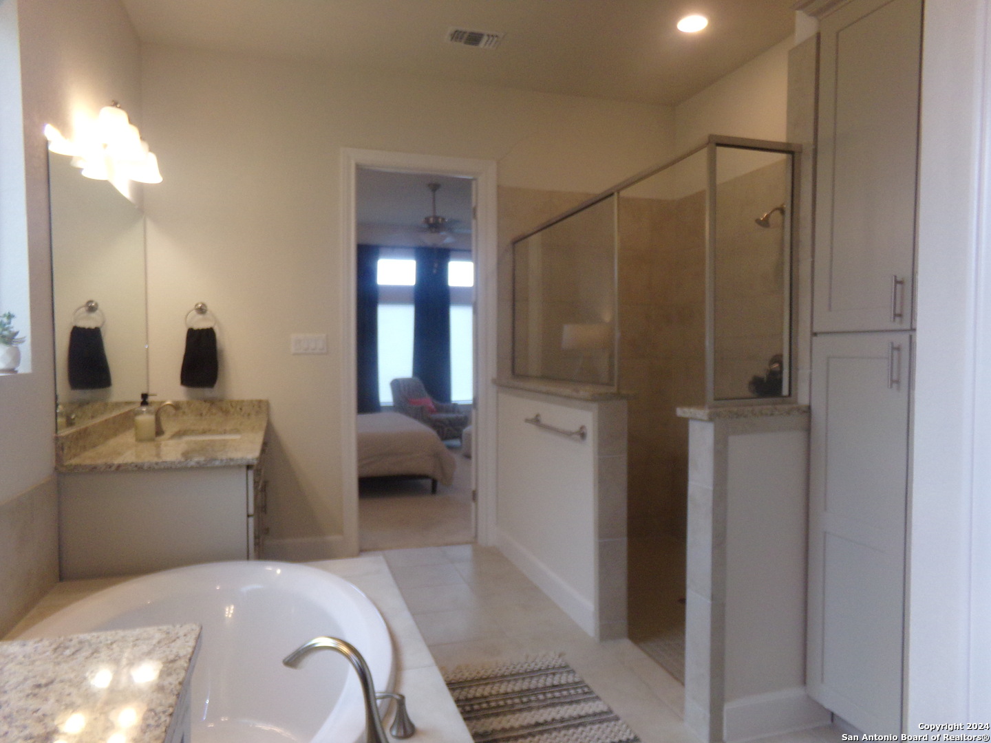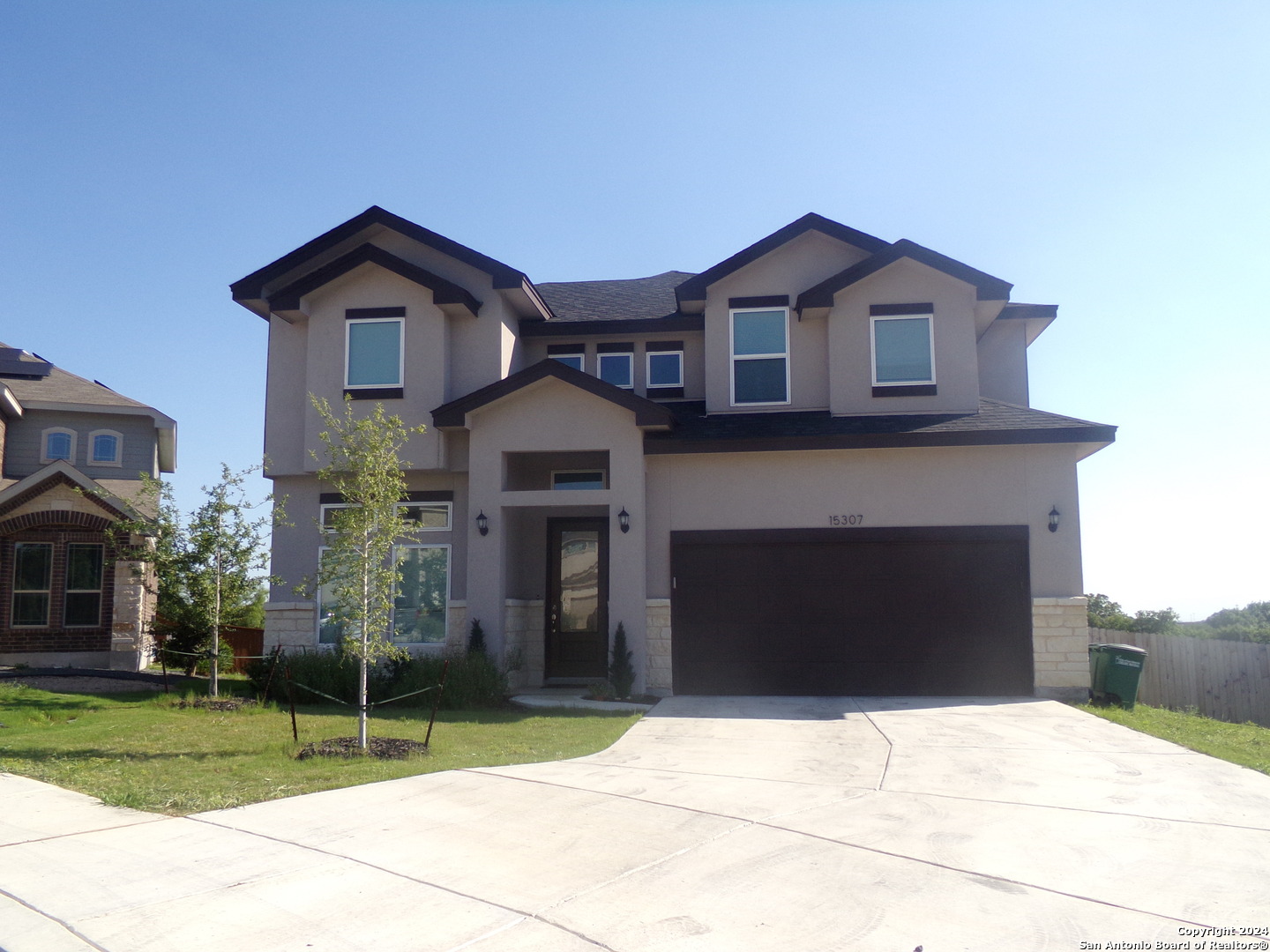 Beautiful home located conveniently to 1604 and IH 35. clothes. Spacious 5 bedroom with open floor plan. Primary and a secondary bedroom located downstairs. Primary bath has seperate tub and shower. Primary bedroom closet is absolutely amazing and spacious. 3 bedrooms upstairs open into a loft. Walk in closets in secondary bedrooms. Granit countertops. Recess lighting. 20' ceilings in family room. Lots of natural light.
