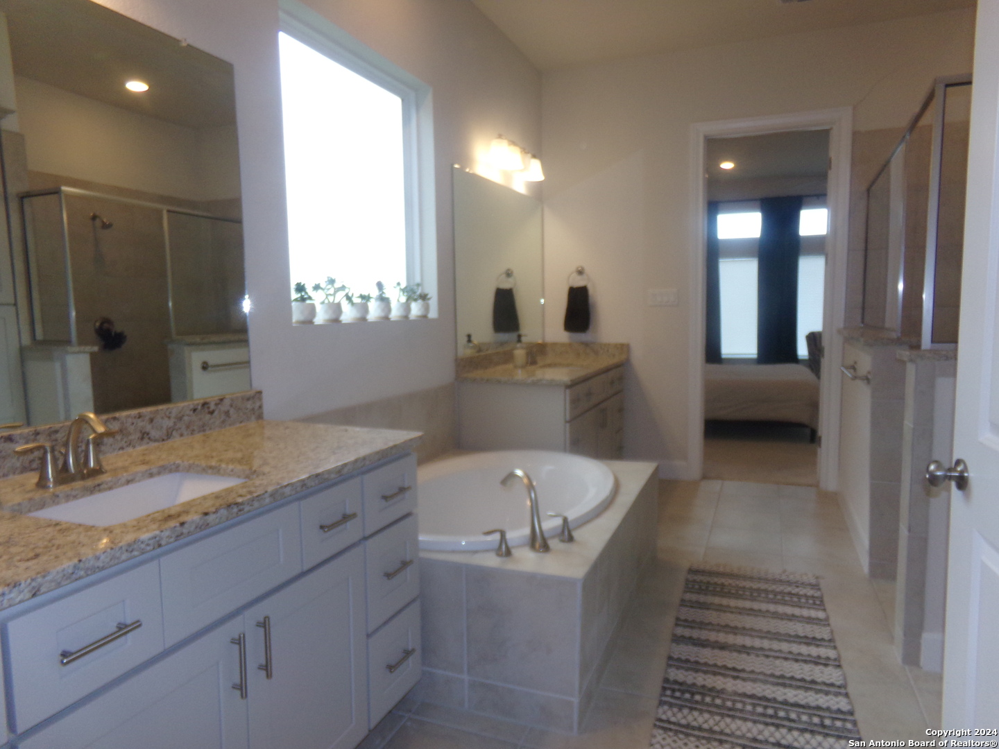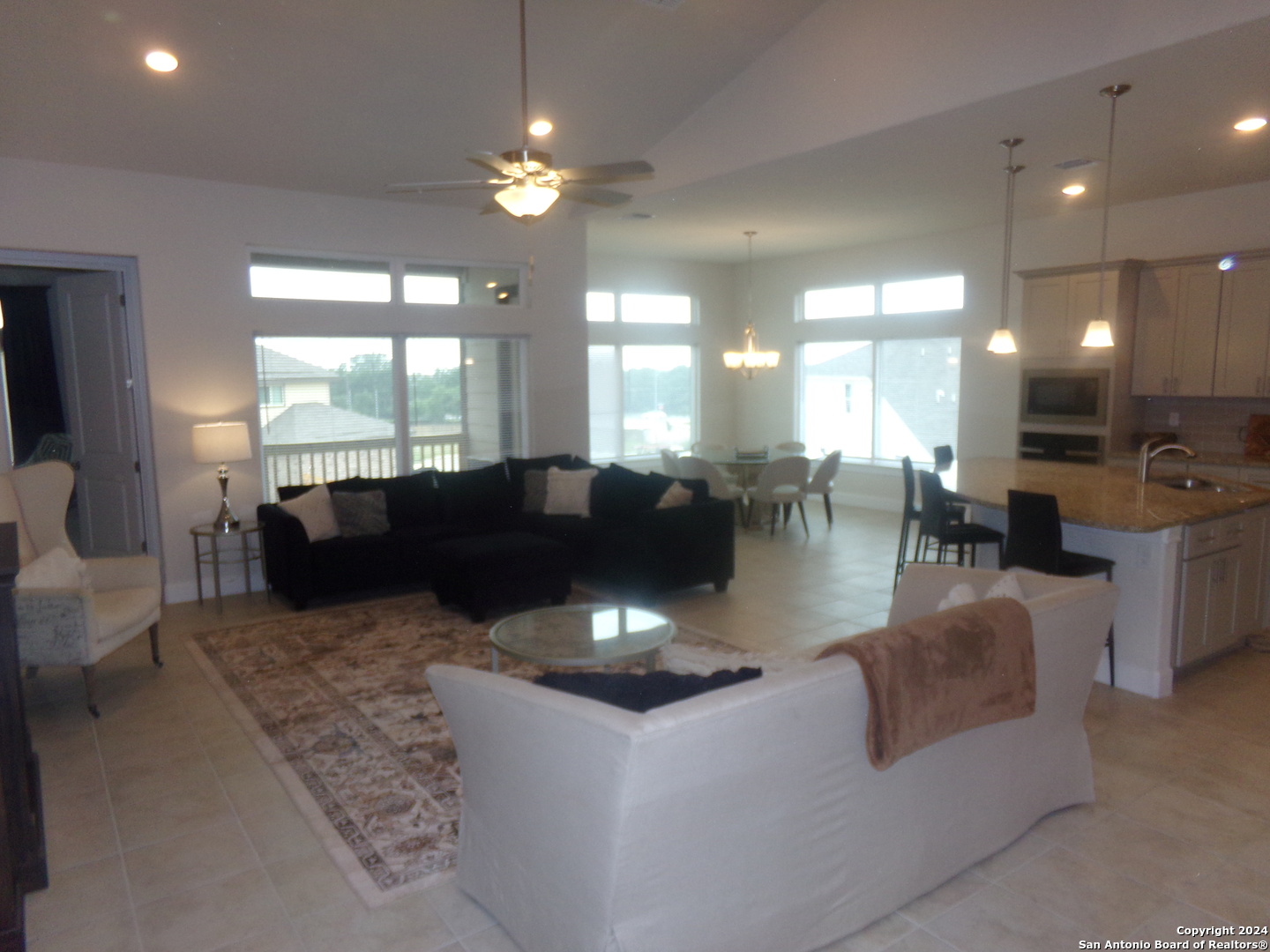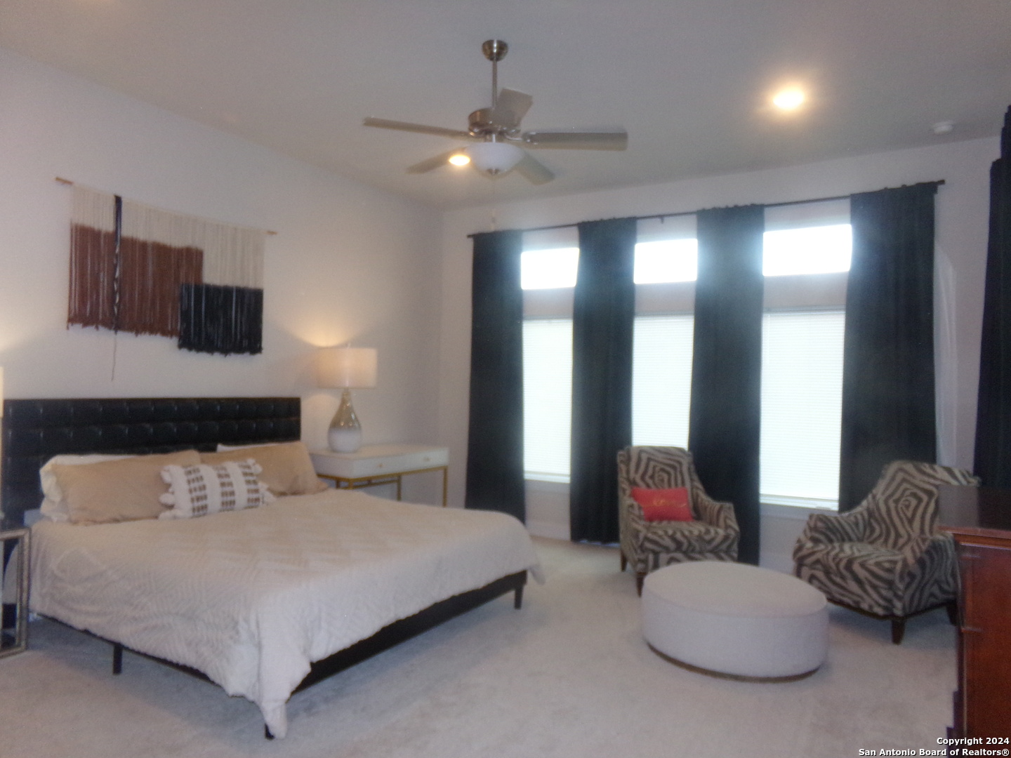 Beautiful home located conveniently to 1604 and IH 35. clothes. Spacious 5 bedroom with open floor plan. Primary and a secondary bedroom located downstairs. Primary bath has seperate tub and shower. Primary bedroom closet is absolutely amazing and spacious. 3 bedrooms upstairs open into a loft. Walk in closets in secondary bedrooms. Granit countertops. Recess lighting. 20' ceilings in family room. Lots of natural light.
