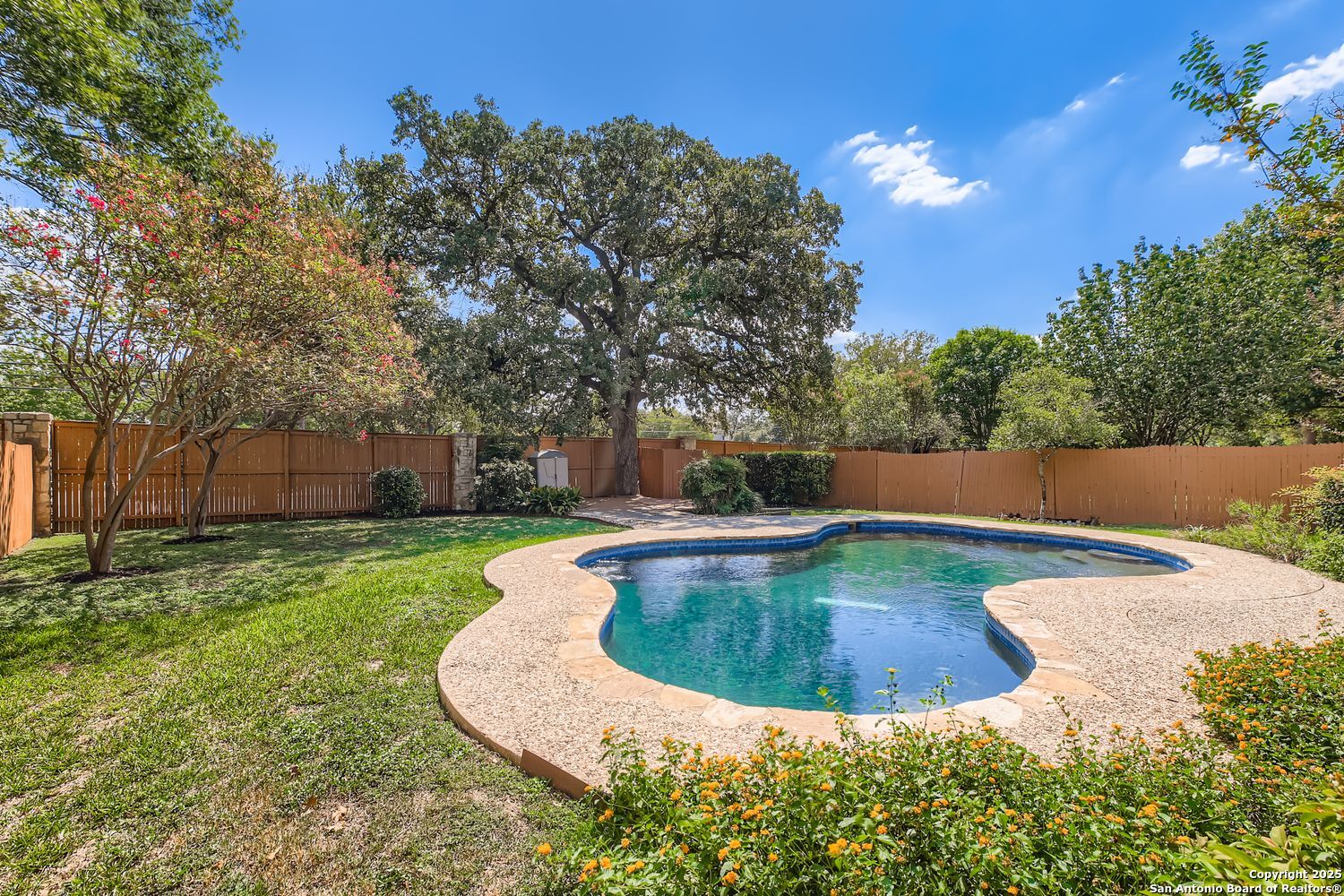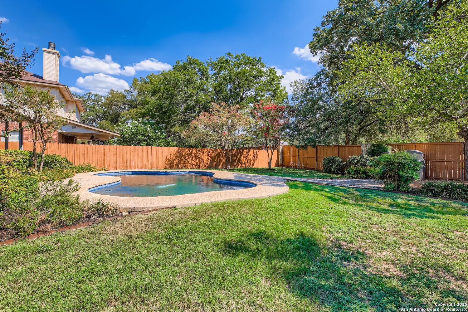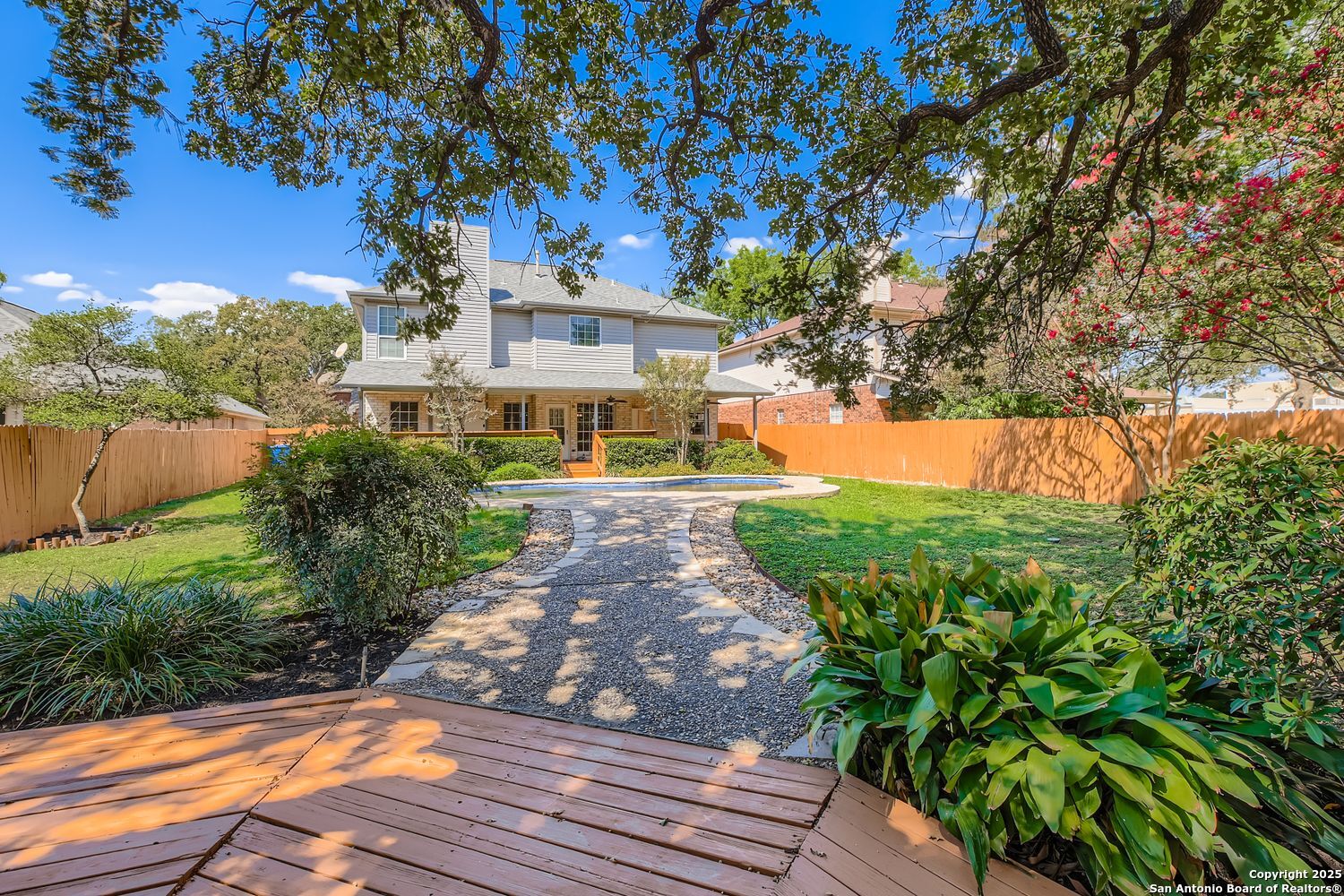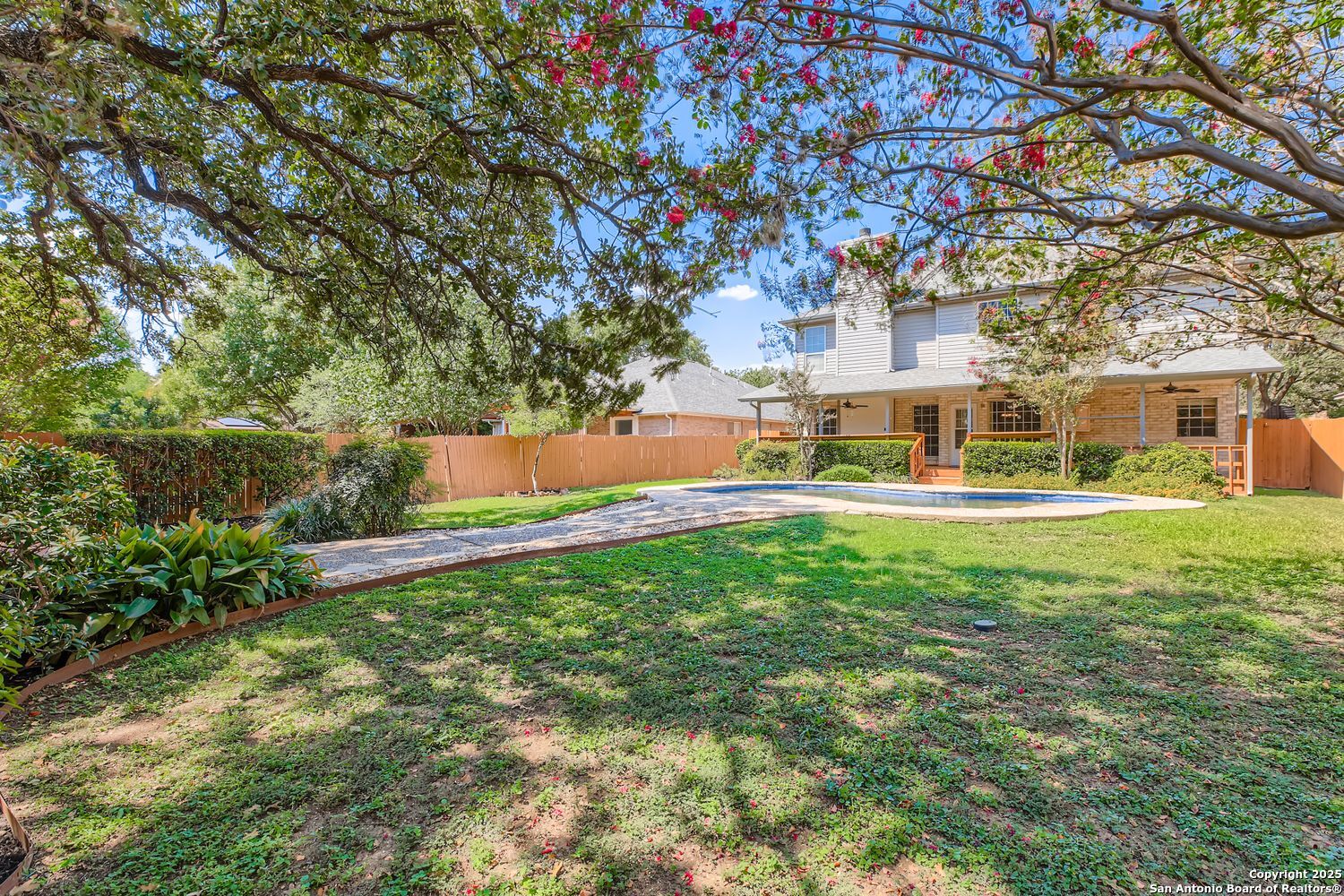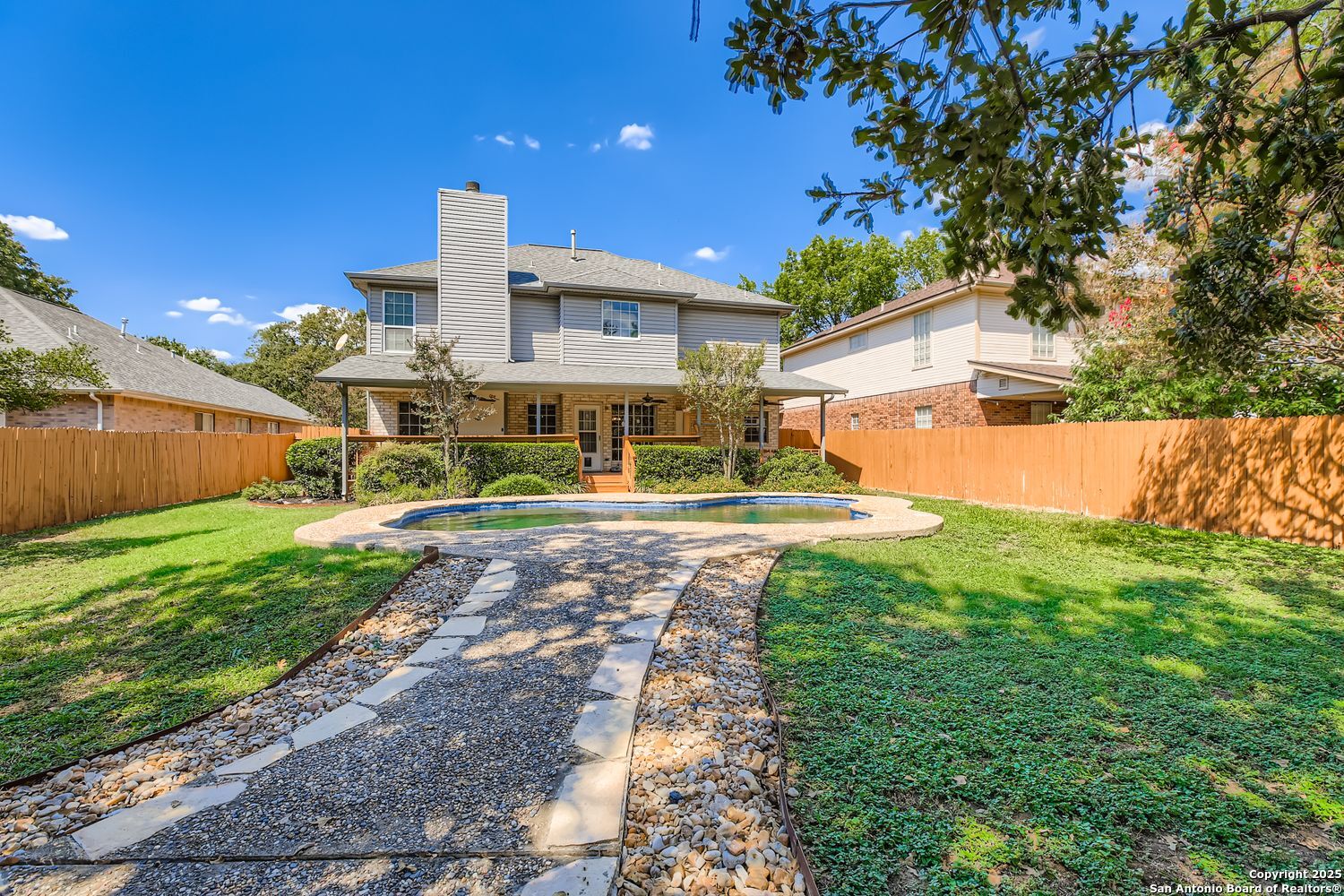 Nestled in the heart of San Antonio's coveted Oak Hollow subdivision, 15314 Rompel Trail Drive is your private oasis on a serene cul-de-sac, where everyday living feels like a welcome escape. This two-story home blends timeless elegance with modern comfort, offering 3 spacious bedrooms, 2.5 bathrooms, and an open layout designed for effortless entertaining and bliss. Step inside to the formal living and dining areas, where natural light floods through expansive windows, setting the stage for cherished gatherings. Unwind in the cozy family room, anchored by a crackling fireplace that invites lazy evenings with loved ones. The heart of the home is the spacious island kitchen boasting abundant counters, sleek cabinetry for all your culinary treasures, and a sunny breakfast nook perfect for morning coffee rituals. Upstairs, retreat to your private sanctuary with generously sized bedrooms and ample closet space. The convenient understairs storage keeps life organized and clutter-free. Outside, the magic continues with a covered patio overlooking your sparkling pool-complete with an automatic pool sweep for effortless maintenance-ideal for summer barbecues, sunset swims, or simply soaking in the Texas breeze. Tucked away with a side-entry garage for added privacy and curb appeal, this gem sits amid Oak Hollow's resort-like amenities: a community pool, tennis and basketball courts, playgrounds. You can even find a horseback riding school. All this just moments from McAllister Park's trails and the conveniences of Loop 1604 and 281. Close to shopping, dining, and entertainment options - this not just a home, but a lifestyle upgrade. Don't miss your chance to claim this slice of San Antonio paradise-schedule your private tour today and start envisioning holidays by the hearth and poolside sunsets in your future!