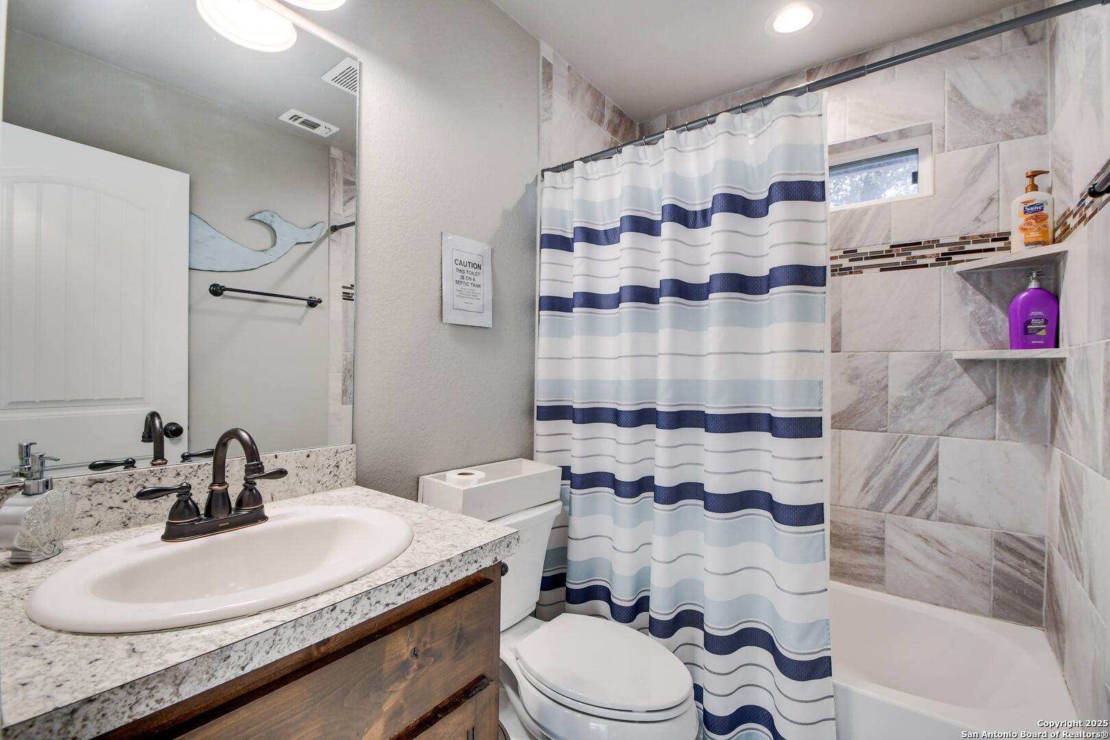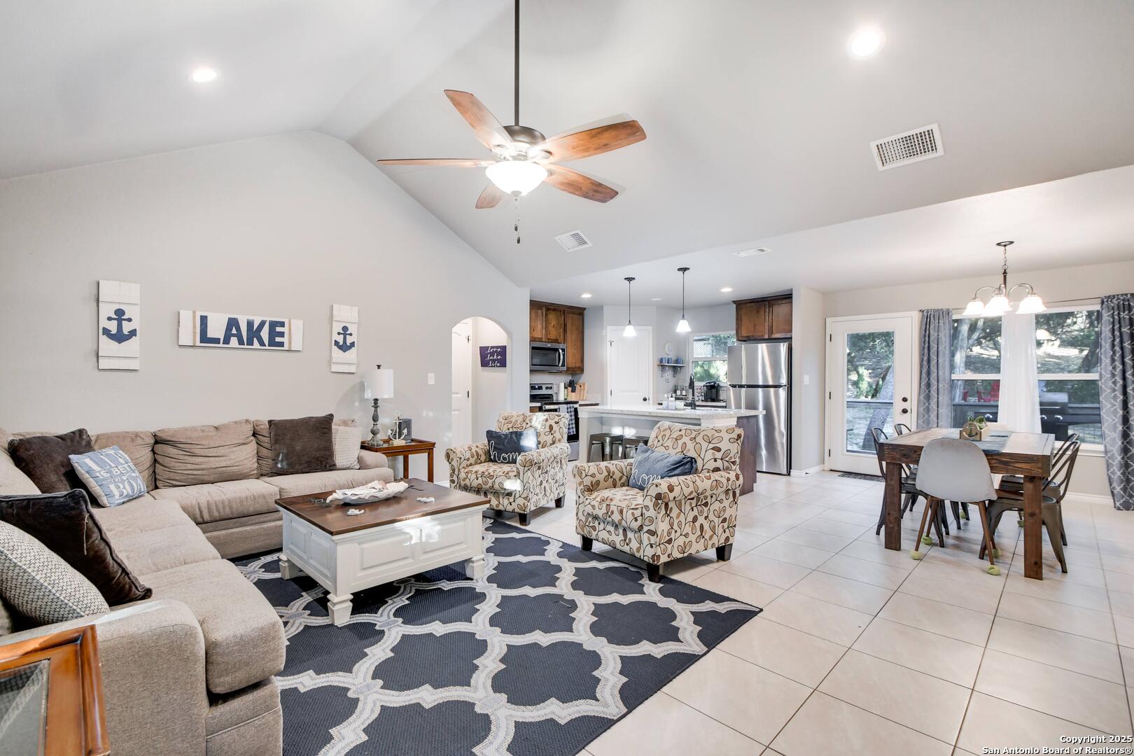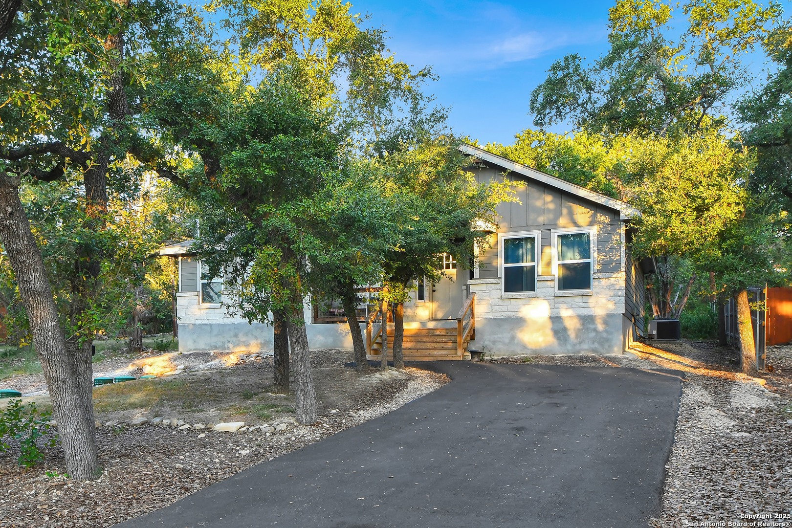 Fully furnished highly profitable Short Term Rental for sale! This gorgeous home sits on a small hill with country views nestled in the middle of Canyon Lake Forest, completely surrounded by Live Oak and Cedar trees. Purchase it as an income producing short term rental with over 150 5-star reviews or as a fully furnished home to live in! Inside you'll find high ceilings, blazing fast internet, an island kitchen with high end 42" solid hardwood cabinets and windows that allow you to immerse yourself in nature. 2 guest bedrooms share a full bathroom and the master bedroom has 2 closets plus dual vanities in the master bathroom. Be prepared to make friends with the white tailed deer that roam the neighborhood as they often come right up to the back deck to say hello every morning! The home feels like it sits on over 2 acres because of the way the neighbors have preserved their front and back yards--completely devoid of buildings, leaving nothing but trees, native flowers and open space. Comal Park is a 5 minute walk and so is Boat Ramp #5 which is a great place to put in your kayaks and stand up paddle boards. The community pool, playground and tennis courts are also less than 5 minutes away walking distance. This is truly a remarkable property, which comes fully furnished with an acceptable offer.