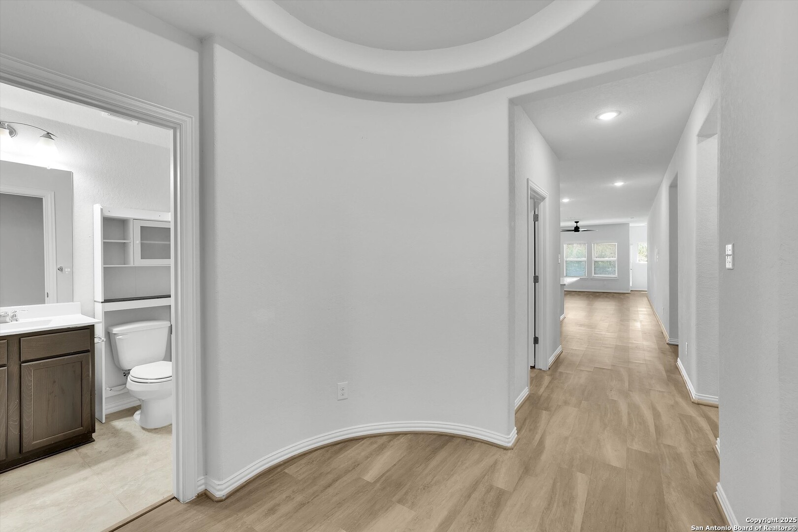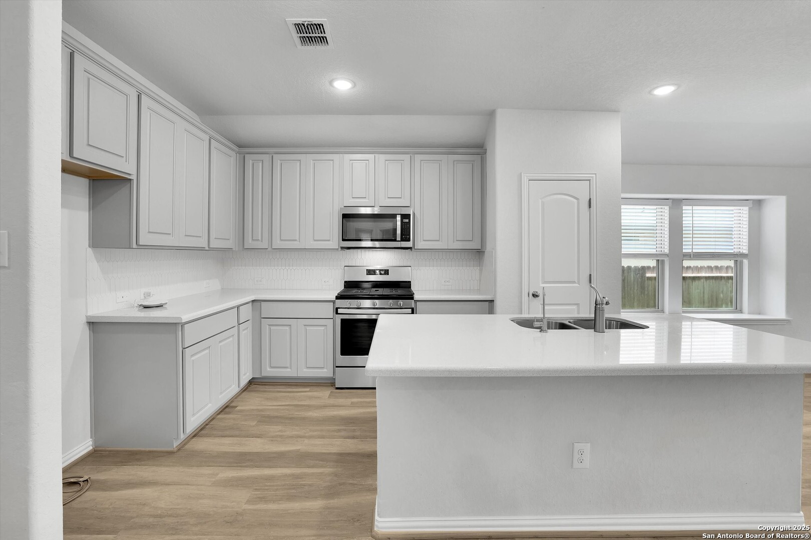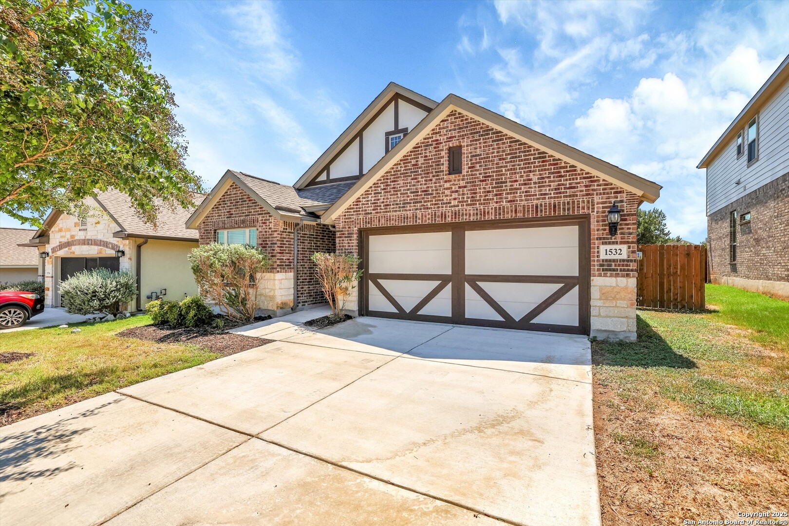 REDUCED IN PRICE, NOT QUALITY, BUYERS THIS IS POSITIVELY AN OPPORTUNITY TO GET INTO THIS COMMUNITY AT ONE OF THE LOWEST PRICES**THIS OPEN FLOOR PLAN IN MEYER RANCH IN NEW BRAUNFELS HAS IT ALL* A 6 YR YOUNG, 1 STORY, BEAUTIFULLY MAITAINTED WITH 4 BEDROOMS & 3 FULL BATHS WITH 1910 SF* This property is available for a 2-1 Buydown Mortgage** From the brick and rock exterior to the upgraded floors, updated gourmet Island Kitchen w/42" Cabinets, Gas Range cooking, Solid surface countertops, Tiled backsplash, Stainless Steel appliances, to the spacious Living room, this home exudes COMFORT* The split Primary Bedroom flows into the Primary Bathroom featuring a Walk in Shower, Double Vanities, and a Walk in Closet as large as a Bedroom*The three secondary bedrooms and the two secondary baths complete this easy living floorplan* Outside is a backyard Covered Patio, privacy fenced yard with a Greenbelt behind it*Sprinkler system and the home is energy efficient with low flow commodes, Programmable thermostat, Energy Star Appliances, & Radiant Barrier* The HOA amenities include a Park/Playground, Clubhouse, Jogging & Bike Trails* This is a beautiful community that anyone would be proud to live in***