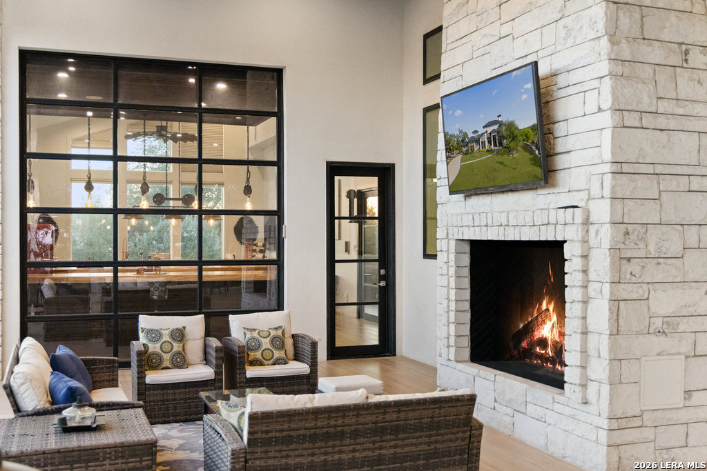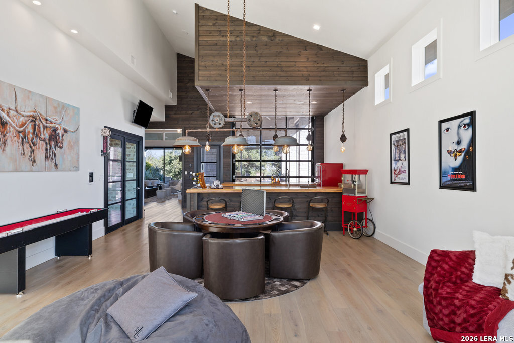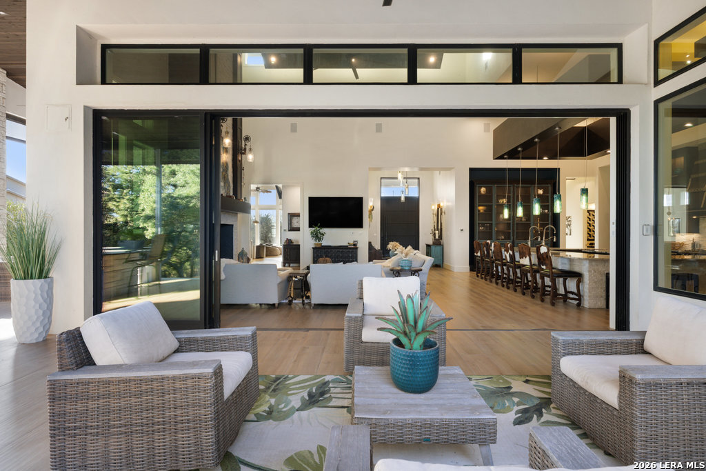 Full tour on YouTube! Offering $75,000 towards closing costs/rate buy down with full priced offer. Priced below appraised value & open to seller financing! Beautiful home in a gated community, heated pool, views, privacy, over 1 acre, wide-plank white oak flooring, natural light, chef's kitchen, 4 bedrooms and 4.5 bathrooms with over 6,000 square feet of interior living space, 4+ car garage w/ AC, speaker system, aviary, pet amenities...the list goes on! Welcome to 1534 Circolare, a Hill Country Modern entertainer's paradise and vacation getaway. 10' pivot entry door leads to grand room with ceilings climbing over 40', an open floorplan with stunning oversized countertop, decorative island, and high-end appliances immediately draw your attention. Commercial-grade materials and luxurious finishes throughout, authentic custom pieces that cannot be replicated such as imported antiques and precious natural woods. Experience indoor/outdoor living at the touch of a button. Fully functional outdoor kitchen and butlers pantry. Bar and game room with chilled wine cellar can come furnished with poker table and shuffle board. The master's suite is an ultimate getaway with color-changing double Amantii corner fireplace, dazzling light fixtures, spa-grade steam shower + jacuzzi, and illuminated green onyx vanities. Located in highly sought-after Vintage Oaks, a resort-style community with a lazy river, trails, and community amenities. Nestled between Canyon Lake & New Braunfels, a short drive to Guadalupe State Park, Natural Bridge Caverns, golf resorts, water parks, and within 1 hour of Austin + San Antonio. Multiple airports nearby, but you'll never want to leave this jaw-dropping home that is truly the crown of Vintage Oaks. Built for long-term low-maintenance, including a metal roof, whole home R.O. system, and top-tier construction, this home is a no-brainer. A turn-key option to include furniture pictured in the home is available! Come see today!