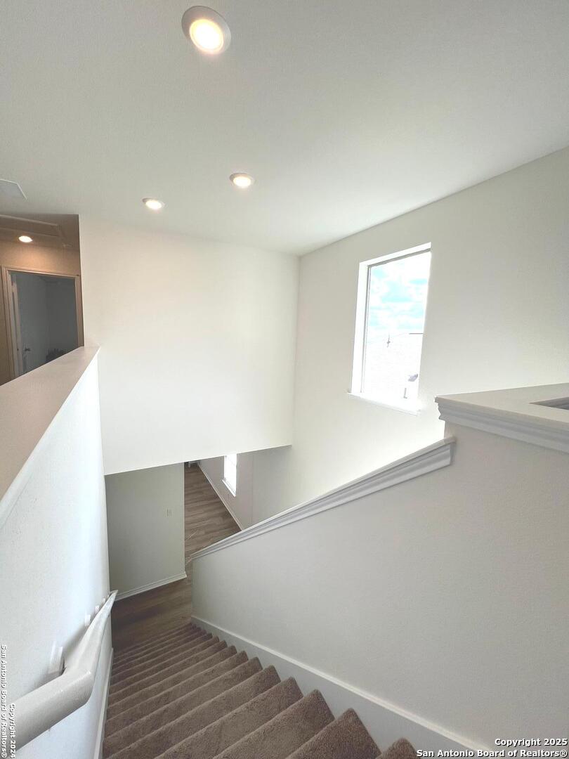 This stunning, two-story home boasts tons of natural lighting. Inside, discover an open floor plan with 9-ft. first-floor ceilings and luxury vinyl plank flooring. The stylish kitchen boasts Woodmont Dakota Shaker-style 42-in. upper cabinets and an extended breakfast bar as well as a walk-in pantry. Relax in the first-floor primary suite, which features a massive walk-in closet and connecting bath that offers a dual-sink vanity and spacious shower. Upstairs, a massive loft and office area provide ample space for all your entertaining needs. The upstairs is carpeted, and carpets are a sand color, the images appear much darker. Please verify schools and room measurements.