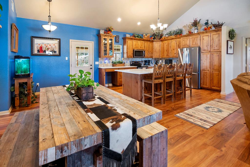 Tucked away in the heart of Mason County, this rare 7+ acre small ranch offers privacy, versatility, and pride of ownership in an ideal Hill Country setting. Surrounded by larger ranches and not located in a subdivision, this property delivers the space and freedom buyers are searching for—while still enjoying maintained county road frontage and gated access. The very nice 2.5-story country home features 4 bedrooms, 3.5 baths, plus a spacious loft, and has been thoughtfully updated inside and out. Recent exterior improvements include fresh paint, Austin stone rockwork, and a durable metal roof, giving the home a clean, modern ranch aesthetic. A large front porch invites you to enjoy morning coffee with Hill Country sunrises, while the newly created screened back porch provides an incredible second living space—perfect for hosting friends, watching football, or enjoying the NFR in comfort. The custom blinds alone were a significant investment and make this space usable year-round. Inside, the home feels like new. Updates include new kitchen countertops, a beautiful backsplash, and a generous bar area ideal for gathering. The open living and kitchen area boasts vaulted ceilings accented by a striking wagon-wheel light fixture, creating a warm and inviting atmosphere. The loft area offers flexible use as a home office, game room, additional bedroom, or second living space. An attached carport with direct access to the mudroom makes everyday living and unloading groceries easy and convenient. Outside is where this property truly shines for the ranch-minded buyer. The land features excellent sandy loam soils, large oak trees, and good underground water. The ranch is cross-fenced and well-suited for horses, 4-H or FFA projects, and recreational use. Improvements include a riding/roping arena, small barn with stalls, and a newly built dog kennel designed to match the home's exterior. Fruit trees add charm and function, and the acreage is large enough to hunt. For relaxation, enjoy the hot tub and cowboy pool, both of which convey with the sale—perfect for cooling off after a day outside or unwinding under the Texas stars. Additional highlights include: *Very private setting with scenic Hill Country views, *County road frontage with gated entrance, *Surrounded by large ranches, *Pride of ownership throughout, *Ideal full-time residence or weekend retreat. This is a rare opportunity to own a move-in-ready Hill Country homestead that checks every box—location, privacy, land, improvements, and lifestyle. Properties like this in Mason County don't come along often.
