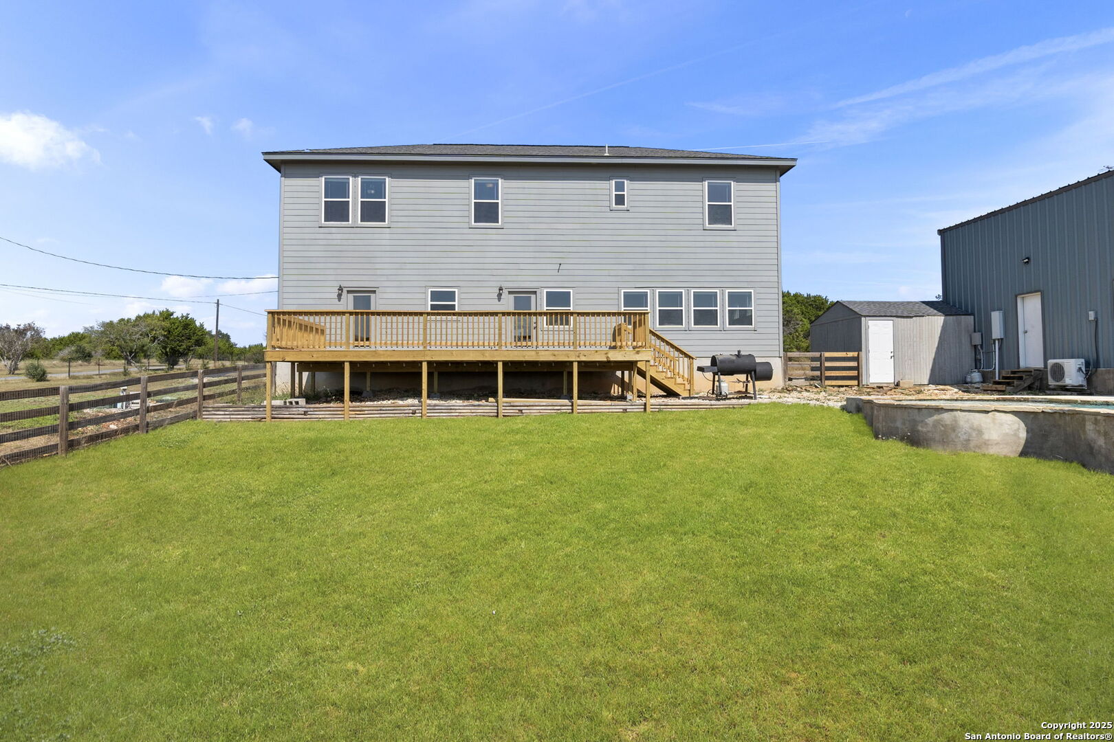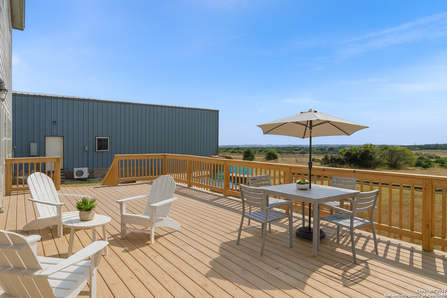 154 Maverick sits on 10 acres where life slows down in the best way. Imagine stepping out onto the oversized deck, feeling the breeze, and watching the Hill Country stretch endlessly in front of you. It's the kind of view that makes you pause - whether it's sunrise coffee or a glass of wine at sunset. The main home was built for connection and comfort, with 3 bedrooms, 2.5 baths, and two separate living areas. There's space for everyone to spread out, yet still come together around the table or in front of the big windows that frame the landscape. Summer days are meant for the pool, with its inviting grotto and plenty of room for laughter and lazy afternoons. When friends or family visit, the guest quarters inside the warehouse give them privacy - complete with a kitchenette and full bath - while still keeping them close. And then there's the 34x25 warehouse itself: part storage, part workshop, part possibility. RVs, boats, weekend projects - it's all welcome here. The loft above makes it more than just storage; it's a space to dream, build, and create. This isn't just property. It's a place where weekends feel like vacations, where everyday routines feel lighter, and where the best memories are made under big Texas skies.