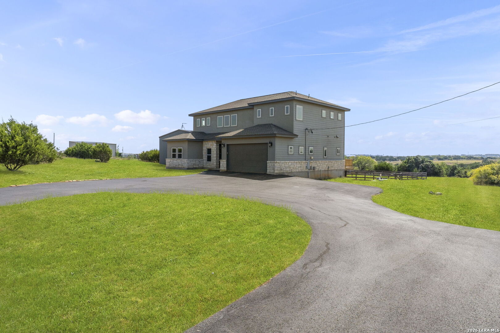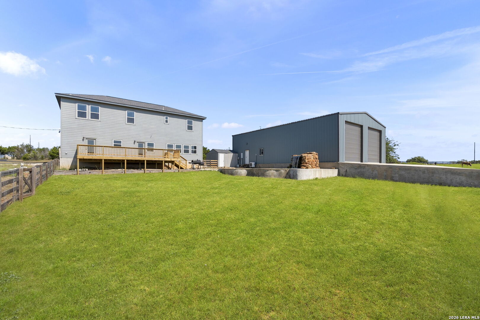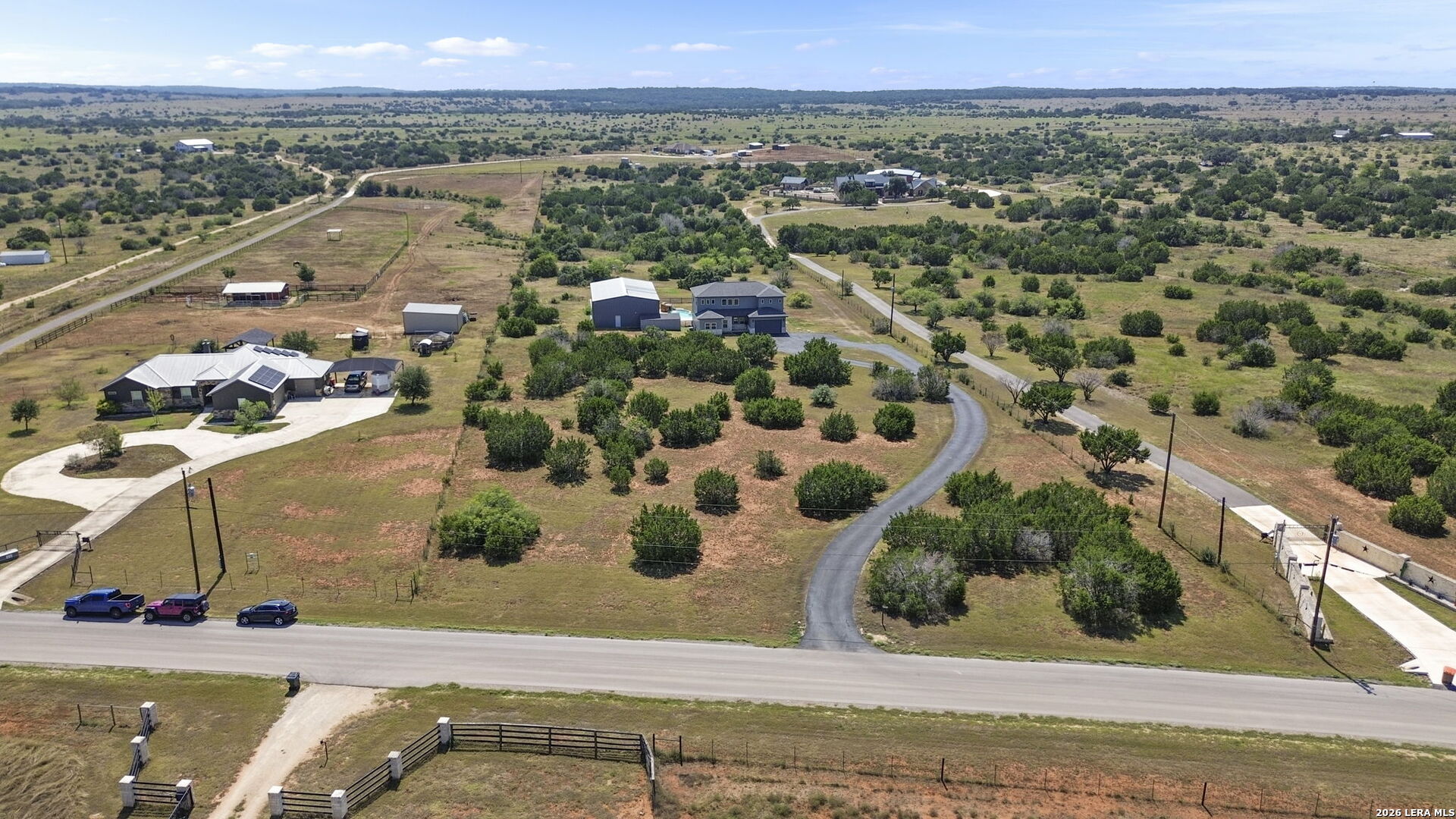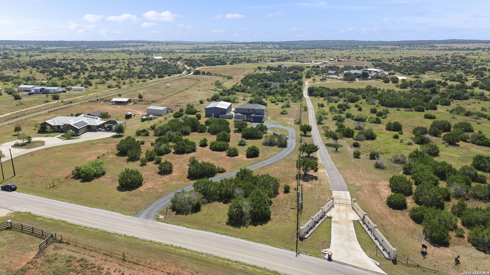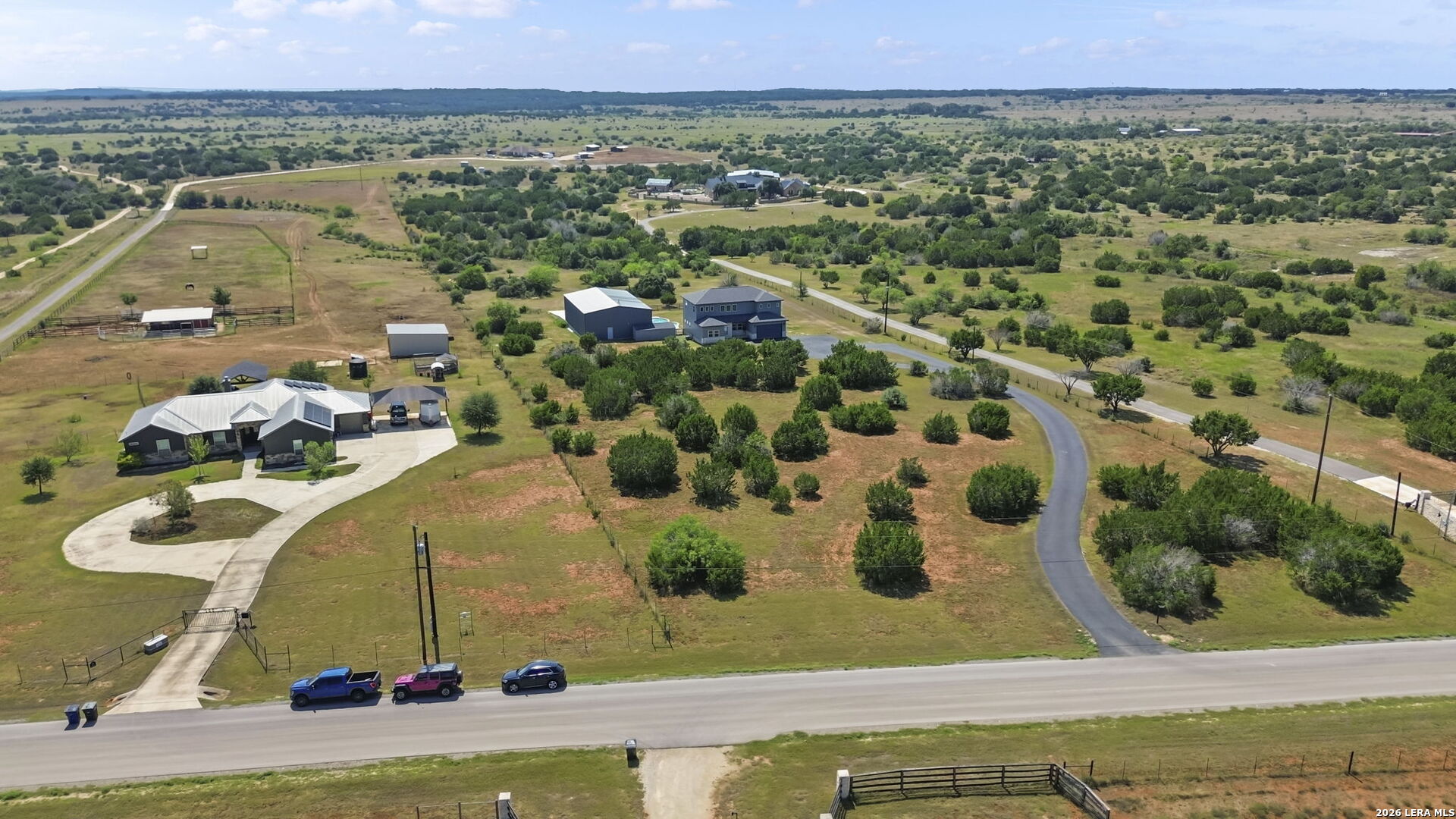 154 Maverick is a rare 10-acre Hill Country ranch and homestead retreat designed for those who value space, privacy, and a slower, more intentional way of living. This is the kind of property where land matters, views matter, and everyday life feels connected to the outdoors. With 10 wide-open acres, there's room to garden, roam, add animals, or simply enjoy the peace that comes with true elbow room under big Texas skies. The oversized deck sets the tone for the lifestyle here-perfect for sunrise coffee, sunset wine, and long moments spent watching the countryside roll on in every direction. The land invites a lake-country, weekend-escape feel, whether you're unwinding after a long week or building a full-time ranch lifestyle.The main residence offers 3 bedrooms, 2.5 baths, and two distinct living areas, creating a home that balances togetherness with flexibility. Large windows frame the surrounding landscape, keeping the outdoors woven into daily life-ideal for gathering, relaxing, and slowing down.Summer days are meant to be spent poolside, enjoying the grotto, open skies, and unhurried afternoons that feel more like vacation than routine.A standout feature of the property is the detached ADU suite, thoughtfully designed to provide privacy and independence while remaining connected to the ranch. Complete with a kitchenette and full bath, it's perfect for extended family, visiting friends, multigenerational living, a private office, or potential guest accommodations adding both lifestyle versatility and long-term value.The 3425 warehouse brings true ranch functionality, offering space for RVs, boats, equipment, workshops, and weekend projects. The loft above expands the possibilities even further creative studio, storage, or future flex space ready to adapt to your vision.This isn't just acreage it's a way of life. A place where weekends feel like lake retreats, routines feel lighter, and the freedom of 10 acres allows you to live, build, and breathe at your own pace.
