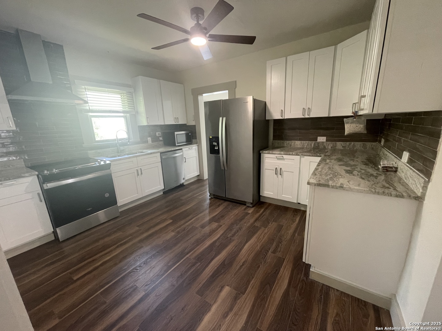 Ready for move in May 13, 2025. Come live in this fully renovated one-story home featuring 4 bedrooms and 2 bathrooms. The home has fresh paint throughout and brand new flooring. It also comes with a brand new refrigerator, washer, and dryer. Enjoy the convenience of an electronic gate and covered parking. The property includes a large backyard with a shed and beautiful stand-up showers in both bathrooms. Enjoy sitting under a covered front porch or covered back patio. Schedule your tour today.