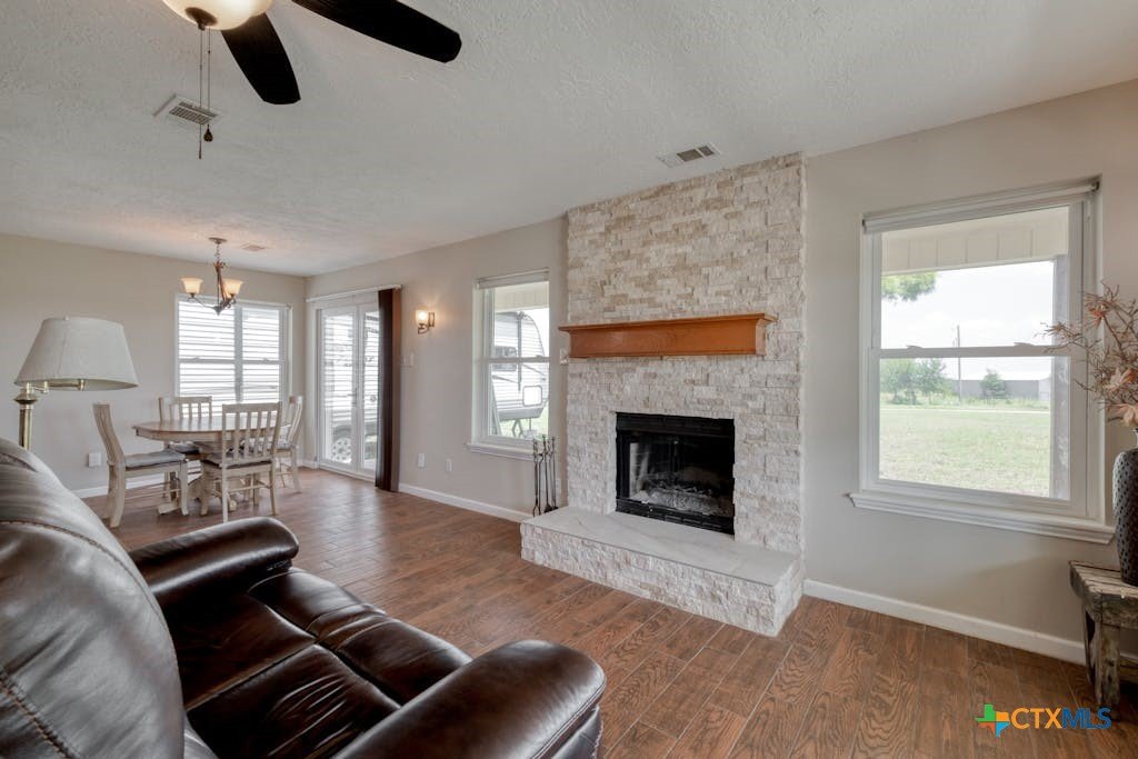 Experience the tranquility of country living on 10.29 acres of serene, picturesque land. This charming two-story home features a cozy and inviting front porch that wraps around two sides, offering panoramic views of the surrounding countryside. Step inside to find a beautifully updated kitchen complete with crisp white cabinets, stunning Quartz countertops with waterfall edges, and a stacked stone backsplash. The large island provides ample space for seating and entertaining. The spacious living area boasts a striking stone fireplace, creating the perfect ambiance for cozy evenings. The main floor showcases wood tile floors, while upstairs, you'll find bamboo hardwood flooring. The primary bedroom is conveniently located on the main level and includes an updated en- suite bathroom with Quartz countertop and a walk-in shower with frameless glass doors. Upstairs, two large bedrooms feature vaulted ceilings, plus an additional bathroom. Dual pane windows and heat pump ac/heaters added in 2023. Outside, a 2-space carport offers plenty of parking, with additional room for your RV or camper. The property is also horse-friendly, making it ideal for those who enjoy equestrian activities. This is the perfect retreat for anyone seeking peaceful country living without sacrificing modern comforts!