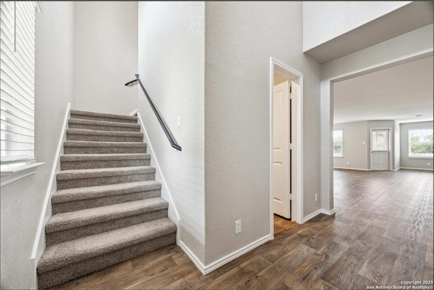 Welcome to 15418 Crimson Topaz, a spacious 4-bedroom, 2.5-bath, 2,305 sq. ft. two-story home designed for comfortable everyday living. The first floor features an open-concept layout with sleek vinyl flooring that connects the living, dining, and kitchen areas. The kitchen includes a large island, granite countertops, and plenty of workspace for cooking and gathering. Upstairs, you'll find all four bedrooms along with a flexible loft area that can serve as a second living space, office, or playroom. The primary suite includes a walk-in closet and a private bath with a tub and shower combination. Carpeted bedrooms provide added comfort throughout the second floor. With generous square footage and functional design, this home offers the space you need in a convenient layout. Large backyard with no back neighbors perfect for entertaining. located off 211 and Potranco Rd. Stove has been delivered and is now included with the property. Schedule your showing today.