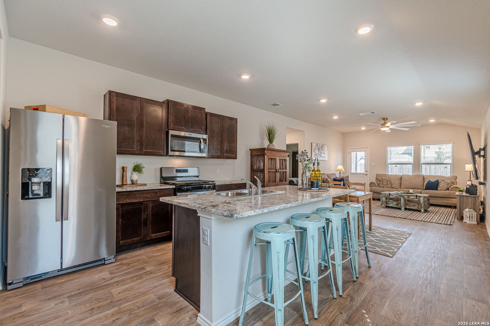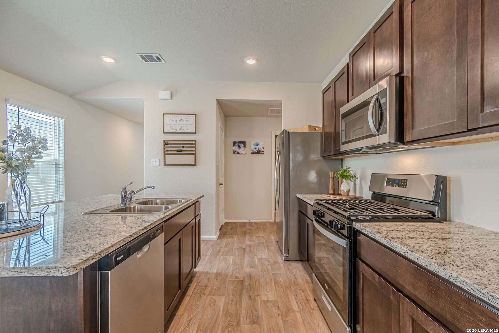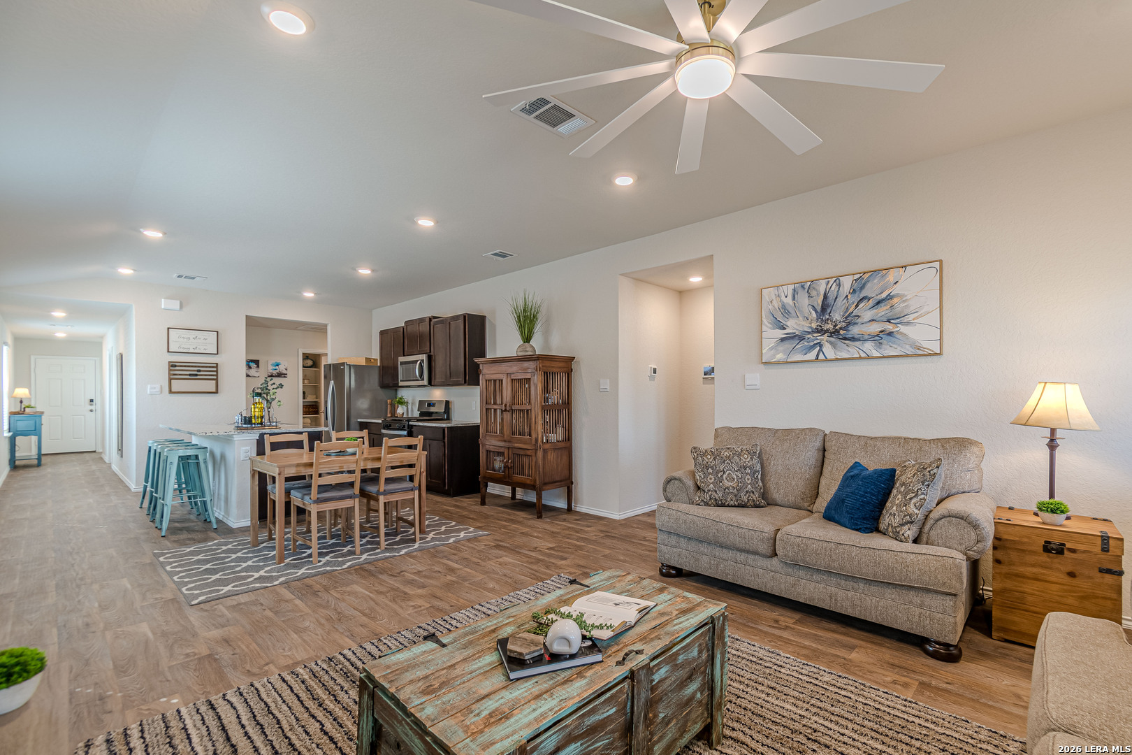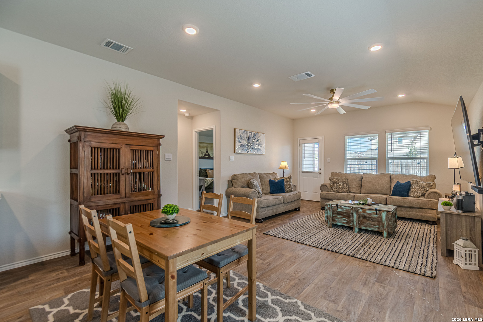 VA Assumable Loan at 4.99%! Beautifully maintained one-story home on a quiet cul-de-sac in the desirable Redbird Ranch community. Welcome home to this thoughtfully designed 3-bedroom, 2-bath, 2-car garage single-story retreat, perfectly situated on a quiet cul-de-sac and within walking distance of the community's up-and-coming amenity center featuring two more pools and playgrounds. This home offers the ideal blend of comfort, functionality, and lifestyle-move-in ready and perfect for today's living. Inside, you'll find an open-concept layout that seamlessly connects the kitchen, dining, and living spaces, creating an inviting atmosphere for both everyday living and entertaining. The kitchen features granite countertops, stainless steel appliances, and ample cabinetry, all overlooking the main living area. Durable, low-maintenance flooring flows throughout the main areas, enhancing both style and practicality. The private primary suite provides a peaceful retreat with an ensuite bath and generous closet space, while two additional bedrooms offer flexibility for family, guests, or a home office. Step outside and unwind in the spacious backyard, where you'll discover a relaxing pebble sitting area-the perfect spot to enjoy quiet evenings gathered around the fire pit with friends and family or simply take in the Texas nights' sunsets. Residents of Redbird Ranch enjoy access to two existing pools, walking trails, parks, and playgrounds, with the community continuing to grow through the new amenity center coming soon, offering even more opportunities for recreation and connection. Amazing Opportunity: Not only does this home offer an exceptional chance to secure a 4.99% VA assumable loan for qualified buyers (subject to VA and lender approval), but the refrigerator, washer, dryer, and home furnishings are negotiable, adding even more value and convenience. Conveniently located near Loop 1604, shopping, dining, major employers, and Lackland Air Force Base, this home truly is the perfect house waiting for you.