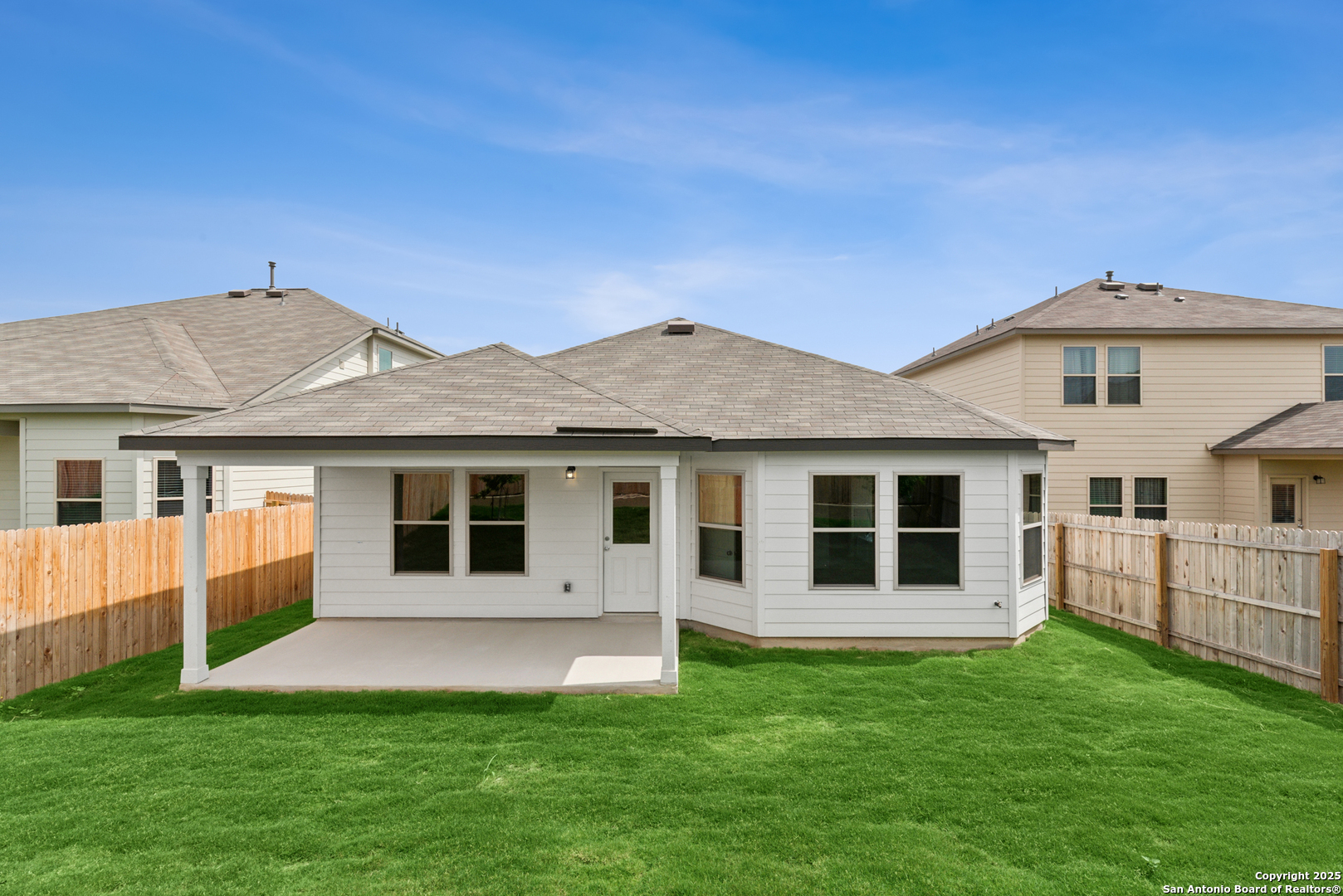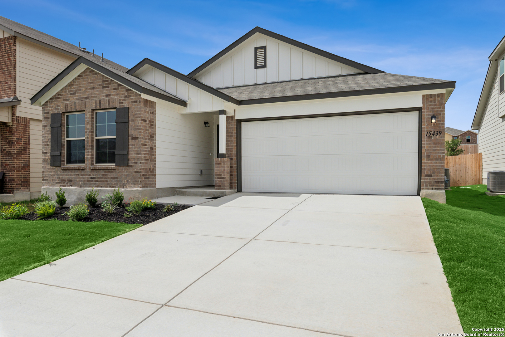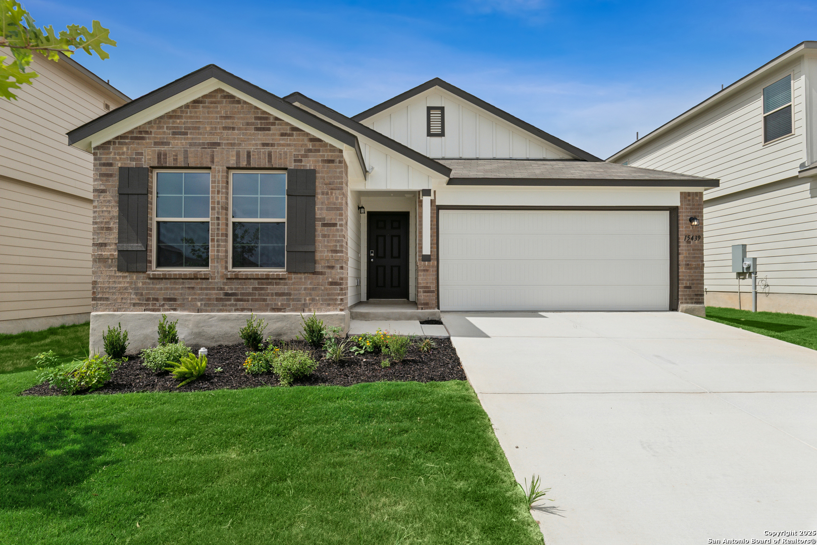 ***READY NOW**** Welcome to this charming 3-bedroom, 2-bathroom house located at 15439 Salmon Spring in the vibrant city of San Antonio, TX 78253. This elegant property, crafted by M/I Homes, boasts a contemporary 1-story design with a spacious interior of 1642 sqft. As you enter, you'll be greeted by a modern kitchen that is ideal for culinary enthusiasts and offers ample space for meal preparation. The open floor plan seamlessly connects the kitchen to the living area, creating a welcoming space for both entertaining guests and relaxing with family. Step outside to the covered patio, perfect for enjoying a morning coffee or hosting a weekend barbecue with friends. With a total of 2 parking spaces, you'll have convenience right at your doorstep. The property's 3 cozy bedrooms provide comfortable retreats at the end of a long day, and the 2 well-appointed bathrooms ensure convenience for all residents. Whether it's a relaxing soak in the tub or a quick shower, this home offers functionality and style. As one of our new homes for sale in San Antonio, TX [address], is located in the Hunters Ranch community, which is now presenting even better pricing options. Enjoy a fantastic community with its own pool, walking trails and parks, at a price that suits you.