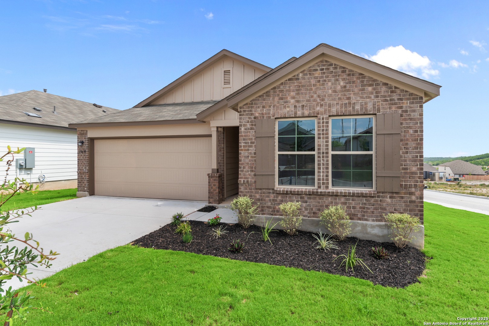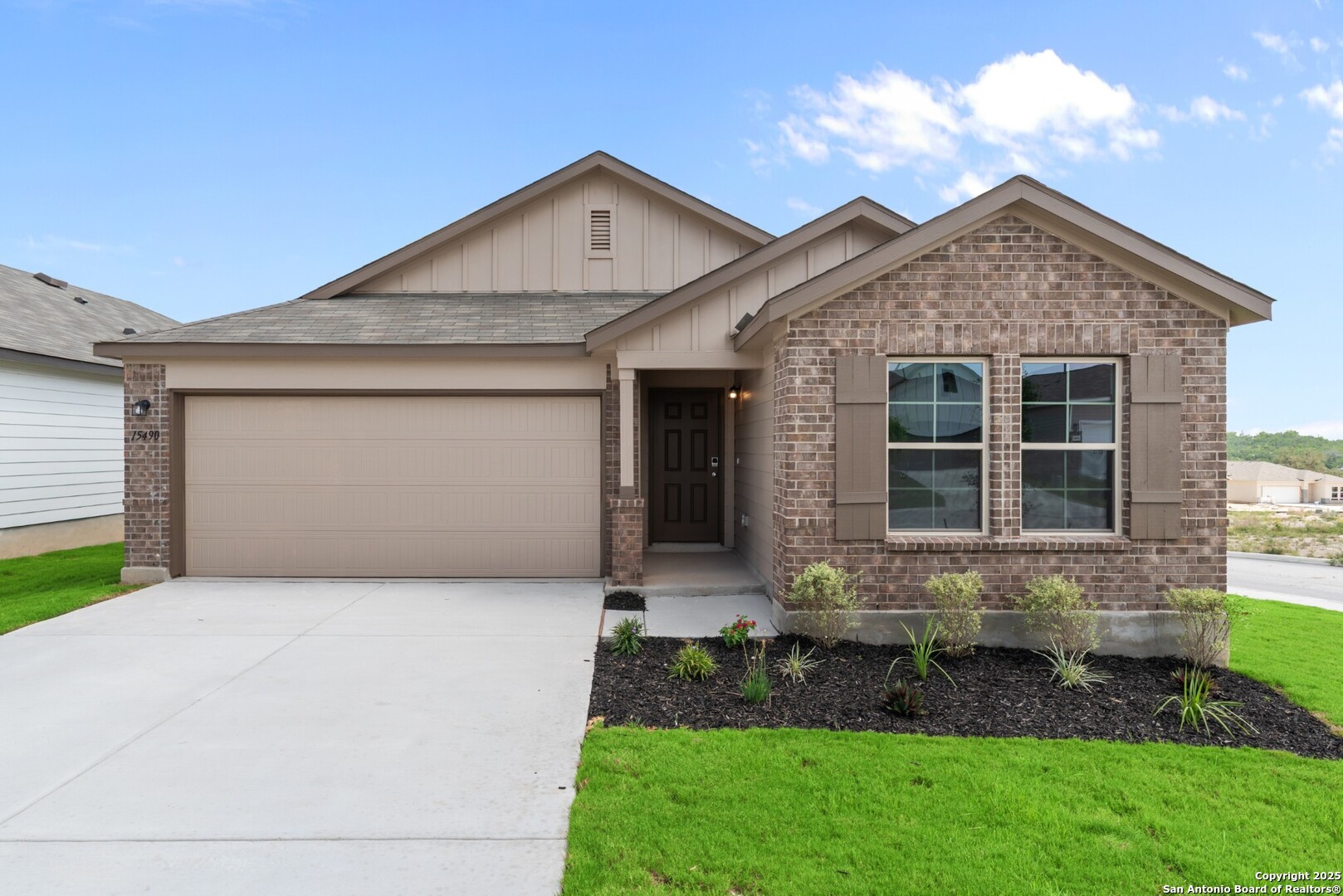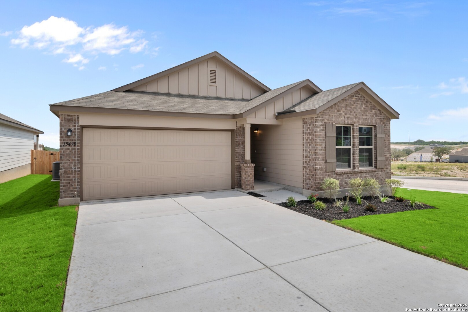 ***ESTIMATED COMPLETION DATE MAY/JUNE 2025*** SUBJECT TO CHANGE.Welcome to this charming 3-bedroom, 2-bathroom home located at 15490 Jake Crossing in the vibrant city of San Antonio, Texas. Situated in a new construction by M/I Homes, one of the nation's leading new construction home builders, this property offers a seamless blend of modern design and comfortable living. Step inside to discover a thoughtfully designed open floorplan that seamlessly connects the kitchen, living, and dining areas. The kitchen is a chef's dream, equipped with sleek countertops, modern appliances, and ample storage space for all your culinary needs. With 1,642 sqft of living space all on a single level, this home provides convenience and accessibility for all lifestyles. The bedrooms are spacious and filled with natural light, offering a peaceful retreat at the end of the day. The 2 full bathrooms feature modern fixtures and plenty of space for relaxation. Enjoy the beauty of the outdoors on the covered patio, perfect for morning coffee or evening gatherings with friends and family. Additionally, this property boasts 2 parking spaces to accommodate your vehicles and any guests that may visit. Located in San Antonio, TX, this home offers easy access to nearby amenities, schools, shopping centers, restaurants, and more. Whether you're looking to enjoy the bustling city life or prefer the tranquility of suburban living, this property caters to various lifestyle.