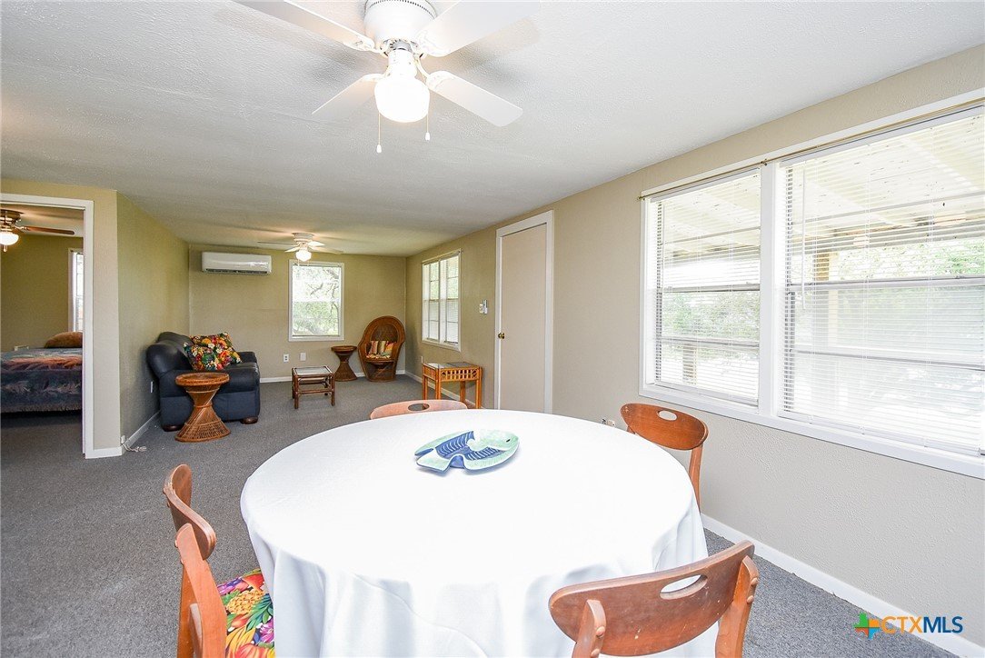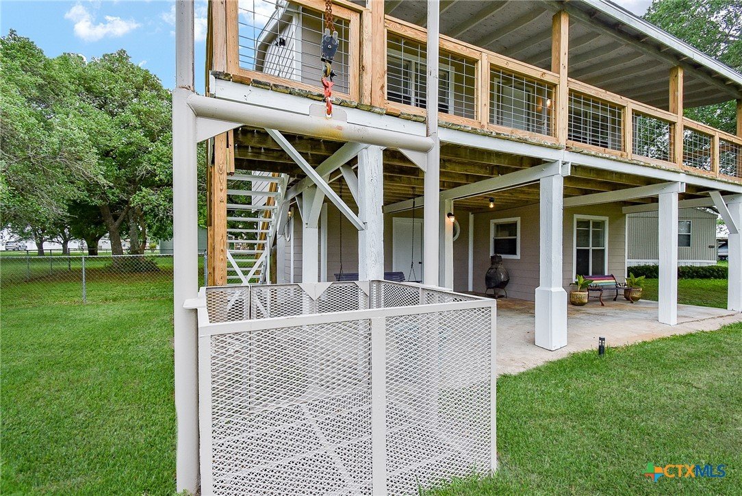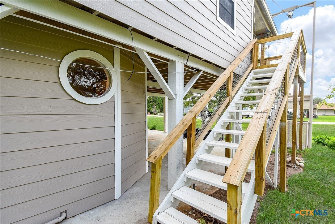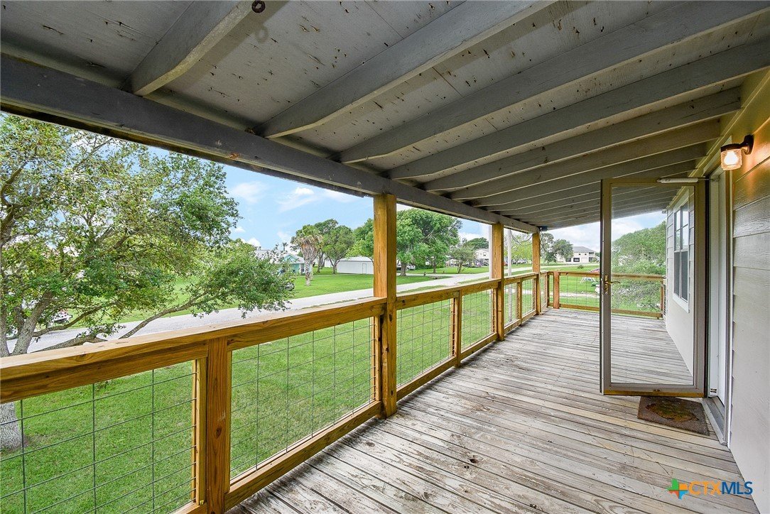Enjoy coastal living at 1551 Bayview Dr in the gated community of Cape Carancahua! Just one block from Carancahua Bay, this charming home offers bay views, mature oaks, a fenced yard, and covered outdoor living spaces. The exterior features durable Hardie plank siding, rebuilt patio and stair railings, and a renovated cargo lift. Inside, the spacious downstairs includes an open bedroom/living area, full bath, and laundry. Upstairs, a large living and dining area is perfect for entertaining. A new zoned split A/C system ensures year-round comfort. Community amenities include 2 pools, tennis, volleyball, boat ramp, piers, playground, and more!