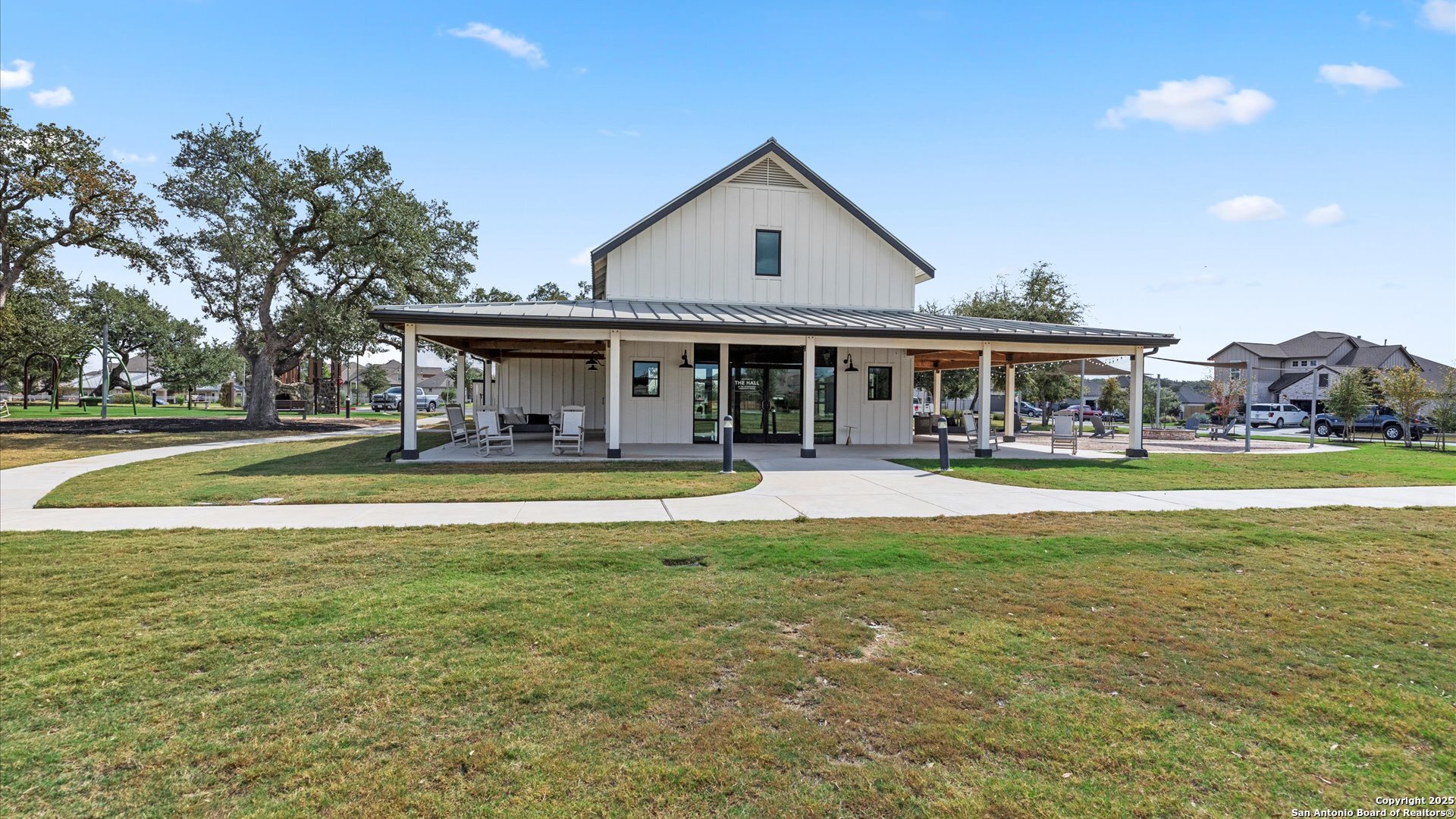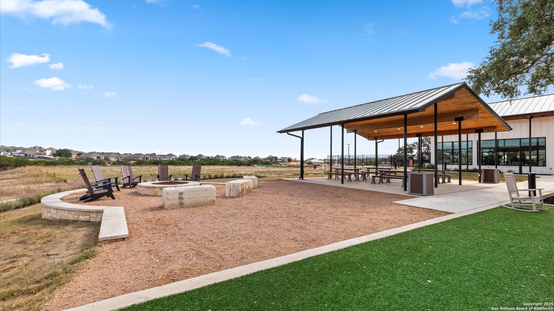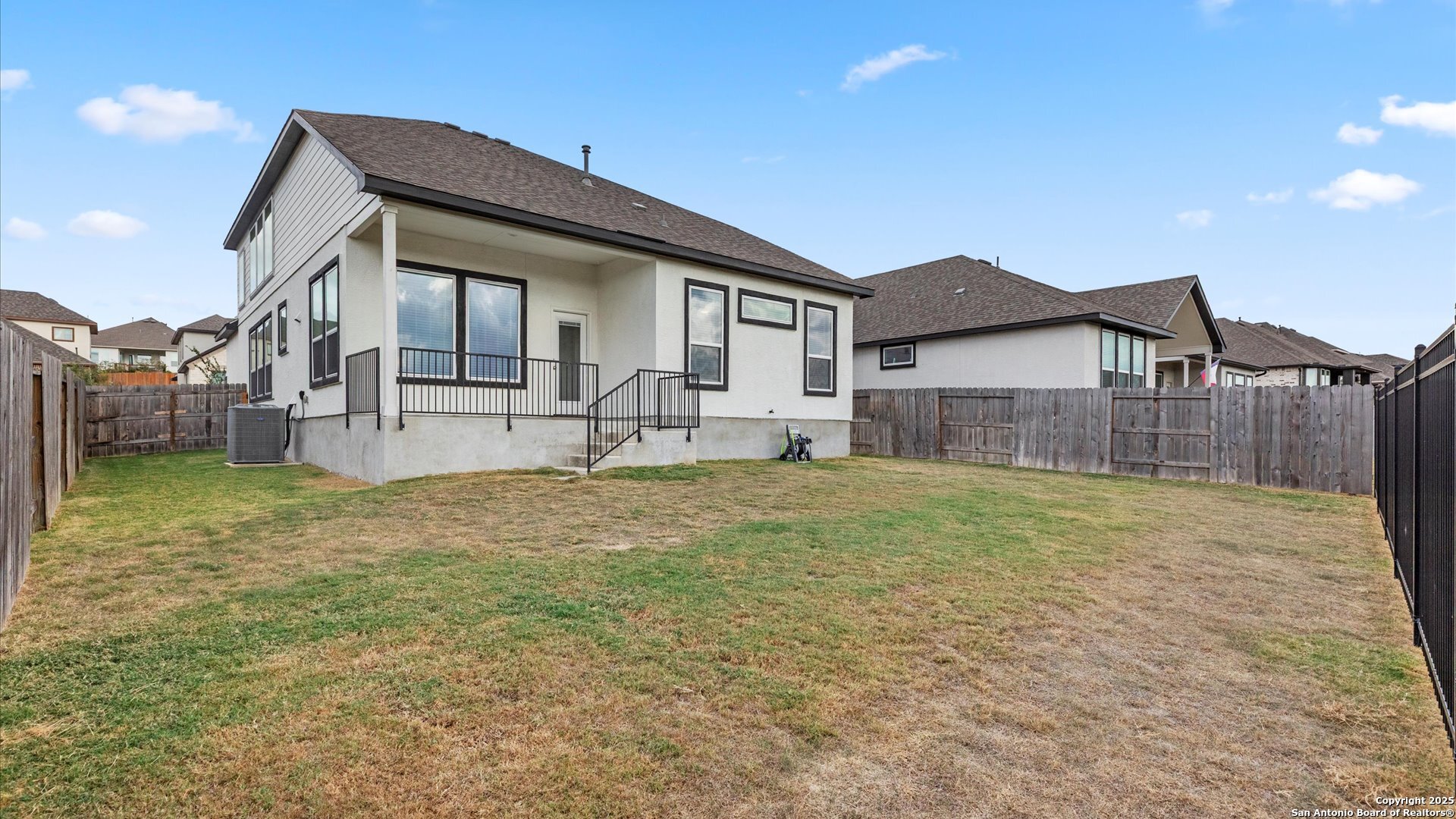 If Home Sweet Home is a combination between Hill Country Views and Modern Living-I've got the home for you! Come admire this stunning 4-bedroom, 3-bathroom home that perfectly blends comfort, style, and functionality. Designed with both family and guests in mind, this thoughtful floor plan features the primary suite and an additional bedroom on the main level - ideal for multigenerational living or a private guest retreat. Step inside to an impressive foyer with soaring high ceilings that flow into the open concept living area, anchored by a sleek electric fireplace and large windows that flood the home with natural light. The gourmet kitchen shines with modern cabinetry, built-in appliances, and elegant countertops - a dream space for both everyday meals and entertaining. Upstairs, you'll find a spacious loft/game room, offering the perfect flex space for movie nights, playtime, or a cozy second living area. Out back, enjoy no rear neighbors, a private backyard, and breathtaking hill country scenery - you can even spot the community pool and amenity center in the distance. The oversized 2.5-car garage (20x30) offers ample room for parking, storage, or a workshop. Located in the sought-after Meyer Ranch community, residents enjoy top-tier amenities including a clubhouse, splash pool, walking trails, firepit, and picnic areas - all surrounded by the beauty of the Texas Hill Country.