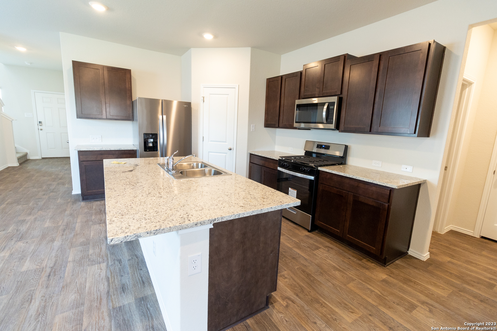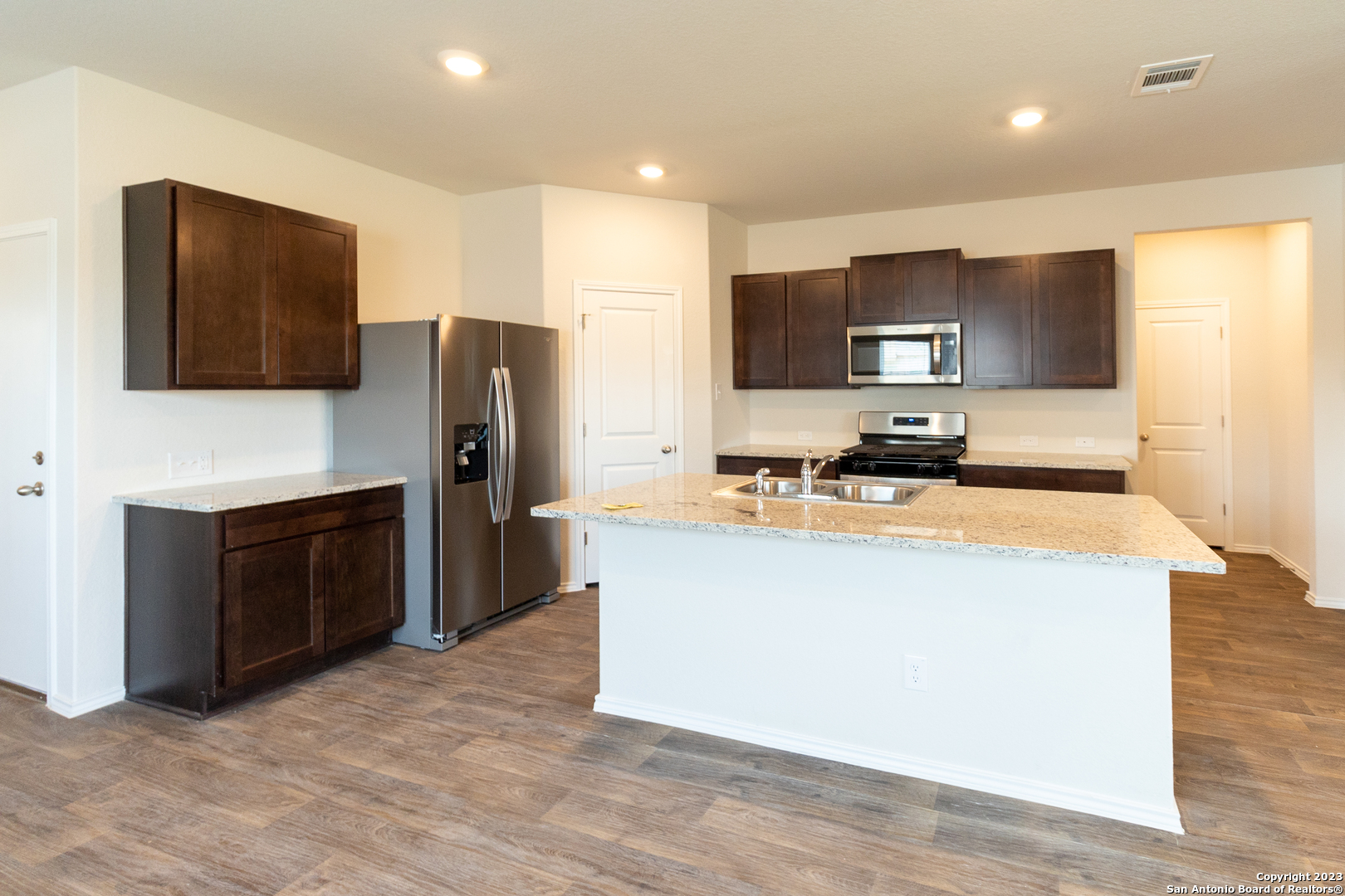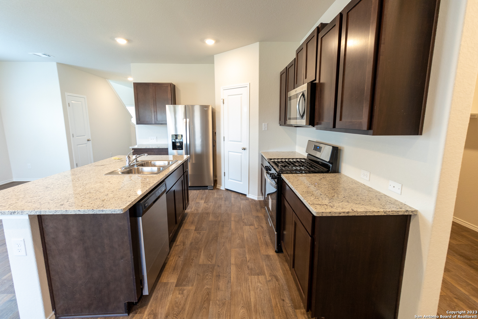 Like New Home, Tons of Space!!! The Madison plan is a two-story home featuring 5 bedrooms; one located downstairs, 3 baths, and 2-car garage. A long entryway leads to a gourmet kitchen including granite counter tops, stainless steel appliances, and open concept floorplan with the kitchen opening to the dining room and family room. Enjoy a grand kitchen island, spacious corner pantry and utility room located off the kitchen. A secondary bedroom and full bath are located off the family room, perfect for out-of-town guests. Plenty of storage can be found under the extra wide staircase. The second story features versatile loft, private main bedroom suite, three secluded secondary bedrooms, and third full bath. The private main bedroom is an oasis, featuring a cozy sitting area and attractive ensuite complete with grand walk-in shower, water closet, and a large walk-in closet. The rear covered patio is located off the family room and secondary bedroom. Additional features include sheet vinyl flooring in entry, living room, and all wet areas, granite bathroom counter tops, white cabinets (per plan) and full yard landscaping and irrigation. This home includes the HOME IS CONNECTED base package which includes the Amazon Dot, Front Doorbell, Front Door Deadbolt Lock, Home Hub, Light Switch, and Thermostat.