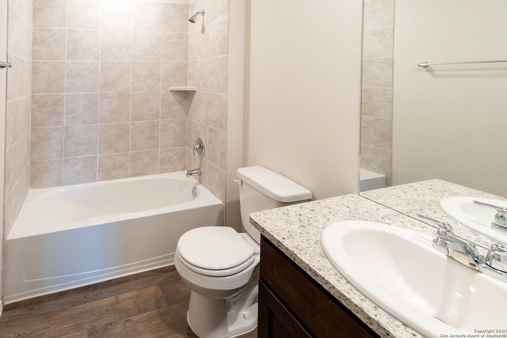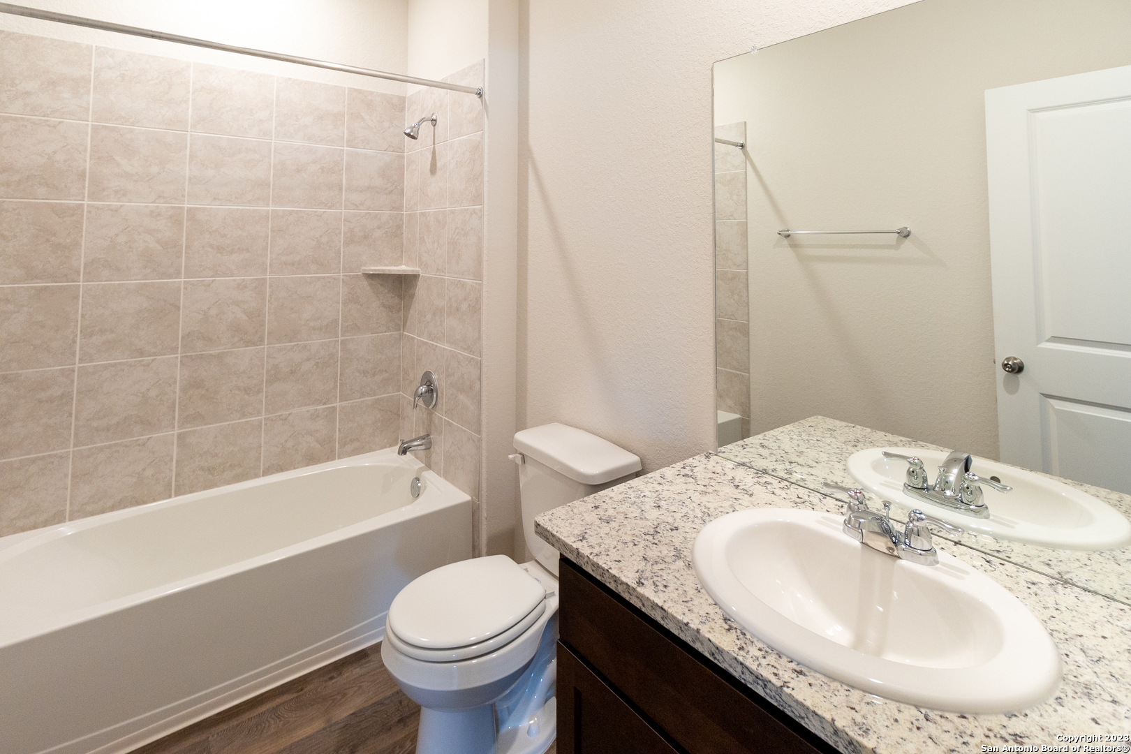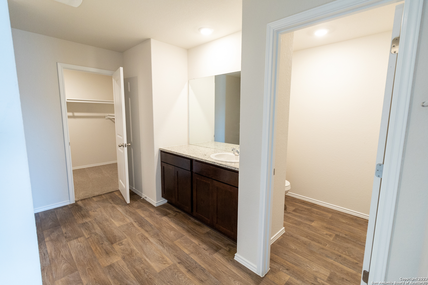 Like New Home, Tons of Space!!! The Madison plan is a two-story home featuring 5 bedrooms; one located downstairs, 3 baths, and 2-car garage. A long entryway leads to a gourmet kitchen including granite counter tops, stainless steel appliances, and open concept floorplan with the kitchen opening to the dining room and family room. Enjoy a grand kitchen island, spacious corner pantry and utility room located off the kitchen. A secondary bedroom and full bath are located off the family room, perfect for out-of-town guests. Plenty of storage can be found under the extra wide staircase. The second story features versatile loft, private main bedroom suite, three secluded secondary bedrooms, and third full bath. The private main bedroom is an oasis, featuring a cozy sitting area and attractive ensuite complete with grand walk-in shower, water closet, and a large walk-in closet. The rear covered patio is located off the family room and secondary bedroom. Additional features include sheet vinyl flooring in entry, living room, and all wet areas, granite bathroom counter tops, white cabinets (per plan) and full yard landscaping and irrigation. This home includes the HOME IS CONNECTED base package which includes the Amazon Dot, Front Doorbell, Front Door Deadbolt Lock, Home Hub, Light Switch, and Thermostat.