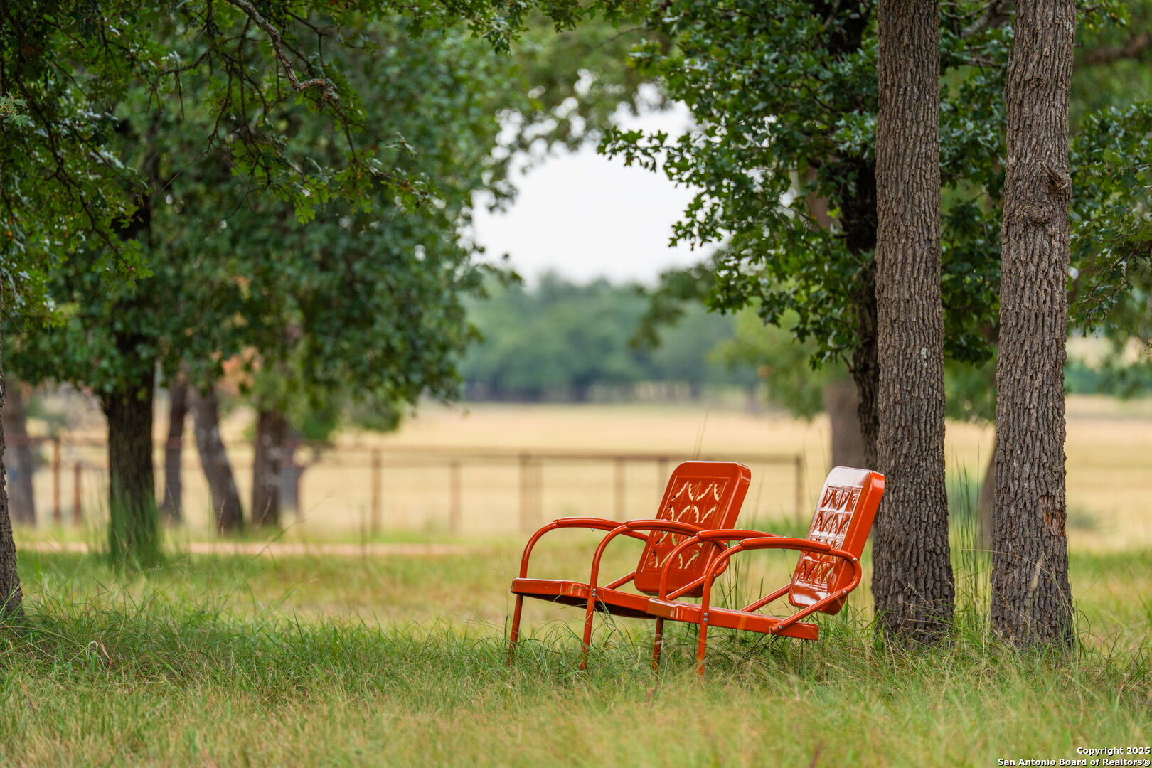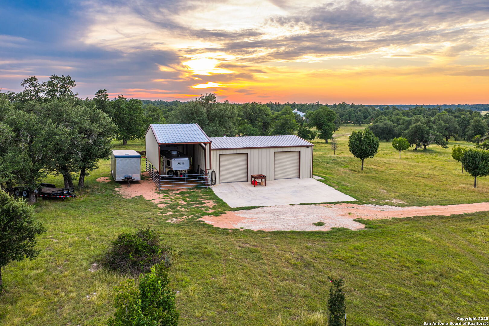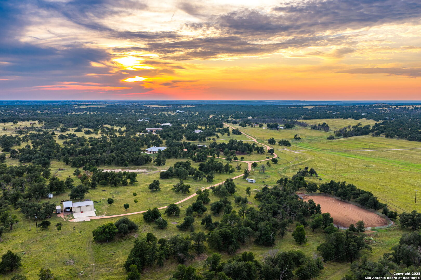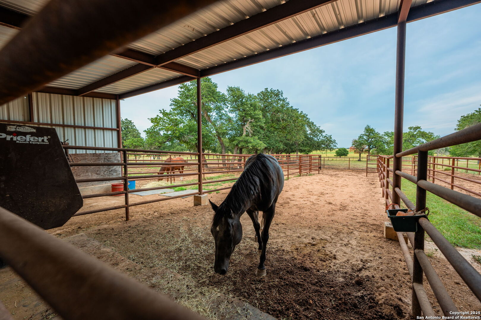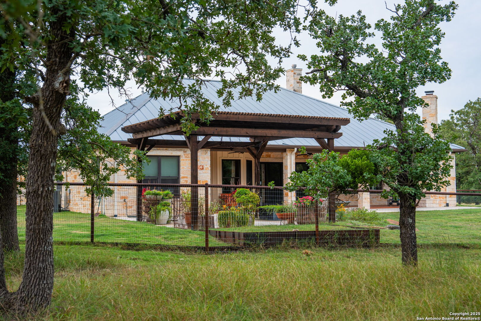 1554 Vintage Oaks Dr is a beautifully improved 30.68-acre horse property just 15 minutes northwest of Fredericksburg. Ideal for equestrian living, the property includes a well-equipped horse barn with four stalls, an outdoor roping arena with water lines for livestock, and rolling terrain with native grasses perfect for grazing. Additional agricultural improvements include a deer-proof garden, two water wells, a rainwater collection system at the barn, and gutter lines from the home routed to the pond for efficient water capture. The custom 3,178 SF home, built by Daniel Jenschke in 2016 and remodeled in 2021, offers 4 bedrooms, 3 bathrooms, a dedicated office (or optional 4th bedroom), a formal dining room, and a warm, open living space with a fireplace. The chef's kitchen features quartzite countertops, custom cabinetry, and hardwood floors. The primary suite includes its own gas fireplace, dual vanities, a soaking tub, walk-in shower, and heated floors. Jack & Jill guest rooms provide comfortable accommodations. Each guest room has its own sink and built in dresser. The optional 4th bedroom or dedicated office is just off the kitchen with a full guest bathroom next to it. Off the kitchen and living room there is an expansive back patio, with an outdoor fireplace which makes entertaining easy. The yard is fully fenced in to keep the deer and wildlife out with pipe fencing to that its sturdy while not taking away from the peaceful views overlooking the pond and grove of trees. Other improvements include an insulated workshop, RV storage, a private gun range, and a scenic mix of Post Oaks, Red Oaks, and Live Oaks with minimal cedar. This turnkey estate is ready for both luxury living and serious horse operations.