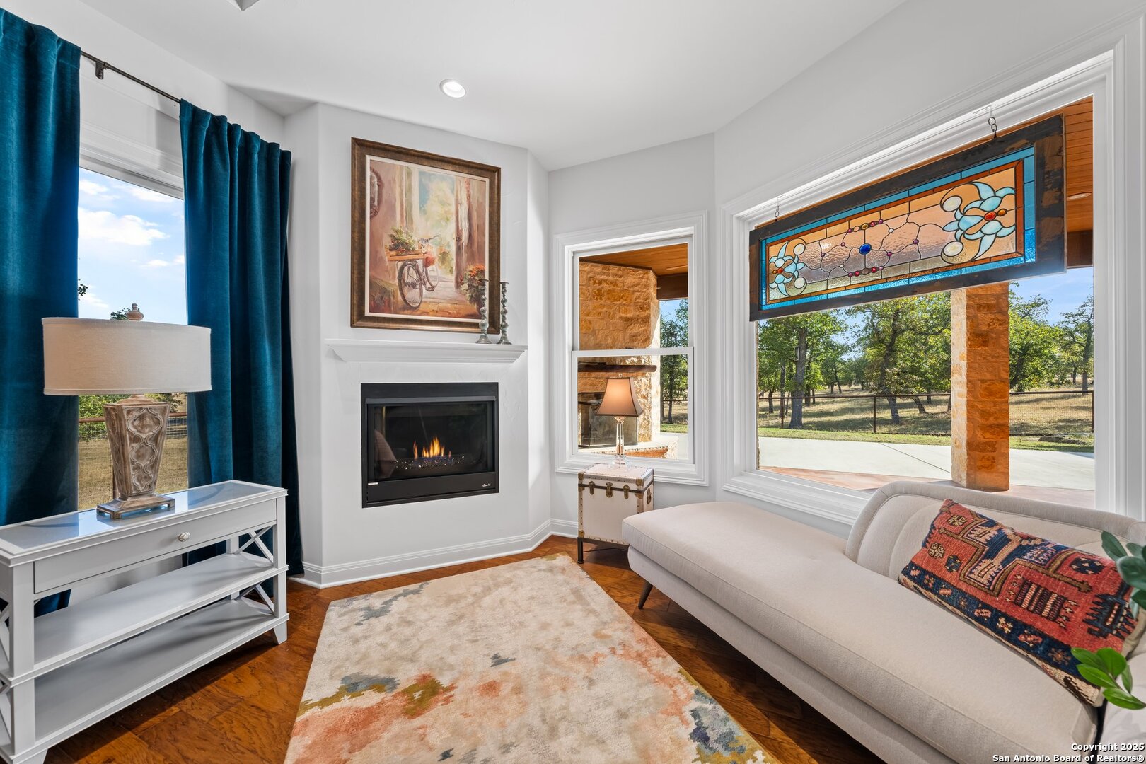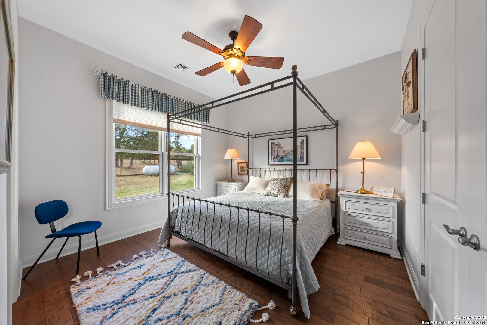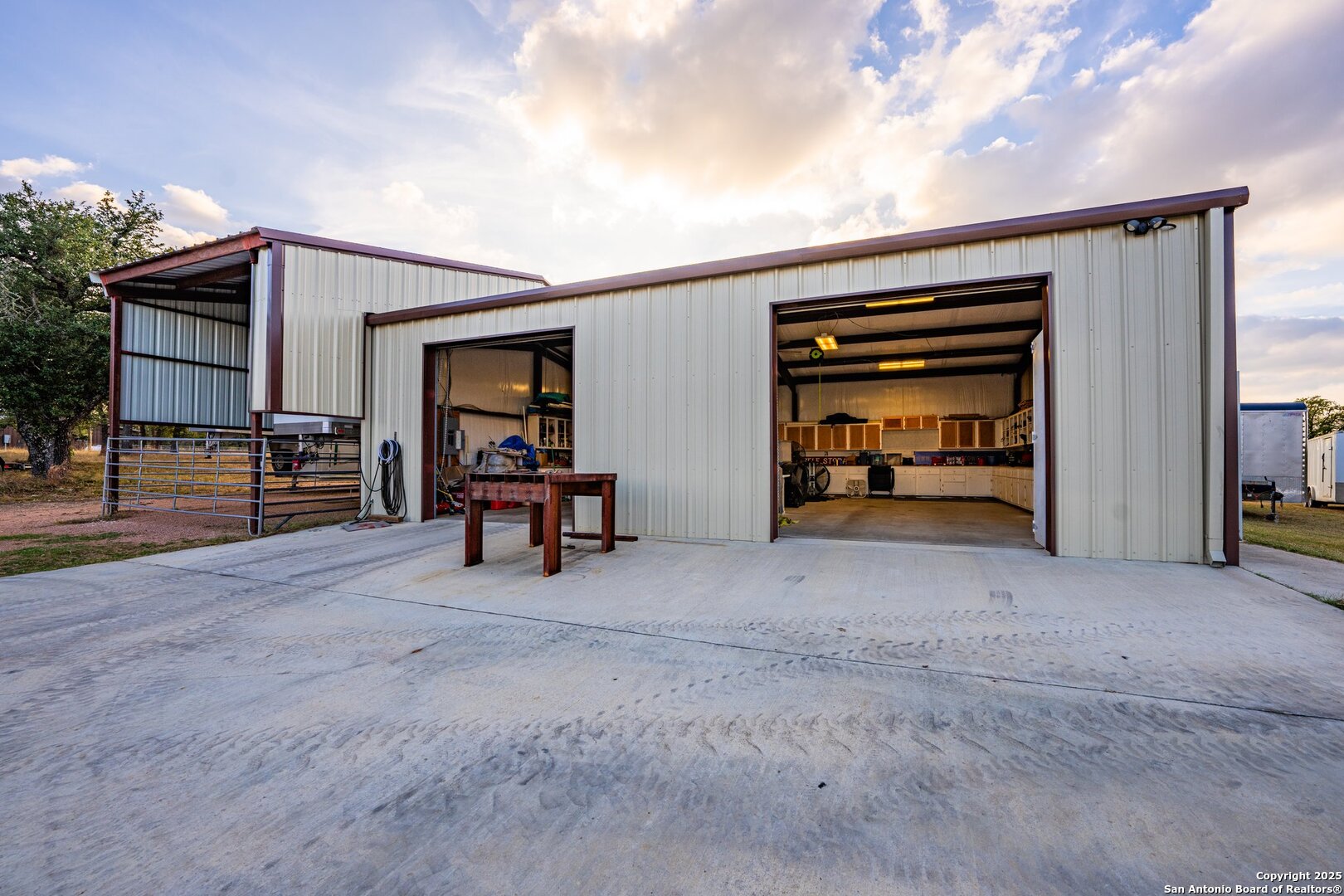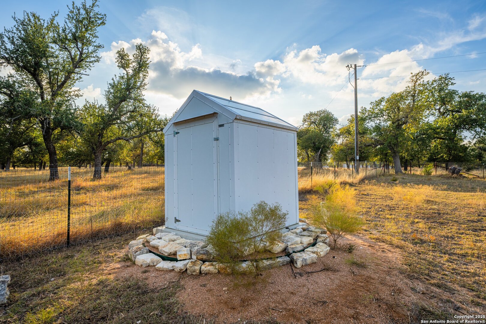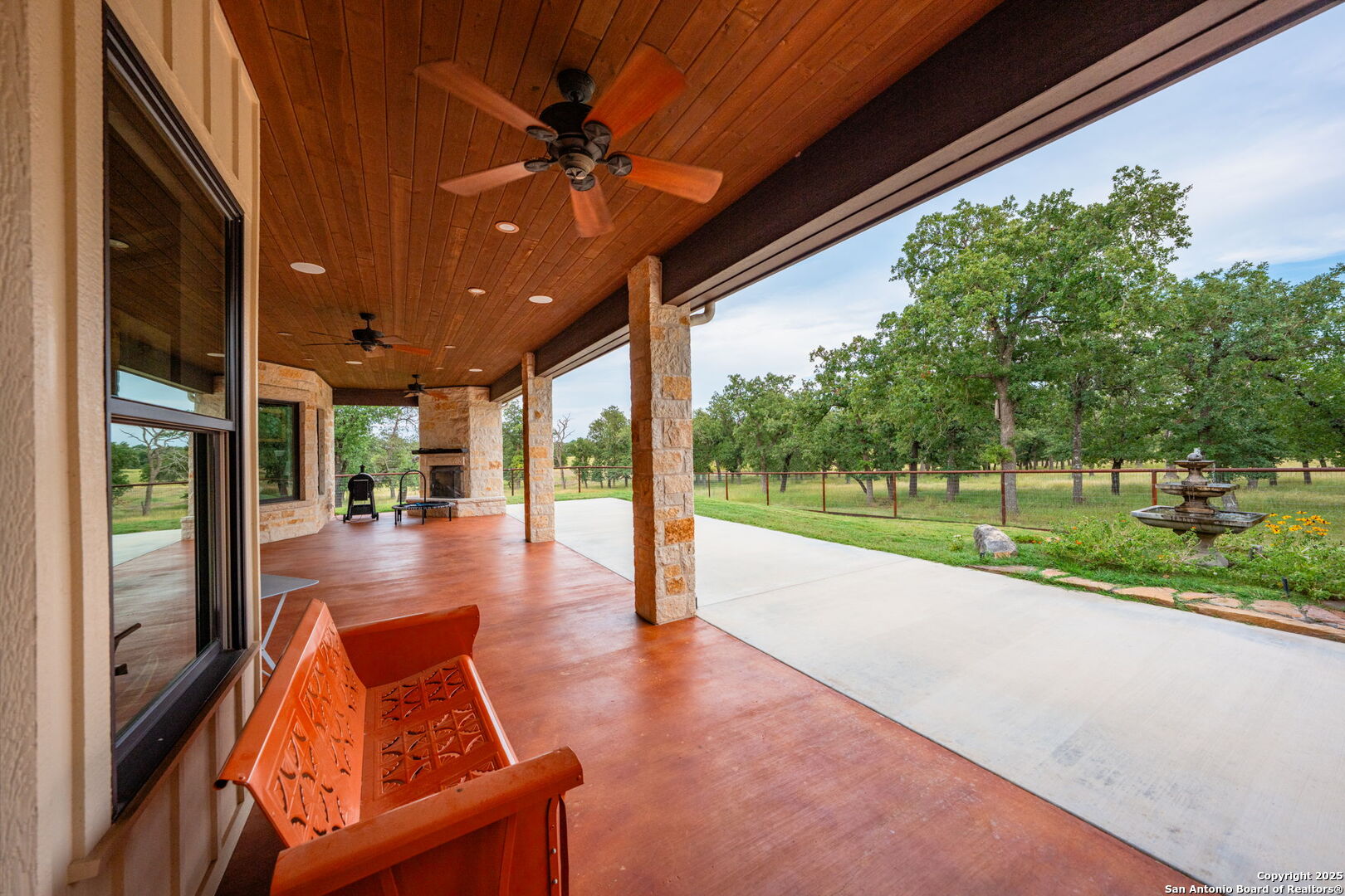 1554 Vintage Oaks Dr is a beautifully improved 30.68-acre horse property just 15 minutes northwest of Fredericksburg. Ideal for equestrian living, the property includes a well-equipped horse barn with four stalls, an outdoor roping arena with water lines for livestock, and rolling terrain with native grasses perfect for grazing. Additional agricultural improvements include a deer-proof garden, two water wells, a rainwater collection system at the barn, and gutter lines from the home routed to the pond for efficient water capture. The custom 3,178 SF home, built by Daniel Jenschke in 2016 and remodeled in 2021, offers 4 bedrooms, 3 bathrooms, a dedicated office (or optional 4th bedroom), a formal dining room, and a warm, open living space with a fireplace. The chef's kitchen features quartzite countertops, custom cabinetry, and hardwood floors. The primary suite includes its own gas fireplace, dual vanities, a soaking tub, walk-in shower, and heated floors. Jack & Jill guest rooms provide comfortable accommodations. Each guest room has its own sink and built in dresser. The optional 4th bedroom or dedicated office is just off the kitchen with a full guest bathroom next to it. Off the kitchen and living room there is an expansive back patio, with an outdoor fireplace which makes entertaining easy. The yard is fully fenced in to keep the deer and wildlife out with pipe fencing to that its sturdy while not taking away from the peaceful views overlooking the pond and grove of trees. Other improvements include an insulated workshop, RV storage, a private gun range, and a scenic mix of Post Oaks, Red Oaks, and Live Oaks with minimal cedar. This turnkey estate is ready for both luxury living and serious horse operations.