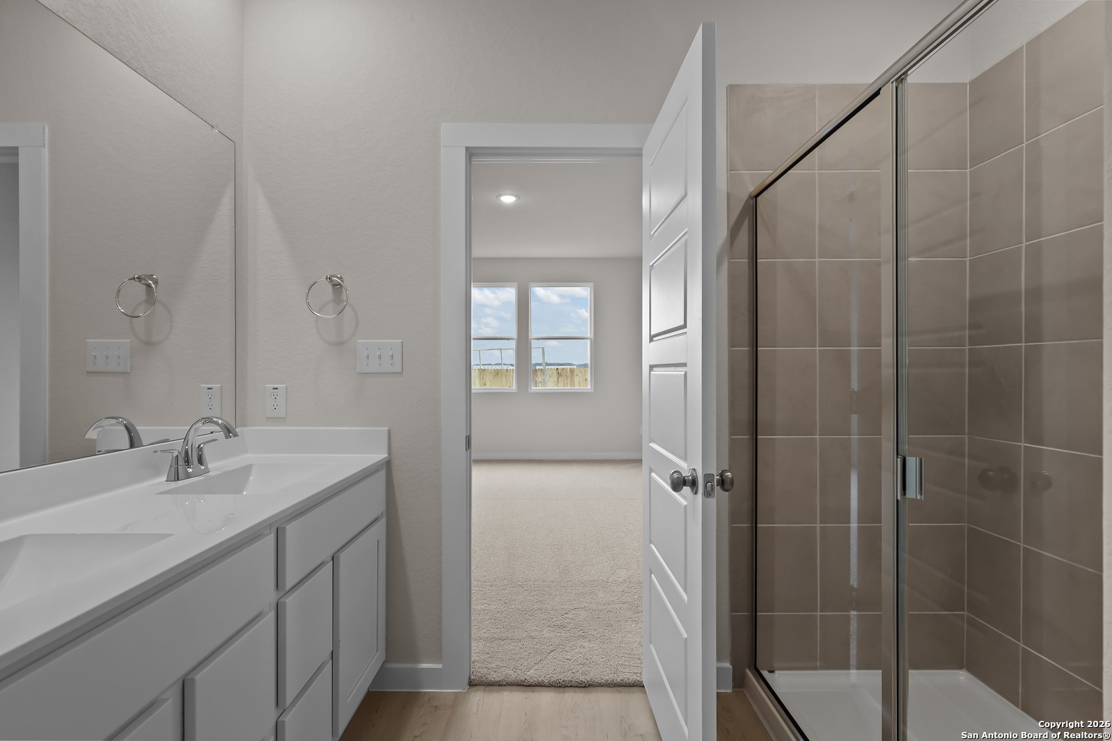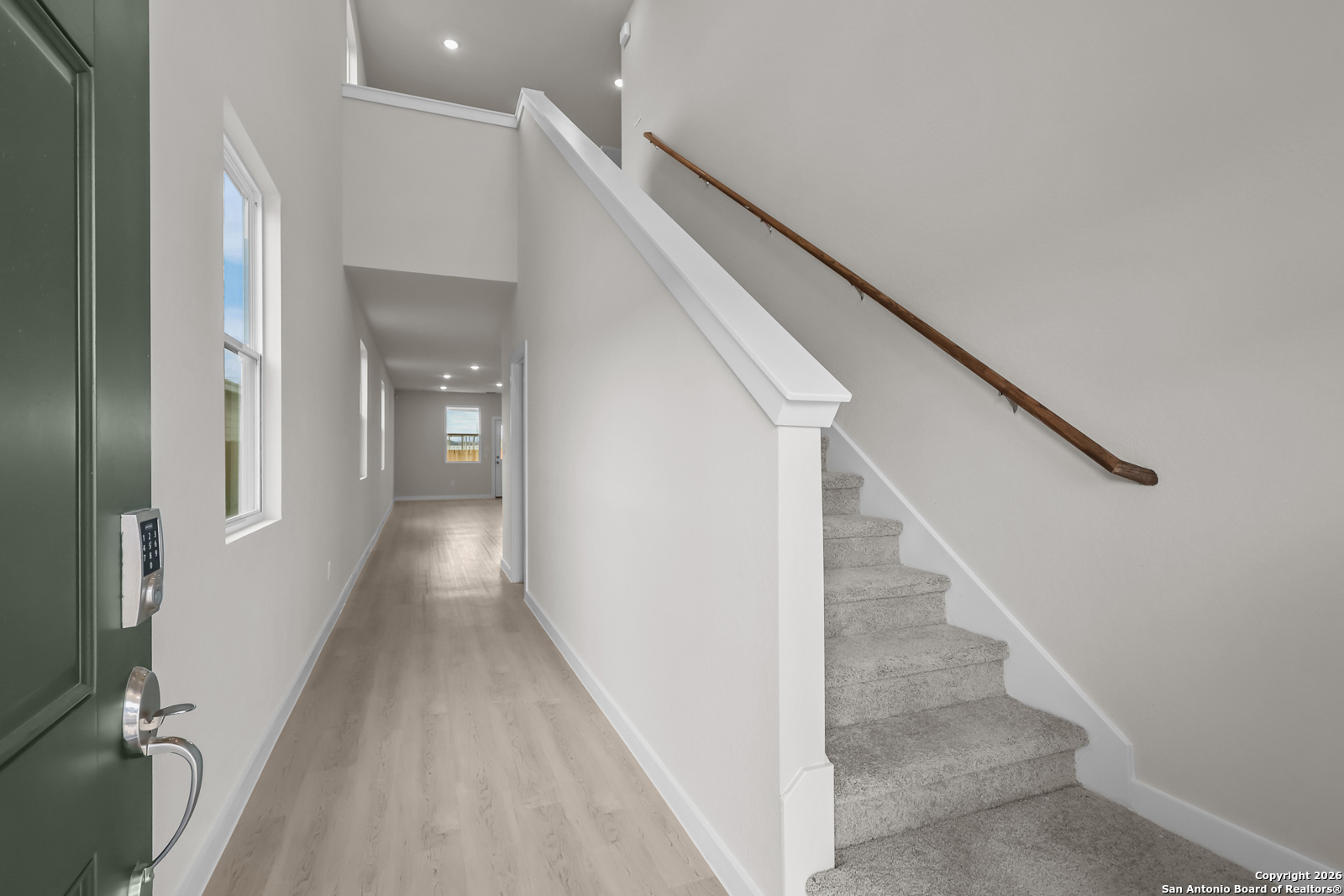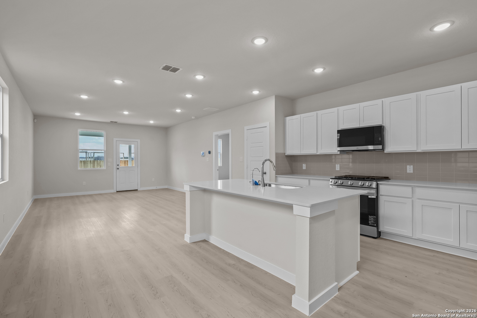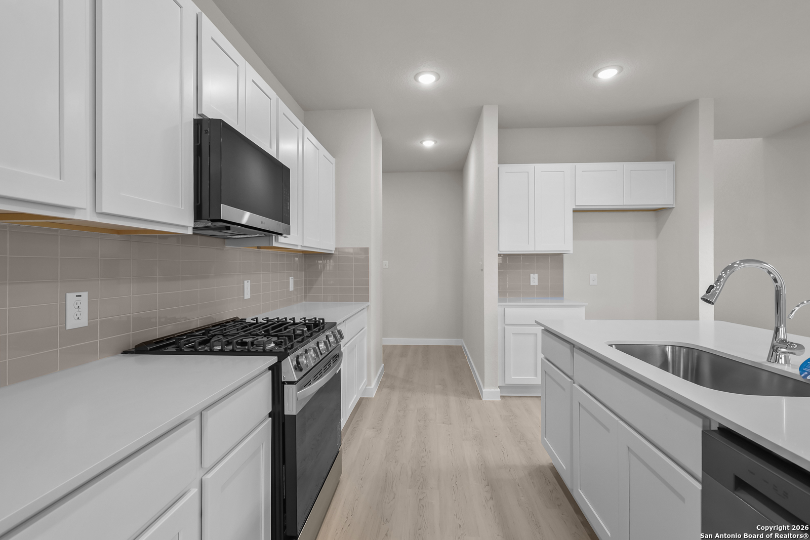 Step into modern design with the Riley floor plan! At the heart of the home is a spacious open-concept great room, which flows into a dining area and an impressive kitchen with a center island, a walk-in pantry, and access to a convenient mud room. The primary suite is also located on the main level, boasting a walk-in closet and a primary bath with dual vanities and a walk-in shower. There are three secondary bedrooms upstairs, each with a walk-in closet. A full bath, storage space, and a large loft round out the Riley. Additional home highlights and upgrades: 36"" white kitchen cabinets, quartz countertops and backsplash Luxury wood-look vinyl plank flooring in common areas Stainless-steel appliance package with gas range oven Recessed lighting throughout home Cultured marble countertops and modern rectangular sinks in bathrooms 5 bedrooms Landscape package with full sprinkler system Garage door opener with two remotes Covered patio Exceptional included features, such as our Century Home Connect smart home package and more!