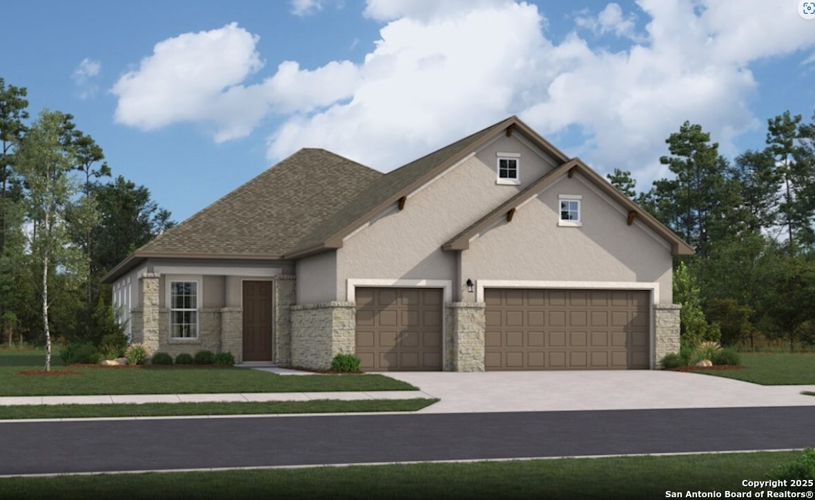 Welcome to the Live Oak plan by Beazer Homes, where modern design meets functional living! This stunning single-story home offers an open and airy floor plan, perfect for families and entertaining.Step into a spacious great room filled with natural light, seamlessly connected to the gourmet kitchen featuring sleek countertops, stainless steel appliances, a large island, and a walk-in pantry. The private owner's suite is a true retreat, complete with a spa-like ensuite bath and a generous walk-in closet. Additional bedrooms provide plenty of space for family, guests, and a home office. Enjoy outdoor living with a covered patio, perfect for relaxing evenings. Greenbelt homesite. Built with energy-efficient features, this home offers comfort, style, and savings.Located in a desirable community with easy access to shopping, dining, and top-rated schools, this Live Oak plan is a must-see! Schedule your showing today! Pictures for illustrative purposes only.