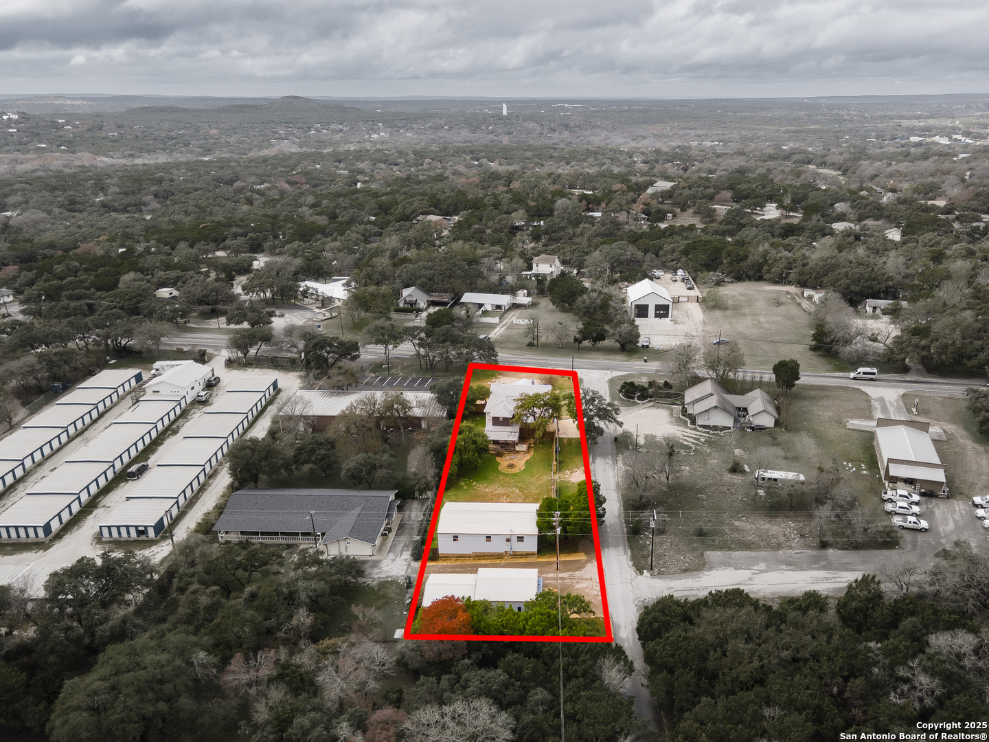 Unlimited opportunities with this one located very close to downtown Wimberly on a heavily traveled road for great exposure for any business you could ever want to do. Main home once used builders' office for several years, currently being used as an Airbnb with new noise resistant windows installed a couple of years ago. Second building has a small office in a second story apartment one bedroom one bath. Two car garage with laundry for the Airbnb so no need to use your personal laundry in the apartment. Another building for storage or for working on cars woodworking shop, plumbing shop, and pretty much anything you need and includes a room for hunting and fishing gear. Storage units can also be rented for additional income. There's also an attached she/he shack and lots more. Airbnb brings in about $1,000 a month but it's not been worked very hard. Other areas could be leased. This is very close to downtown Wimberly and definitely has the potential for business of any kind. Run your accounting or real estate company out of this office or ait would make a great craft shop. And many more uses. Very close to downtown Wimberly. All you need is your imagination to all the possible uses of this property. Live in the front home that has been completely updated or live in the apartment and continue to use front as Airbnb. Or make the front a real estate office, law office, CPA, arts and craft sales and live in the apartment. There are so many options on this property. Metal roof on all the buildings, fire pit, outdoor cooking area and so much more to see on this one. The only way to truly appreciate it is to tour the property!