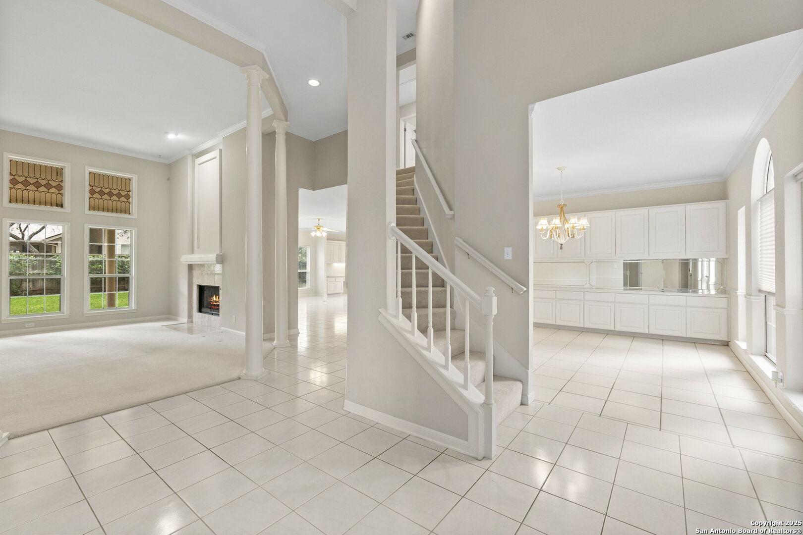 Spectacular find in coveted Deerfield. This is the beautiful custom home you've been waiting for. Buy it below market value and transform it into your style. The welcoming foyer invites you into a spacious floor plan with great flow for entertaining and everyday living. It features an open-concept family room, kitchen, and breakfast area with built-ins, as well as a second living area with a dual fireplace and a floor-to-ceiling view of the beautiful backyard. Abundant storage options throughout. Lots of natural light. 4 bedrooms, 3.5 baths, a dedicated office with double-door privacy, separate dining with serving credenza, and custom cabinetry. Island kitchen, double ovens. Workstation. Mini mudroom. Cocktail bar. Primary bedroom downstairs with built-ins, an ensuite bath, double sinks, soaking tub, and a large walk-in closet. Secondary bedrooms upstairs - one with an adjoining bath and the other sharing a Jack-and-Jill bath. Living and entertaining spaces extend outside to the covered patio. Oversized two-car garage with an extra storage area. Be sure to visit the Deerfield Recreation Center - pool, tennis, pickle ball, and basketball court, and kids playground park.